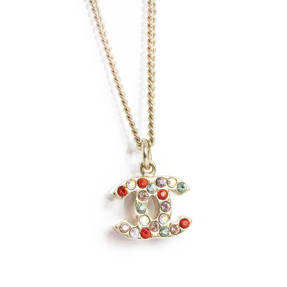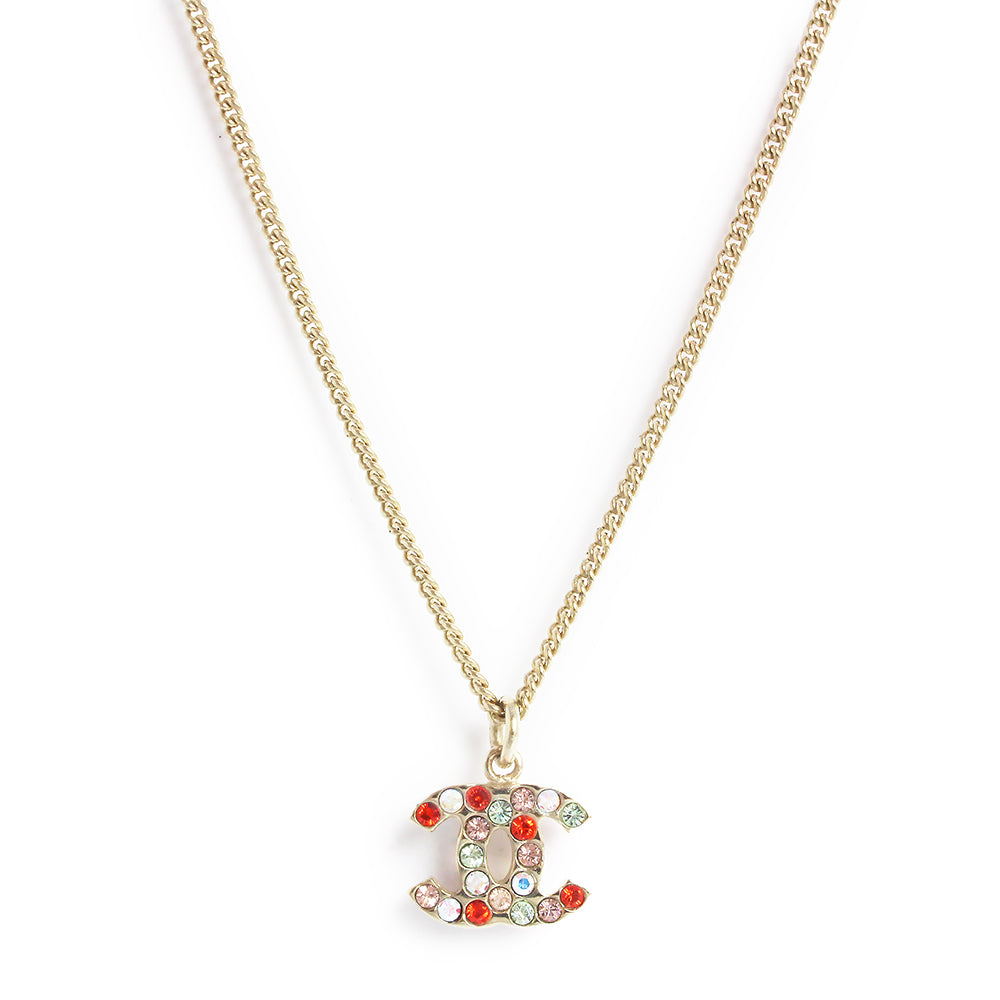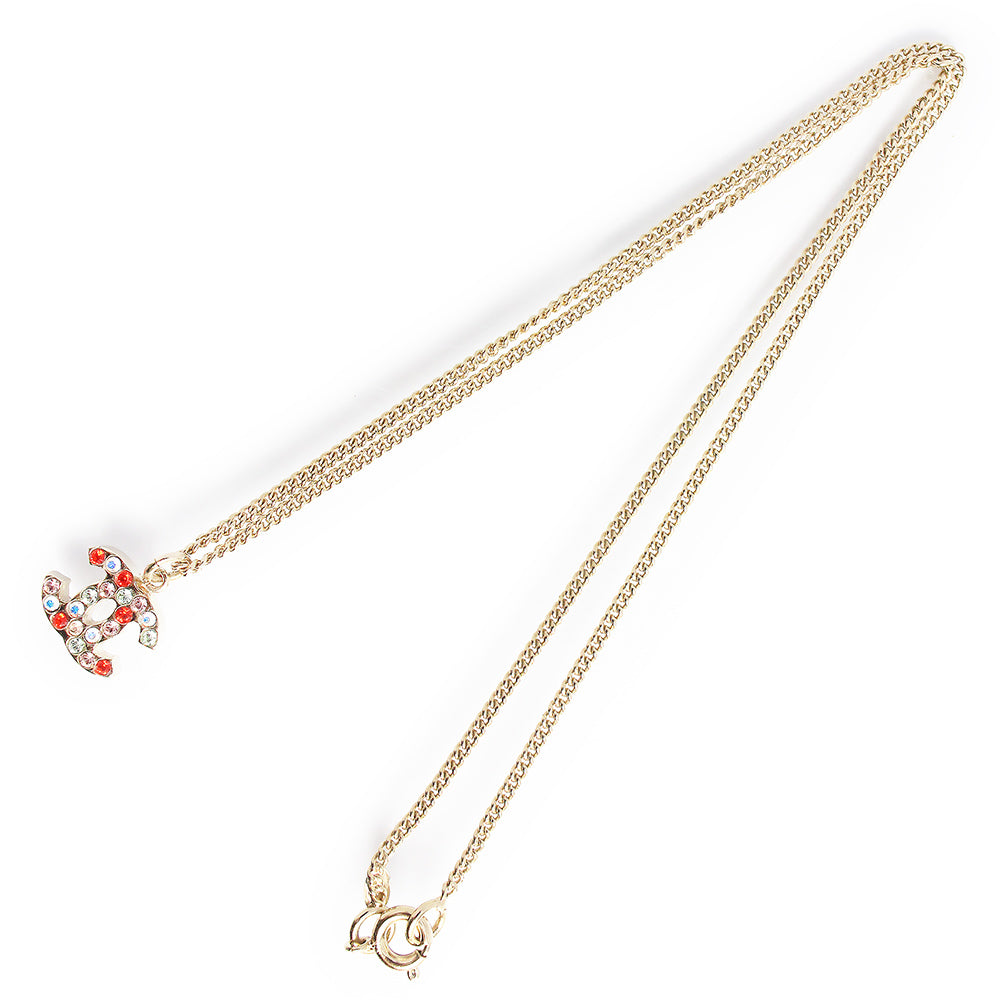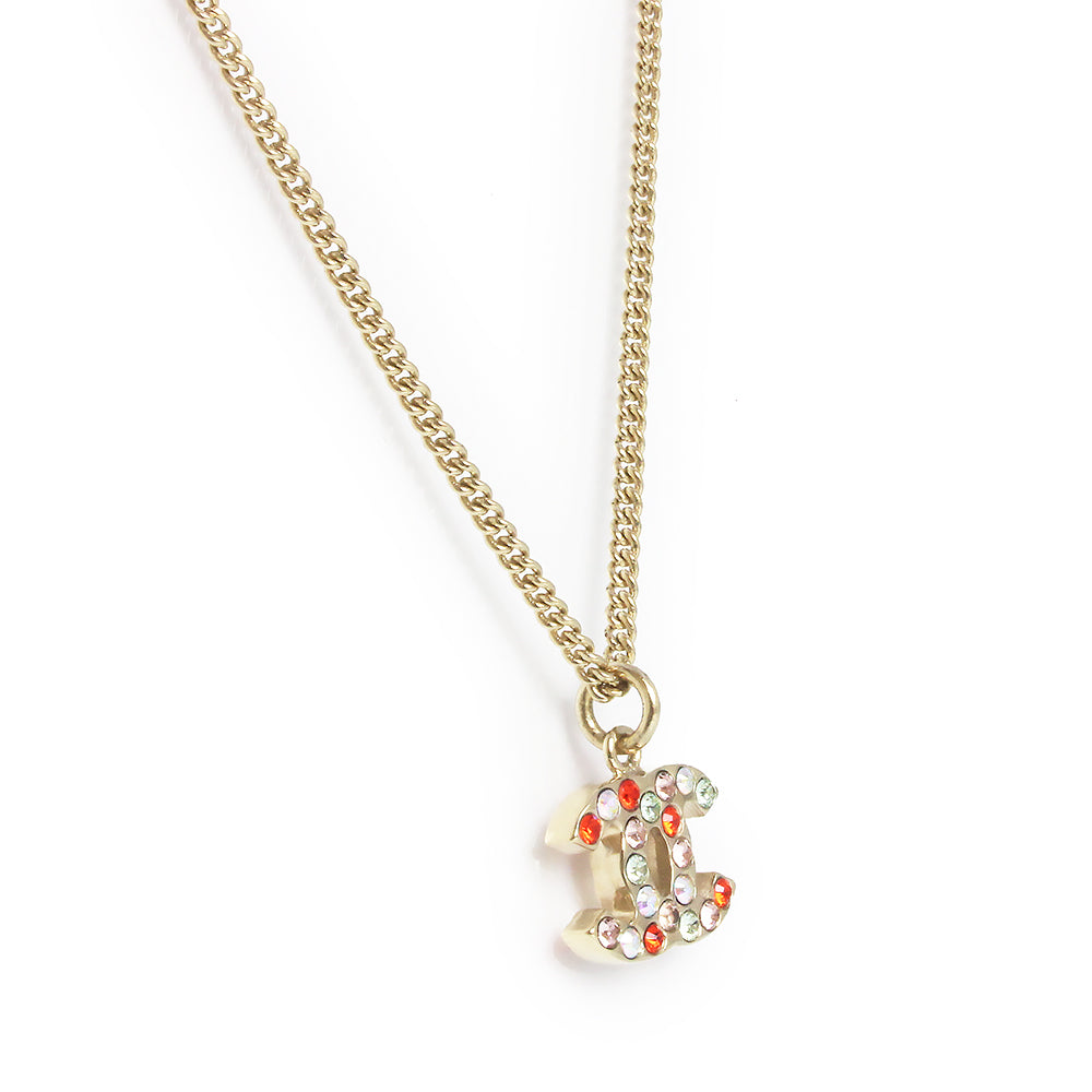 【未使用 展示品】シャネル CHANEL ココマーク ラインストーン ペンダント ネックレス マルチカラー ゴールド