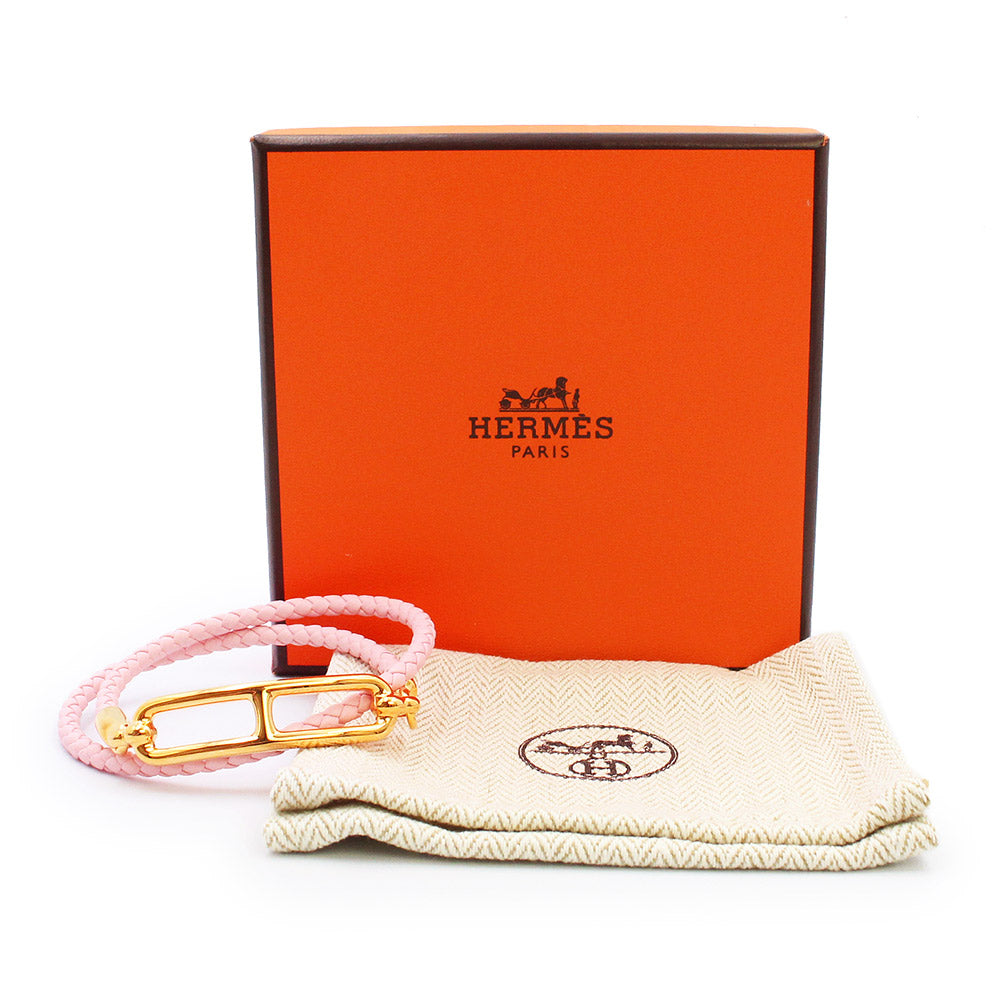 【新品・未使用品】エルメス HERMES ルリ ドゥブルトゥール 2連 ブレスレット ヴォースイフト レザー ローズサクラ ピンク ゴールド金具 箱付