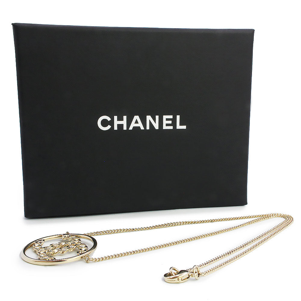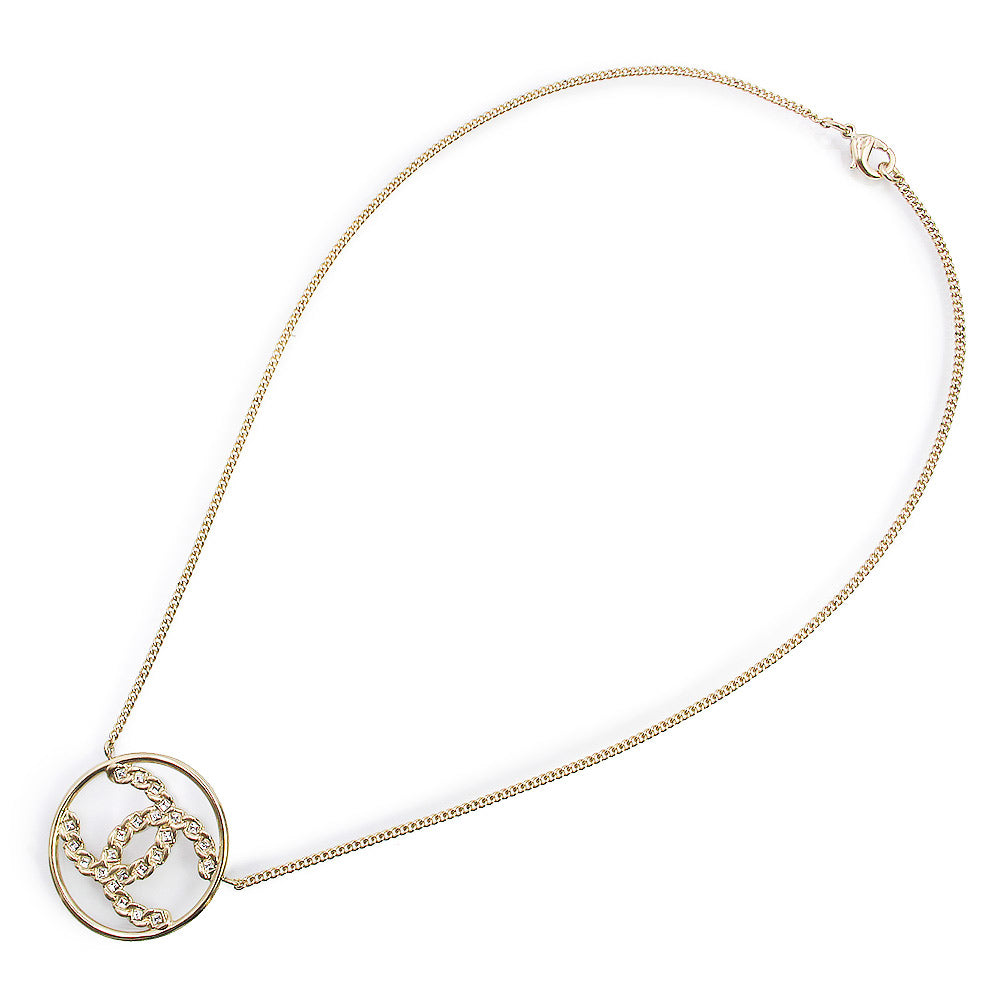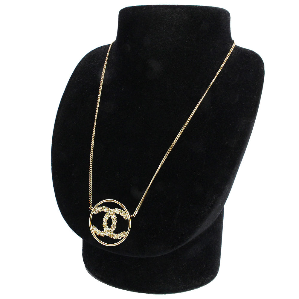 【新品・未使用品】シャネル CHANEL ココマーク ラインストーン ラウンド ペンダント ネックレス ゴールド AB1342 箱付