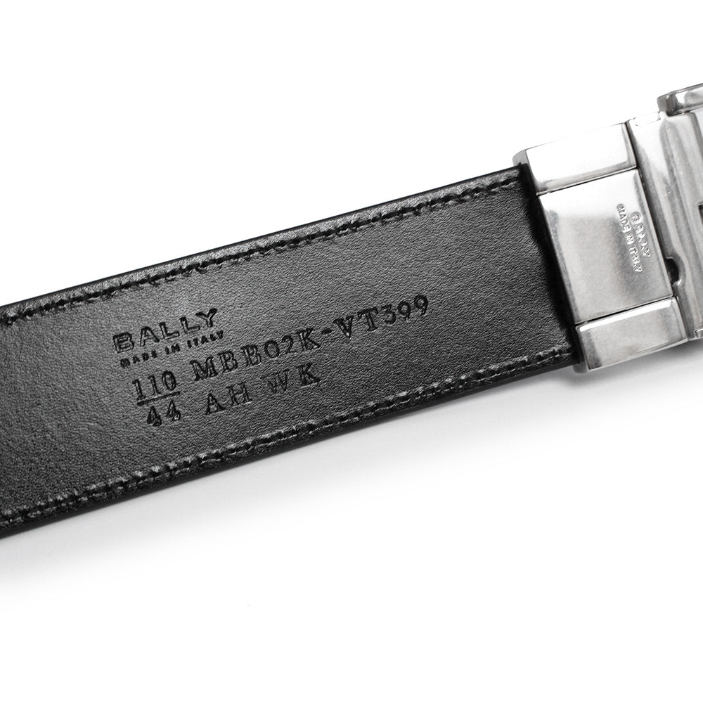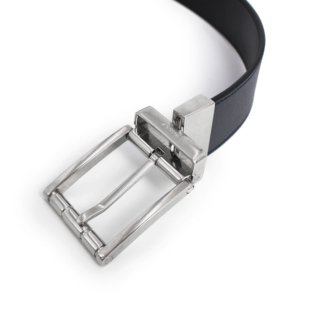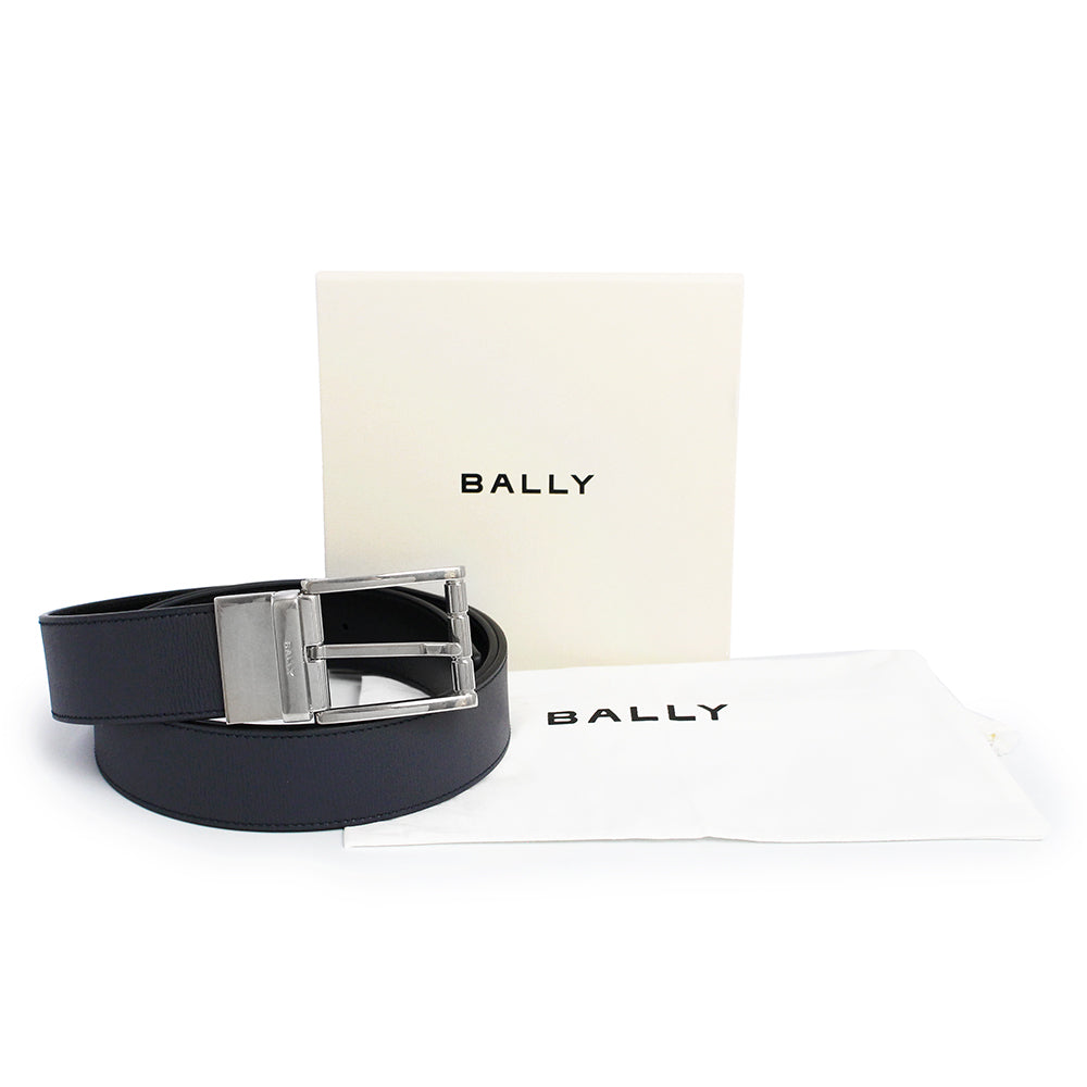 【新品・未使用品】バリー BALLY アストリー ASTORY 35MM #110 リバーシブル ベルト カーフスキン レザー ミッドナイト ネイビー ブラック シルバー金具 6304875 箱付