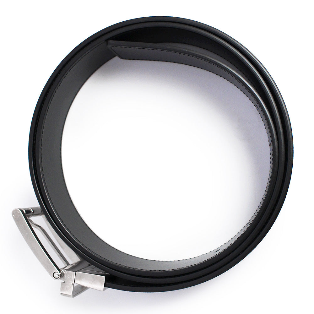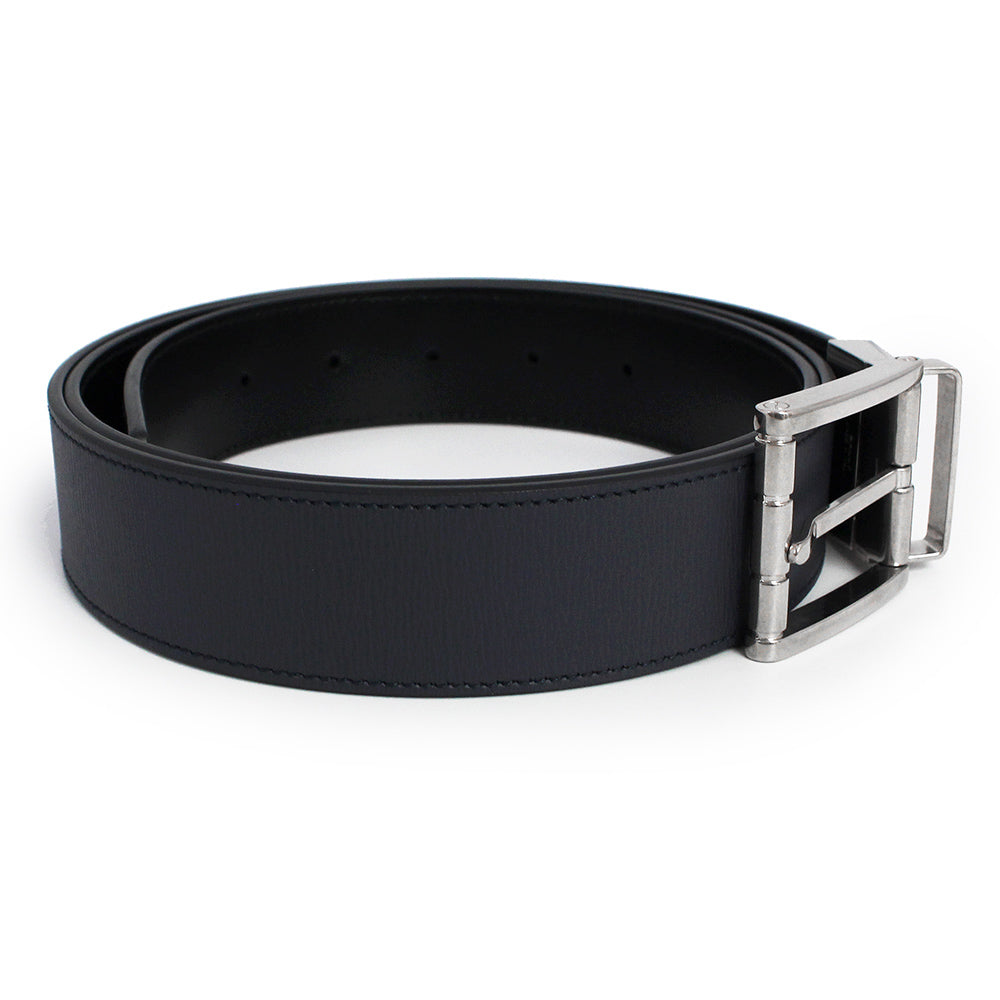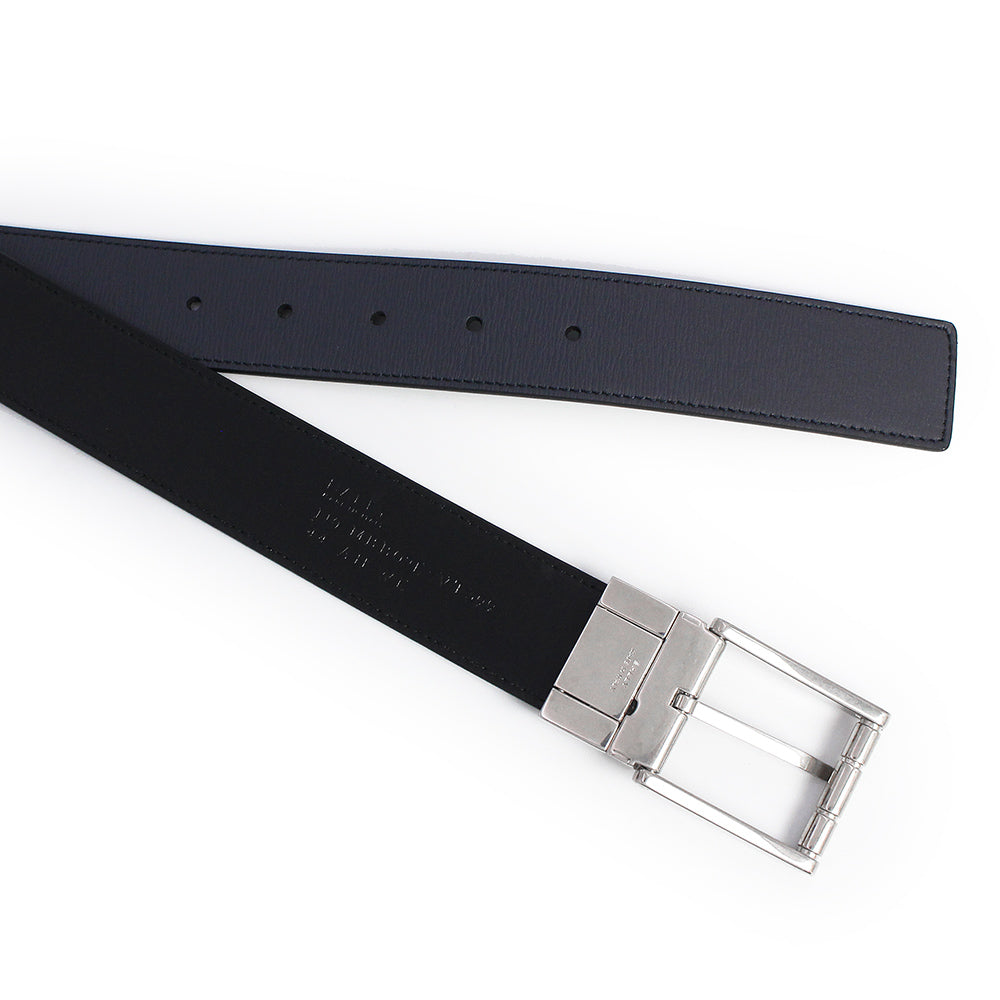 ブラックとネイビーブルーの上質なレザーを使用した、Astory 35mmリバーシブルベルト。長さ調節可。光沢のあるメタルのバックルが、クリーンなラインを描きます。さまざまなコーディネートに合わせやすいデザインです。