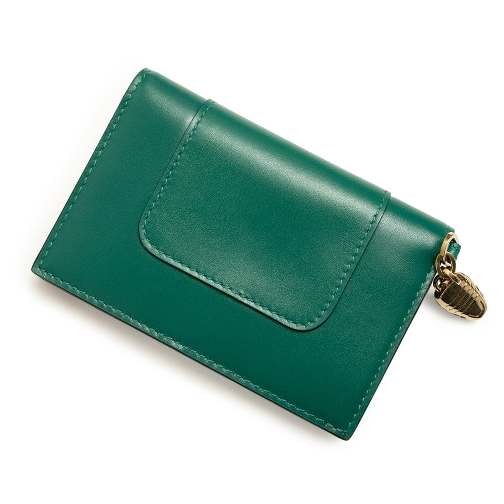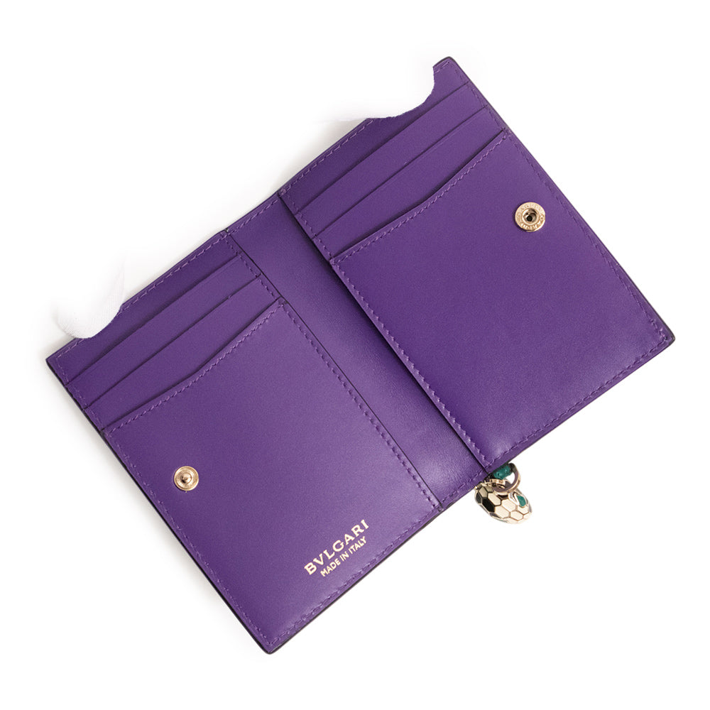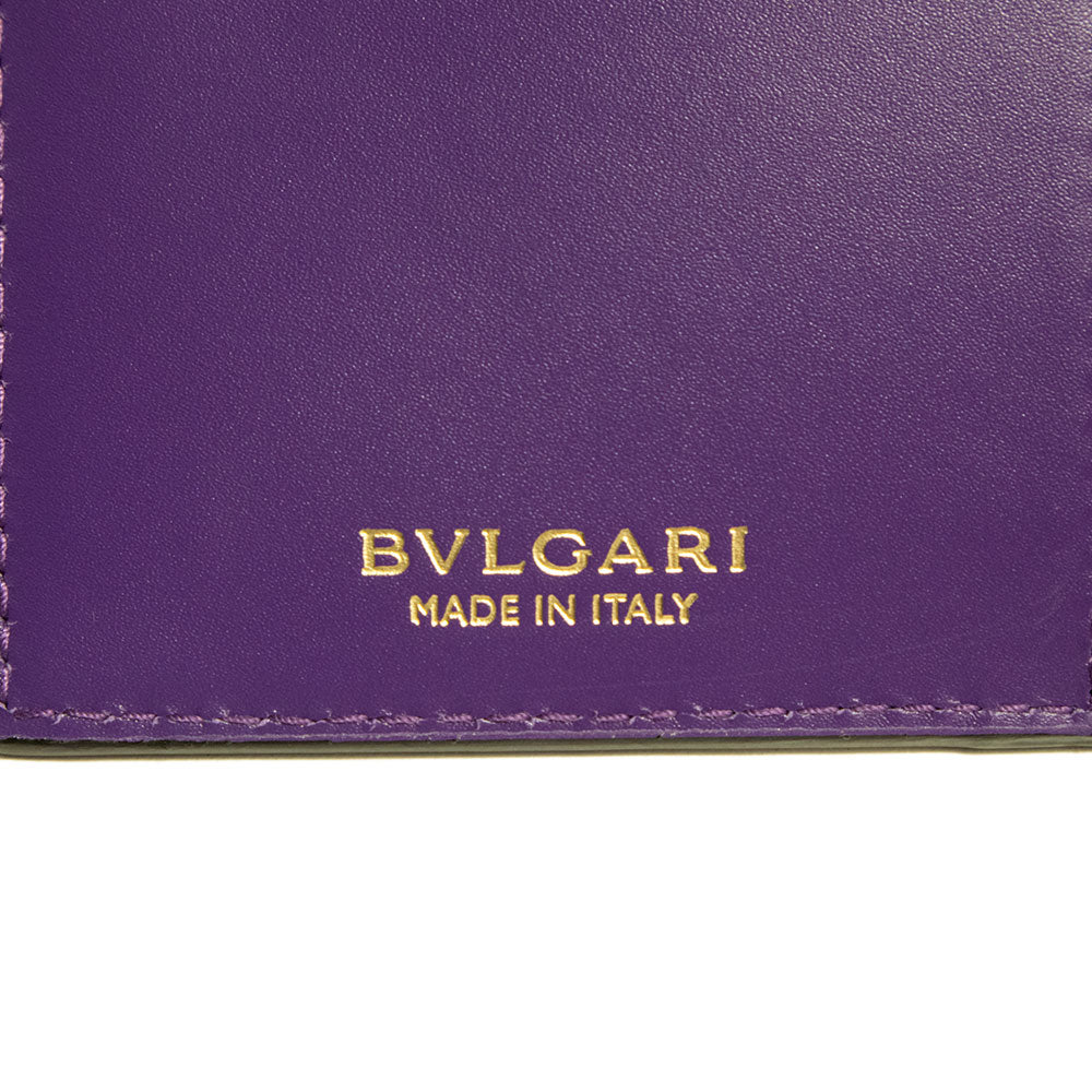 【未使用 展示品】ブルガリ BVLGARI セルペンティ カードホルダー カードケース 名刺入れ 定期入れ パスケース カーフスキン レザー バイカラー グリーン パープル ゴールド金具 280415