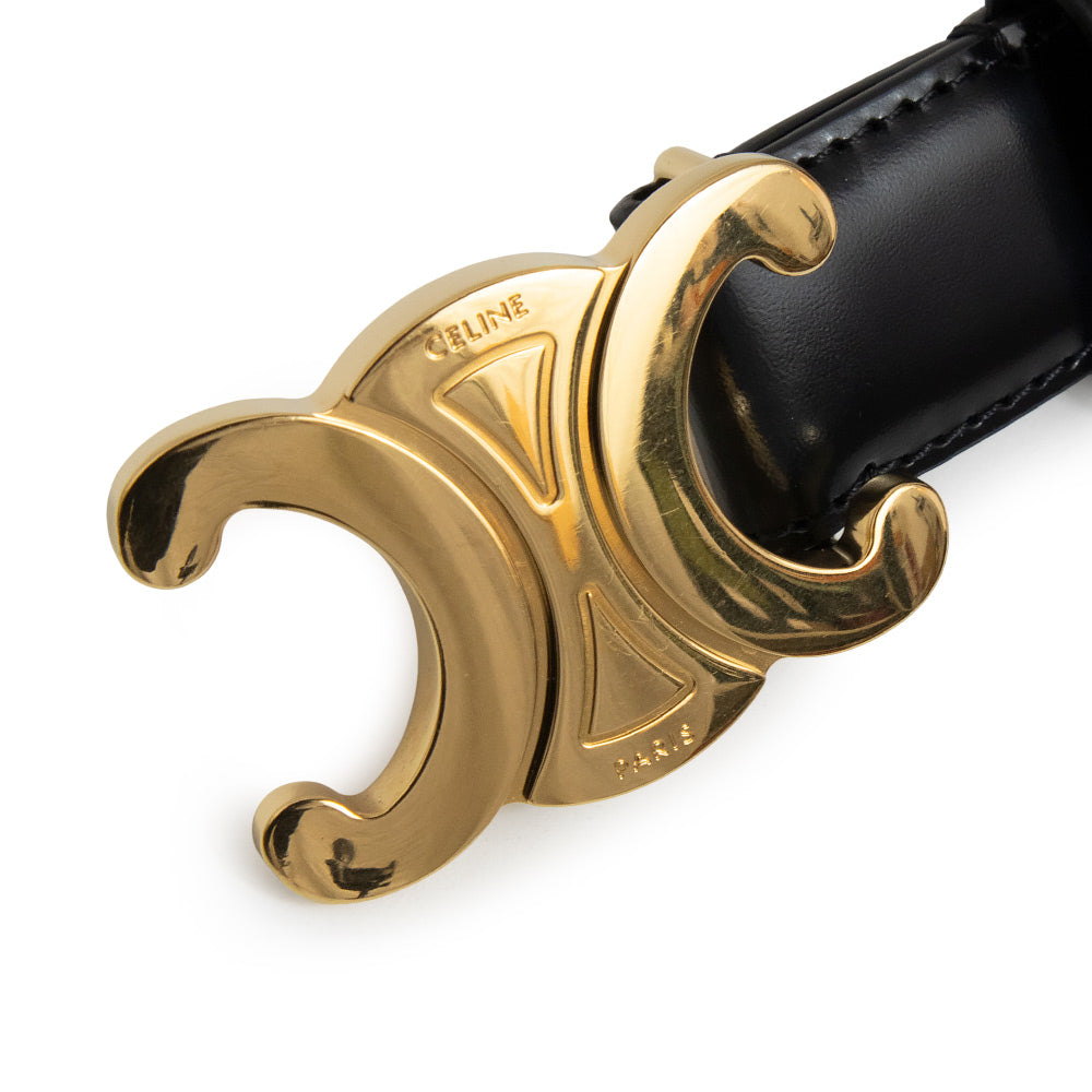 【未使用 展示品】セリーヌ CELINE ミディアム 25MM トリオンフ #75 ベルト トリヨンレザー ブラック ゴールド金具 45AK93A01.38NO 箱付
