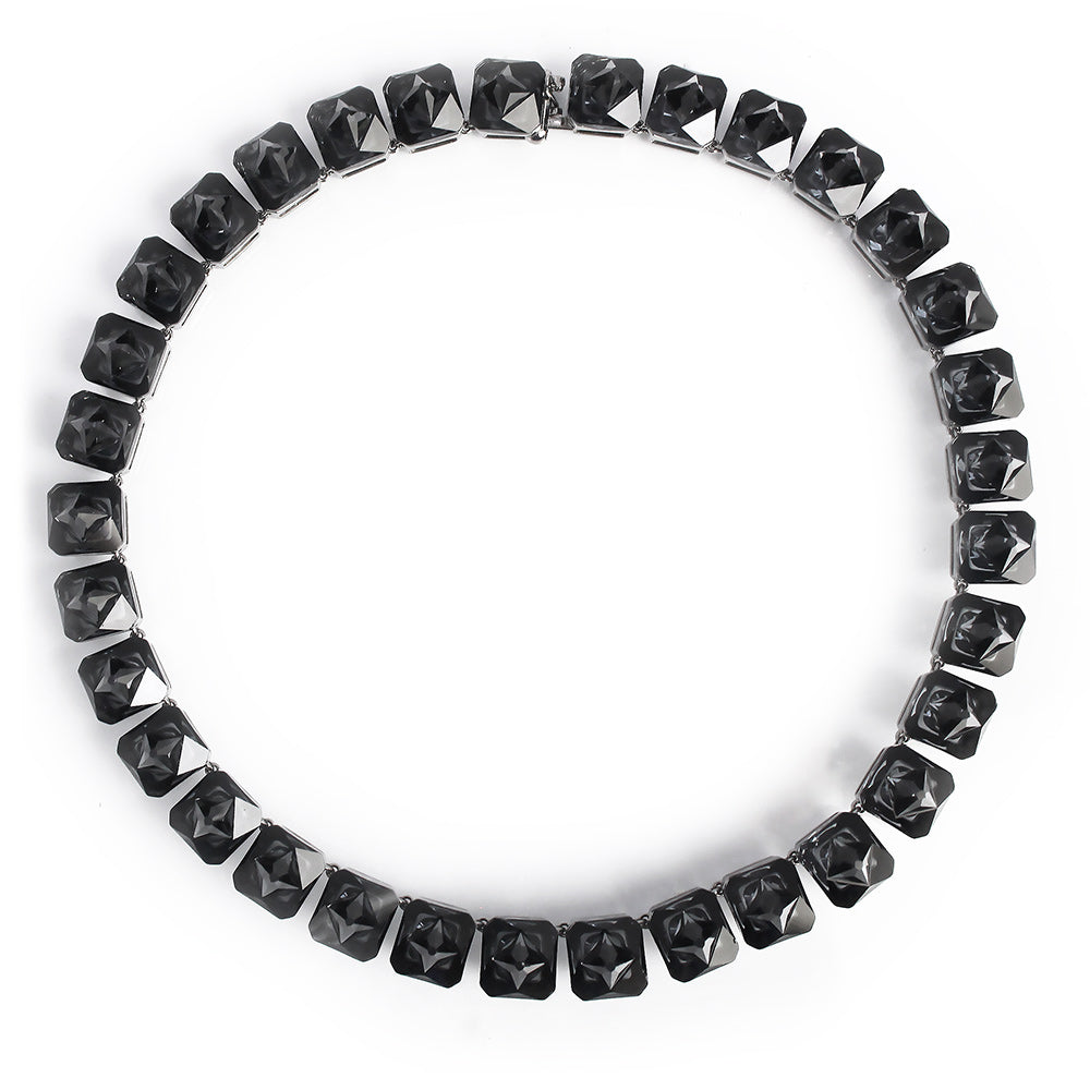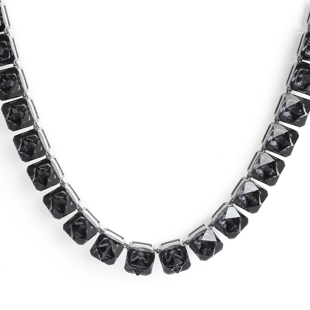 スワロフスキー Swarovski 『Ortyx ネックレス ピラミッドカット』です。上品な色合いに、輝くピラミッドカットのクリスタルが立体的にあしらわれたジェンダーレスのオールアラウンドネックレス。