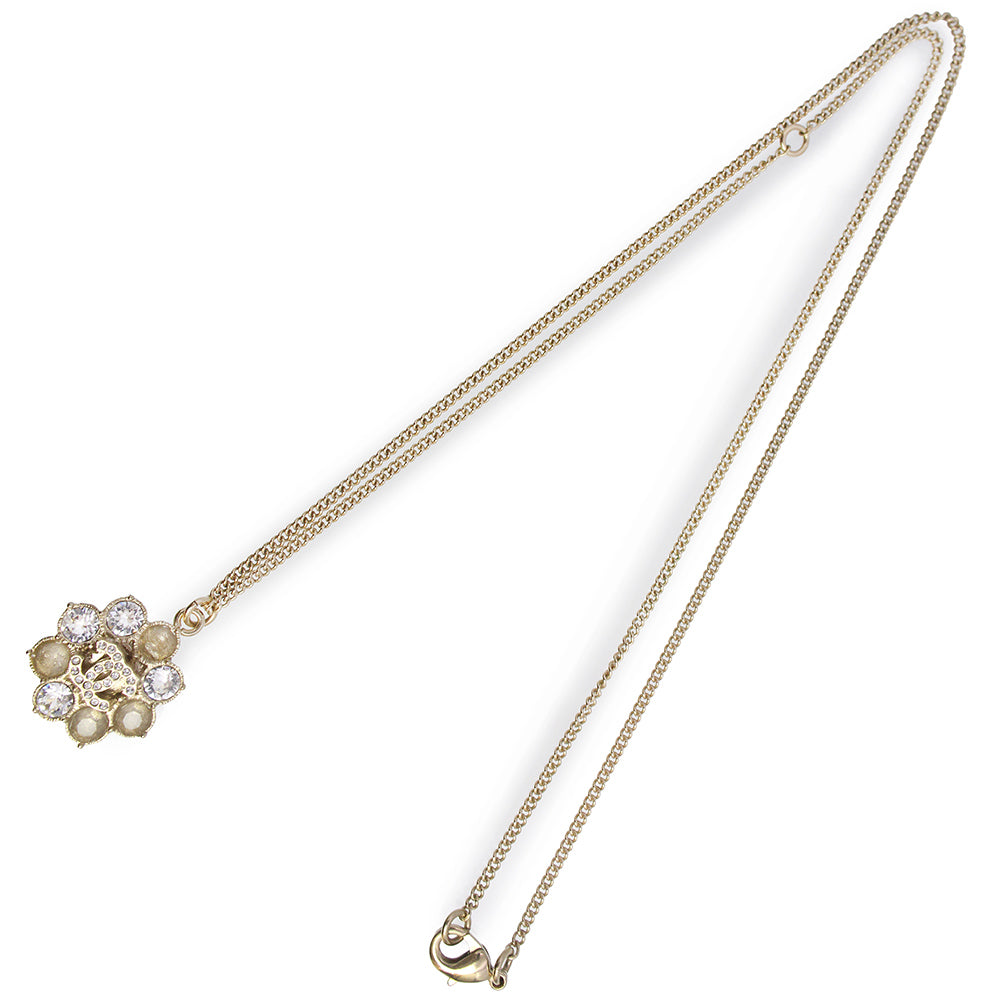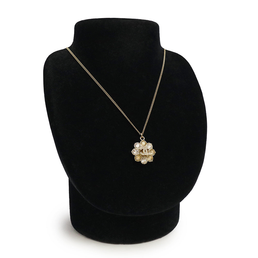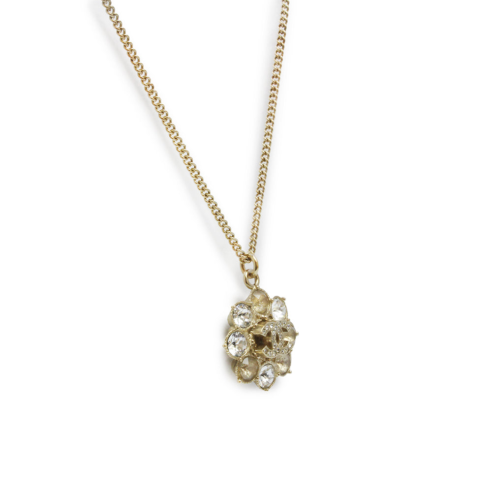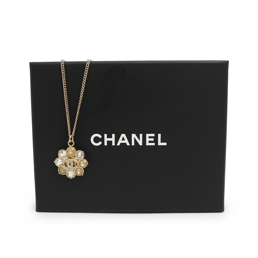 【新品・未使用品】シャネル CHANEL ココマーク ラインストーン フラワーモチーフ ペンダント ネックレス 二段階調節 ゴールド A85781