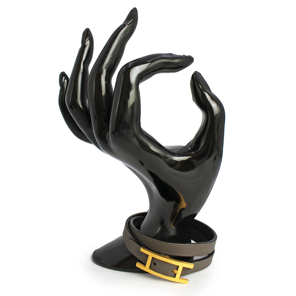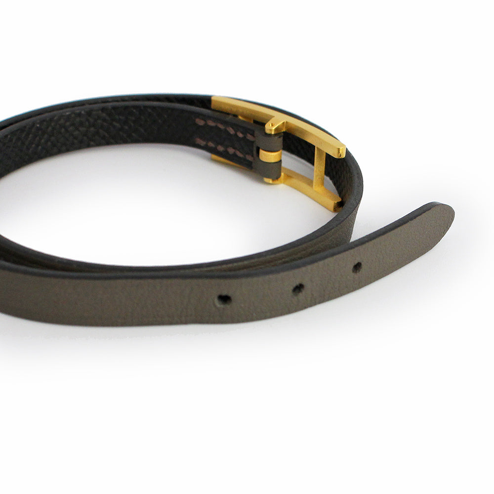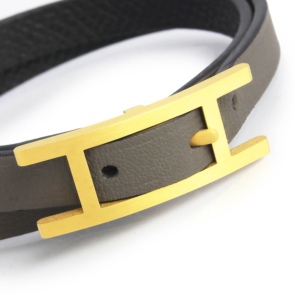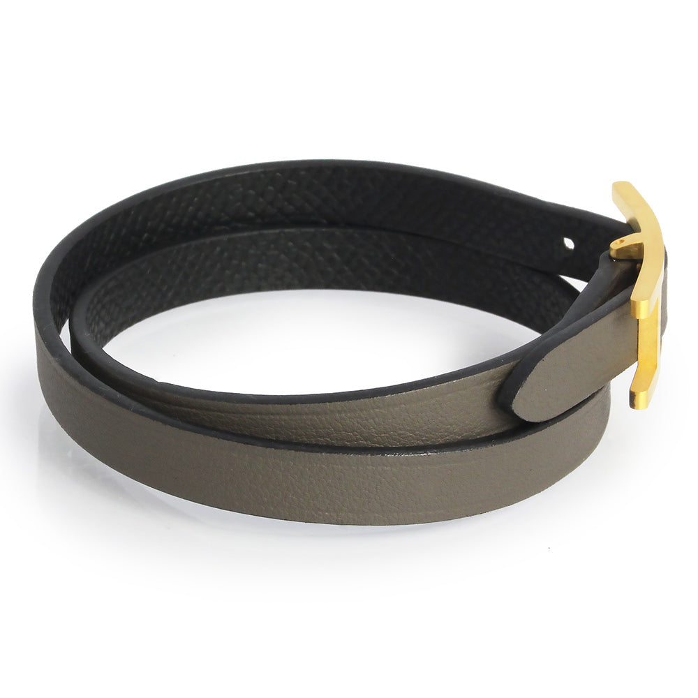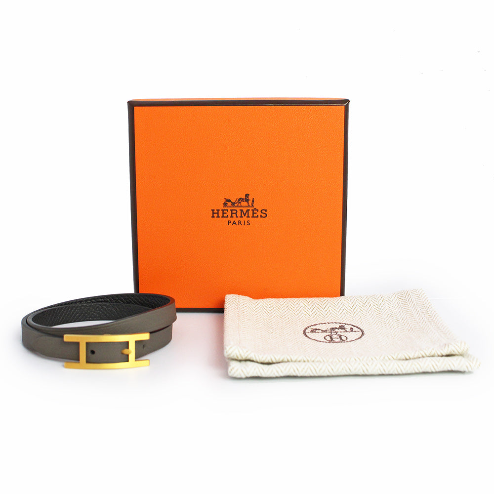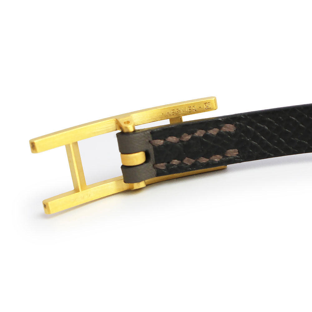 【未使用 展示品】エルメス HERMES ビーアピ ドゥブルトゥール リバーシブル 2連 ブレスレット #T4 ヴォーエプソン ヴォースイフト レザー グリエタン ノワール グレー ブラック マットゴールド金具 箱付