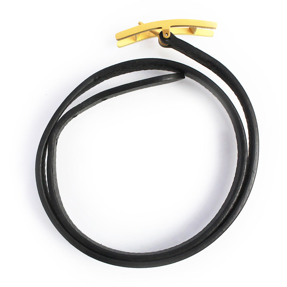 細身のレザーにH型の留め具を組み合わせたシンプルなデザインのビーアピ レザーブレスレット。バイカラーのレザーで気分に合わせてリバーシブルでもお使い頂けます。