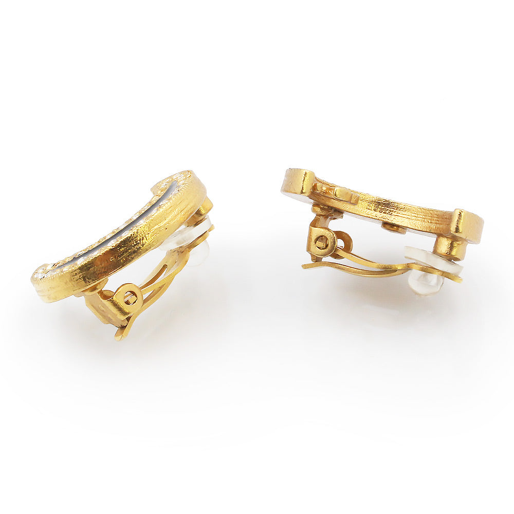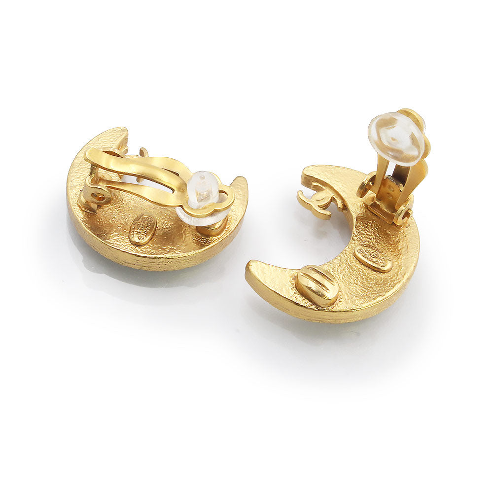 三日月にかたどられたキュートなシャネルのイヤリング。さりげなくココマークが施されて、ラインストーンがきらきら輝きます。シンプルなスタイルでもこれひとつで華やかさをプラスできます。