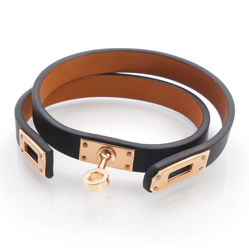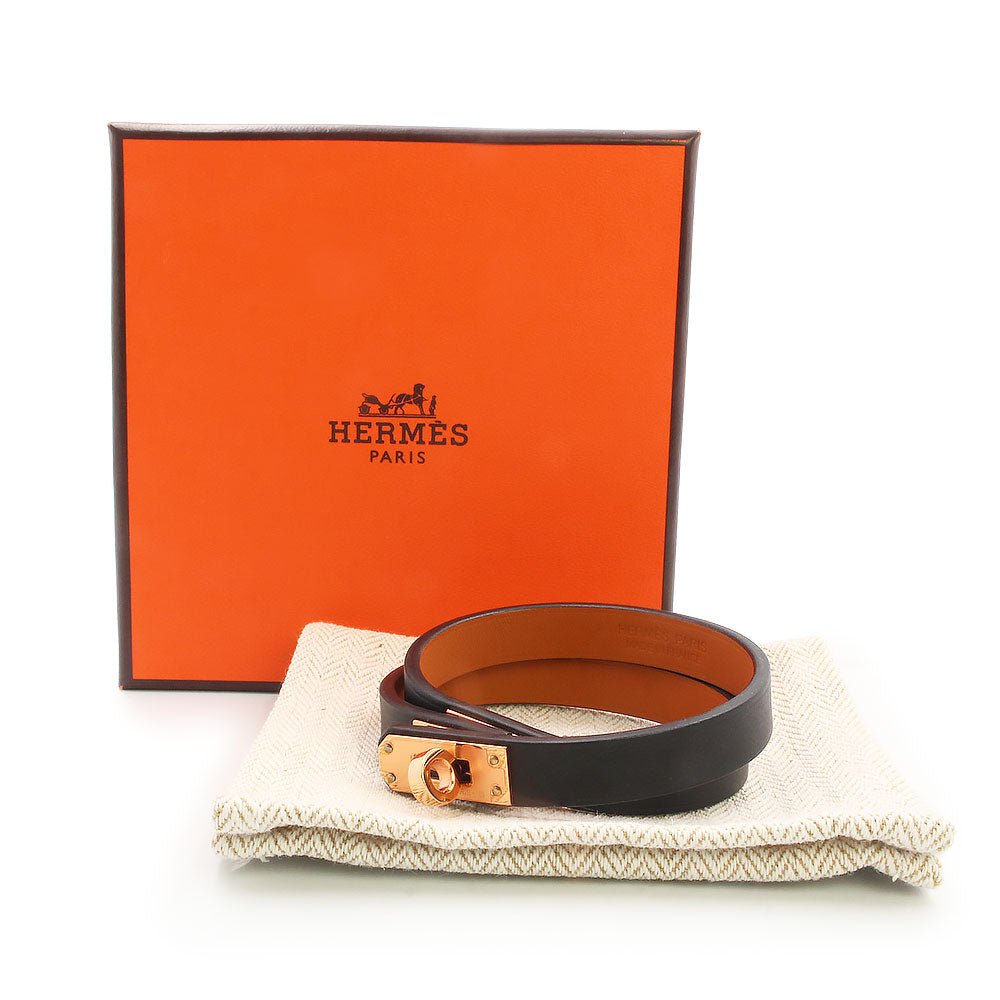 【新品・未使用品】エルメス HERMES ミニ ケリー ドゥブルトゥール 2連 ブレスレット #T2 ヴォースイフト レザー ノワール ブラック ピンクゴールド金具 W刻印 箱付