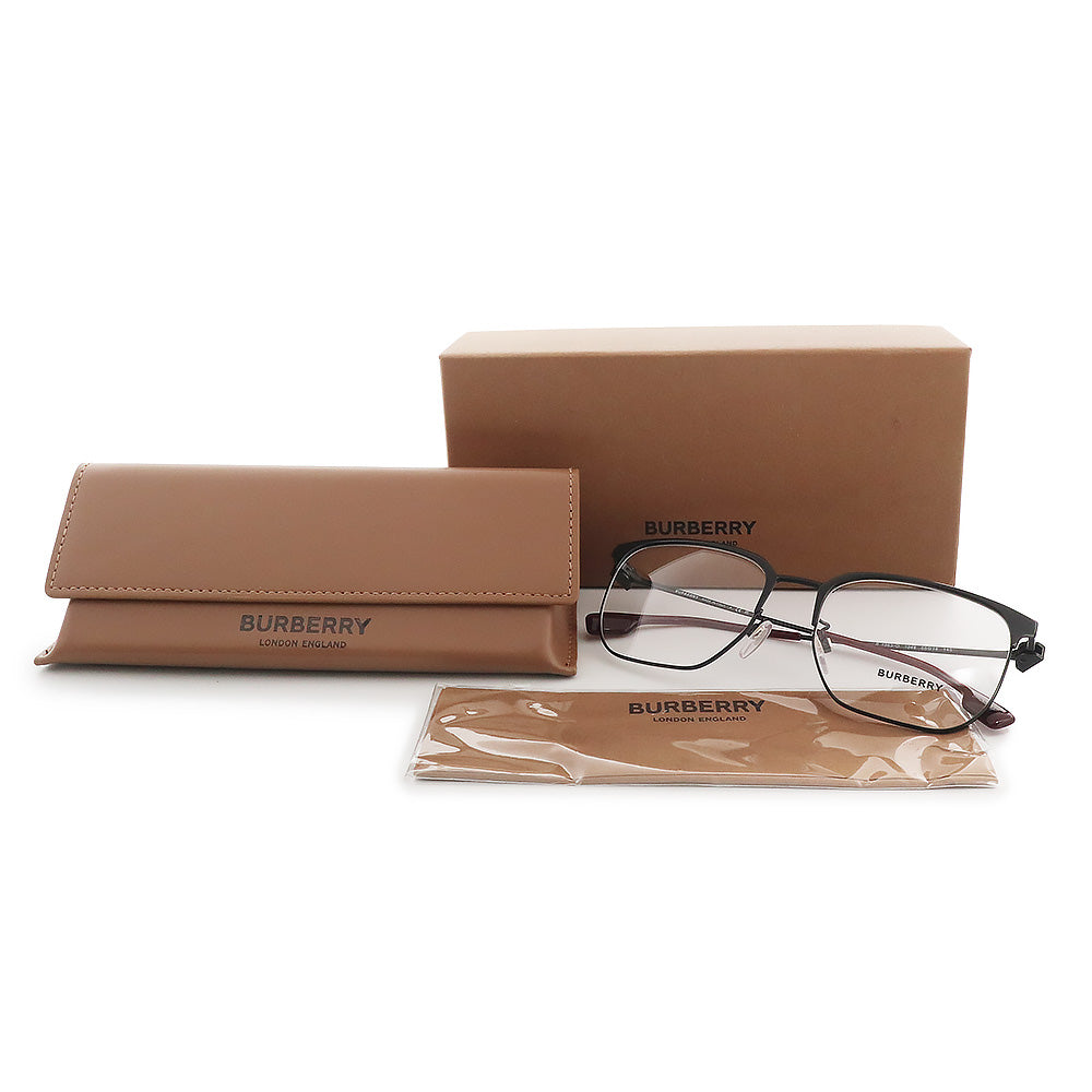【未使用 展示品】バーバリー BURBERRY チェック スクエア アイウェア メガネ 眼鏡 サングラス プラスチック ブラック レッド シルバー金具 B1383 箱付
