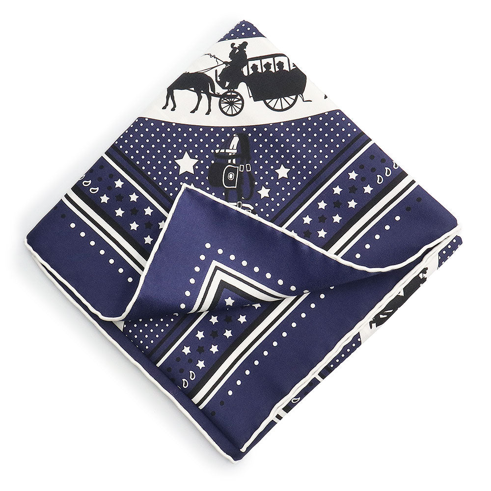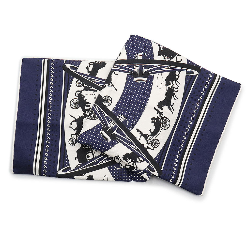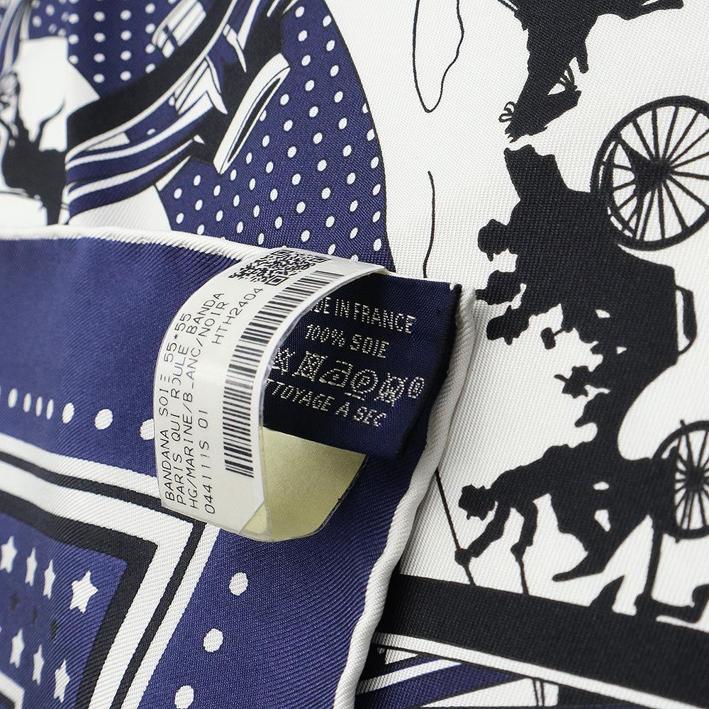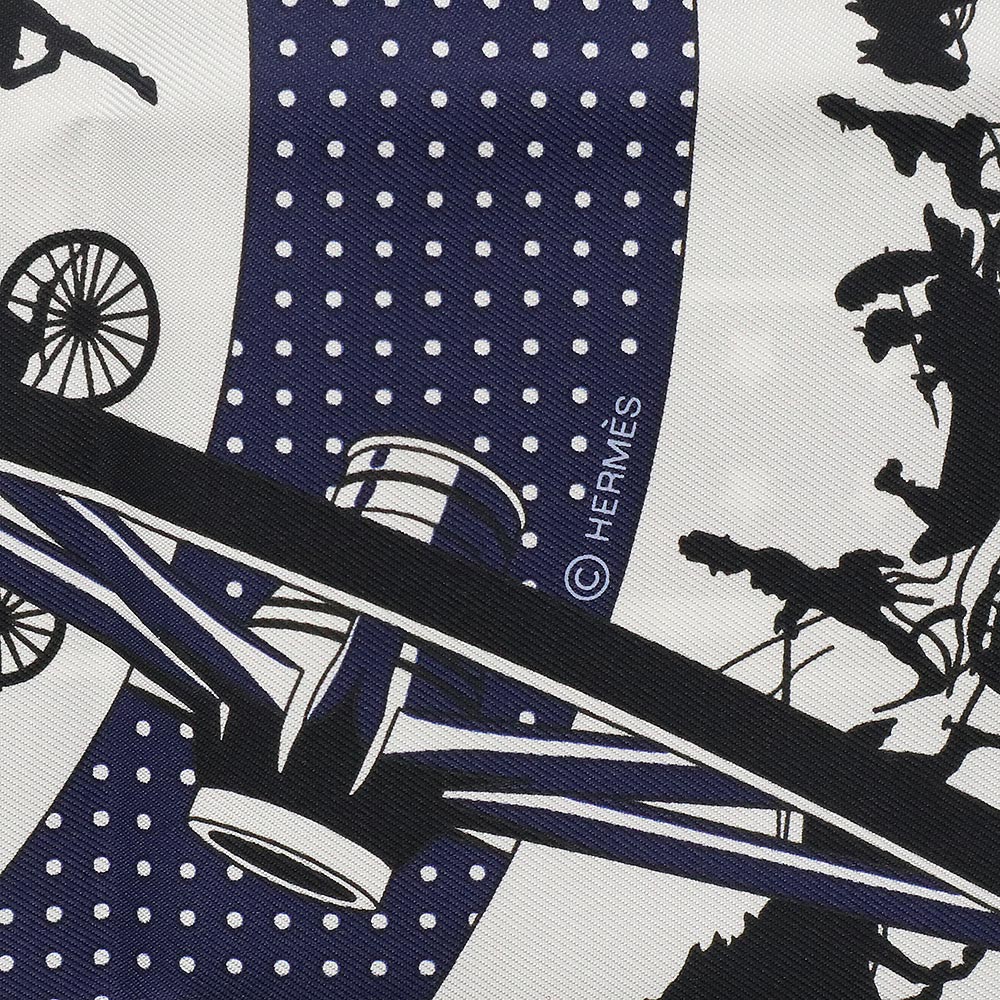 【新品・未使用品】エルメス HERMES カレ 55 Paris Qui Roule Bandana 車輪でめぐるパリ バンダナ スカーフ シルク100% マリン マリーヌ ブラン ノワール ネイビー 箱付