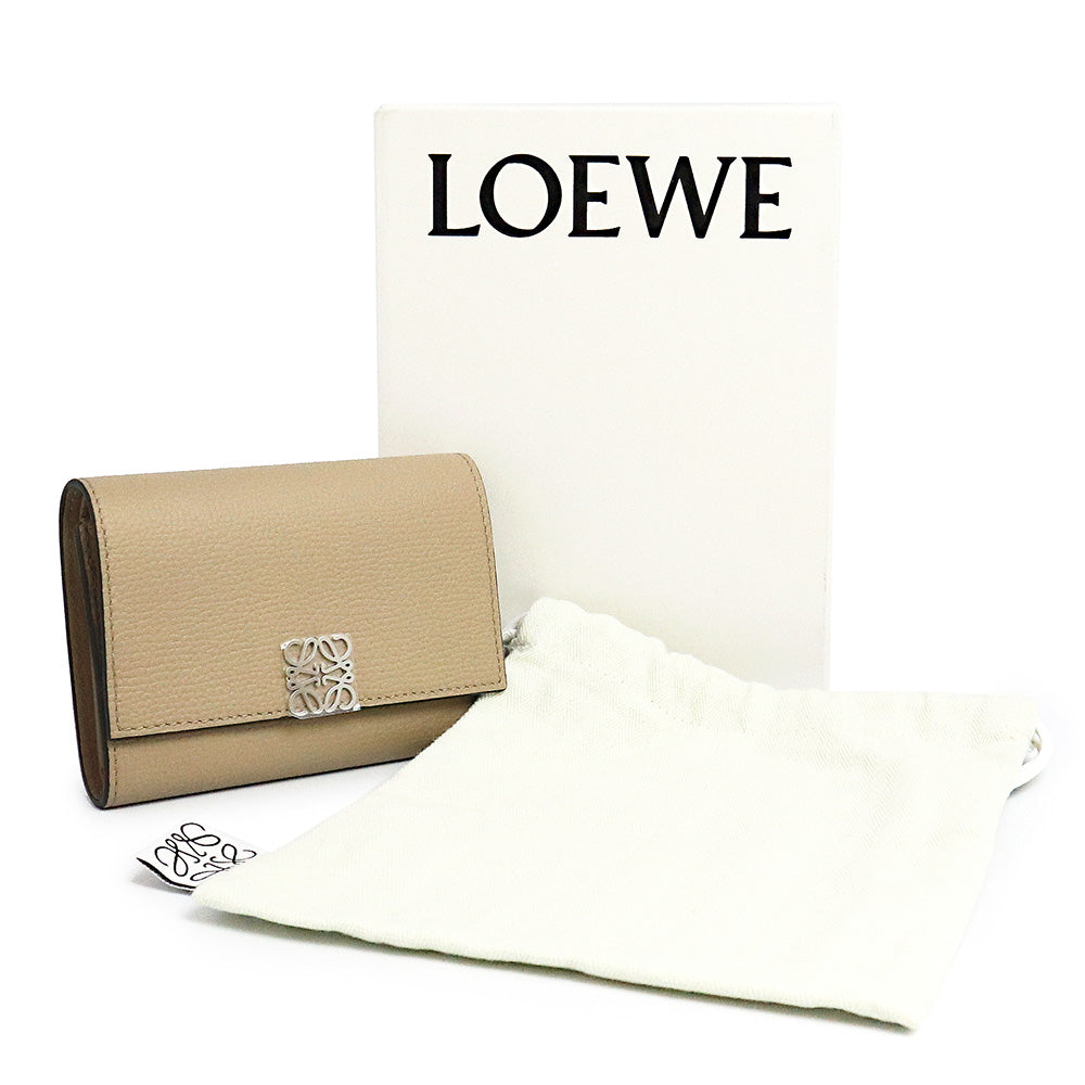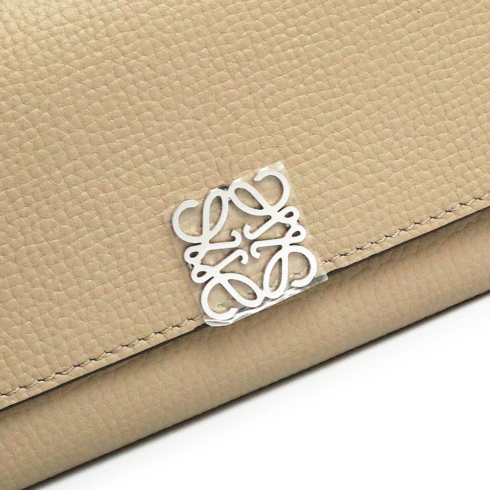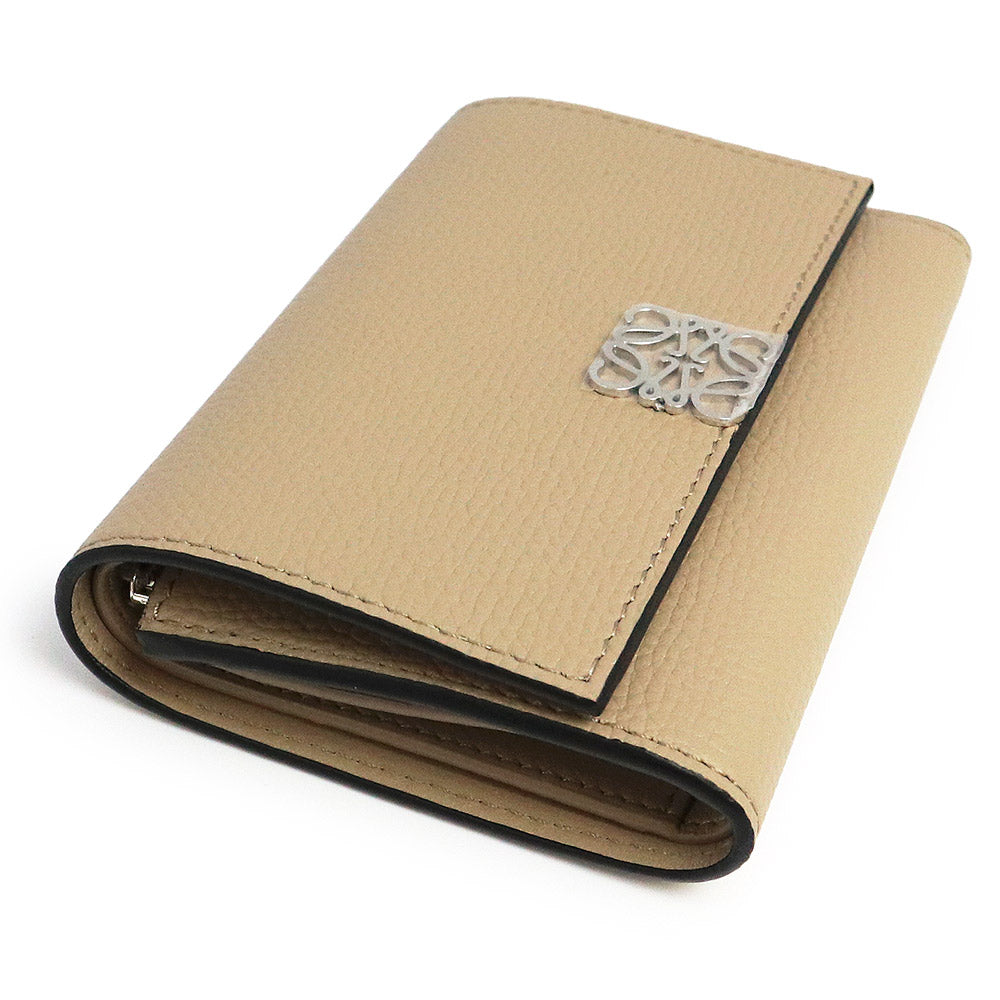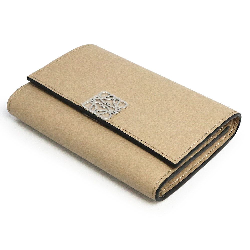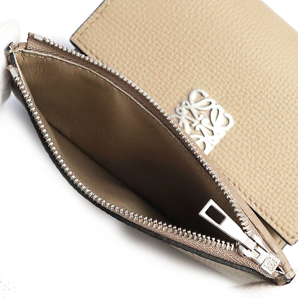 【新品・未使用品】ロエベ LOEWE アナグラム バーティカル ウォレット スモール コンパクト 三つ折り財布 ペブルグレインカーフスキン レザー サンド ベージュ シルバー金具 C821S33X12 箱付