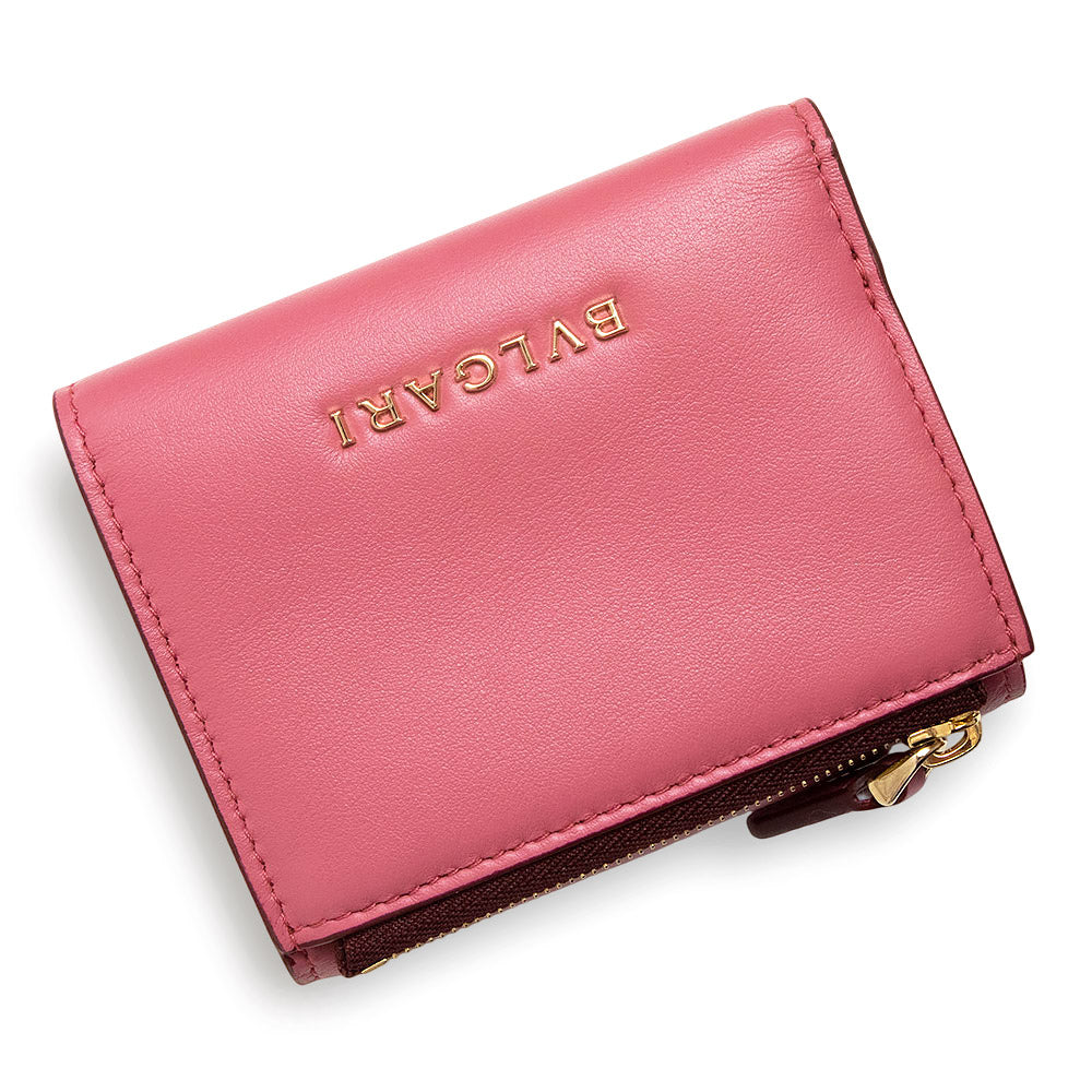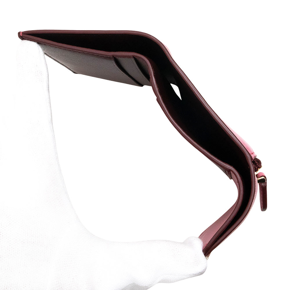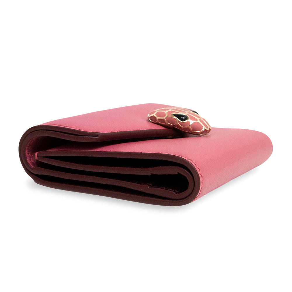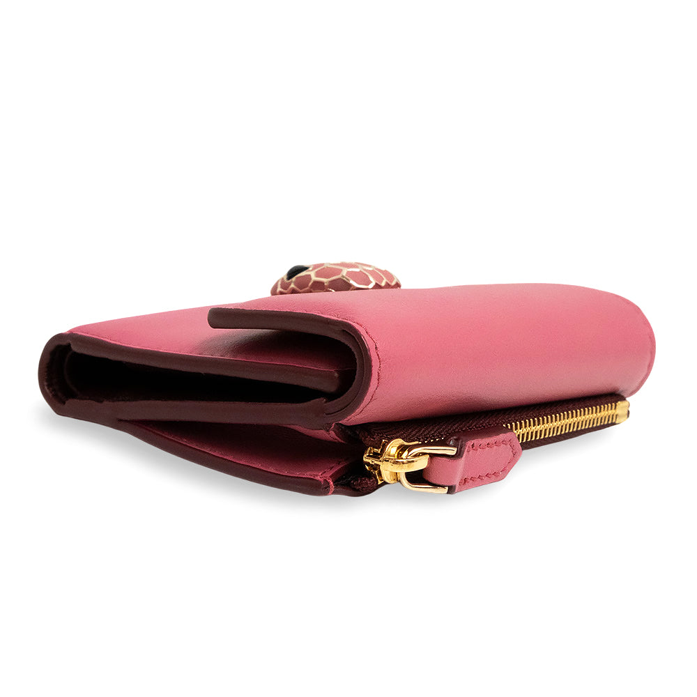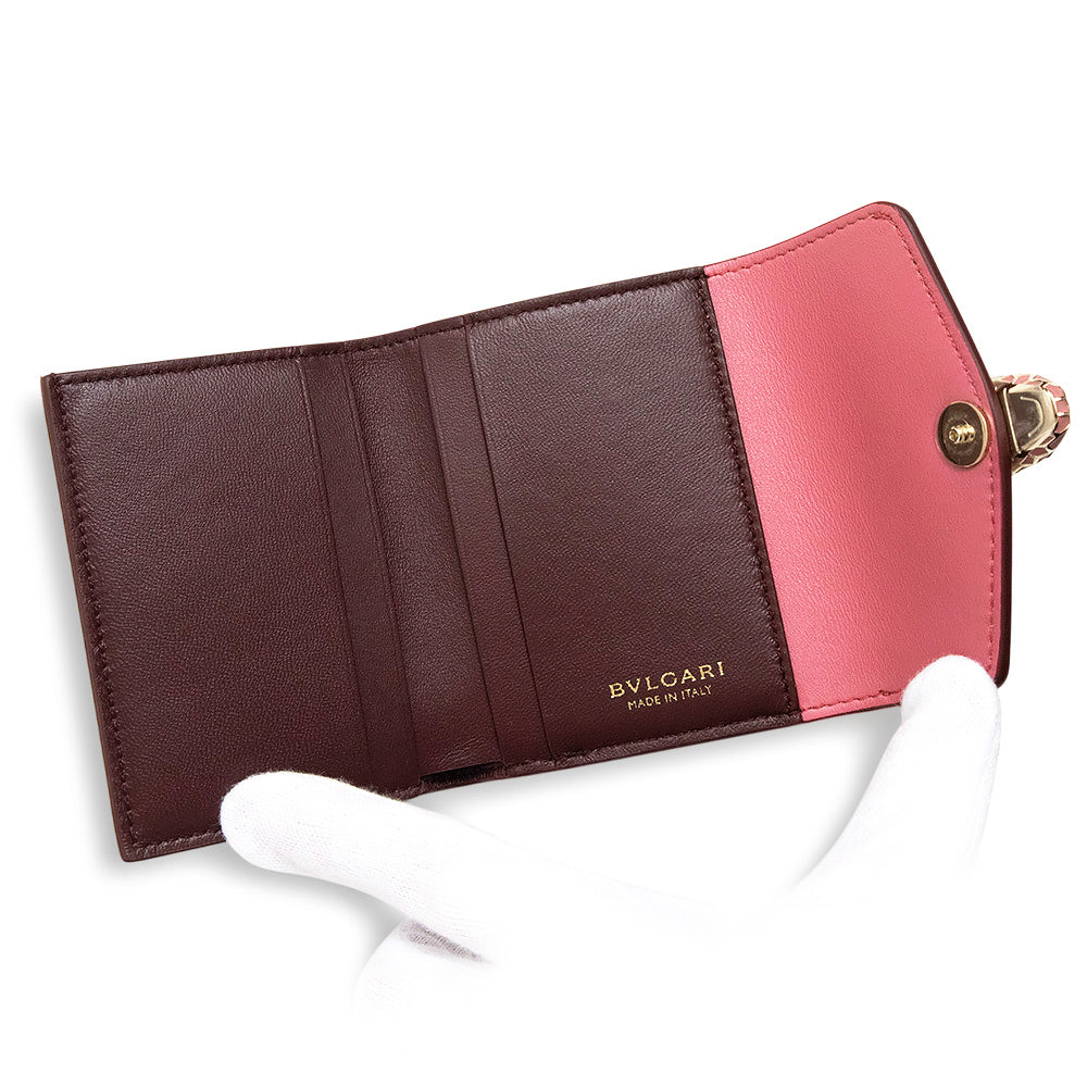 【未使用 展示品】ブルガリ BVLGARI セルペンティ フォーエバー スネーク コンパクト 三つ折り財布 カーフスキン レザー バイカラー ピンク ボルドー ゴールド金具