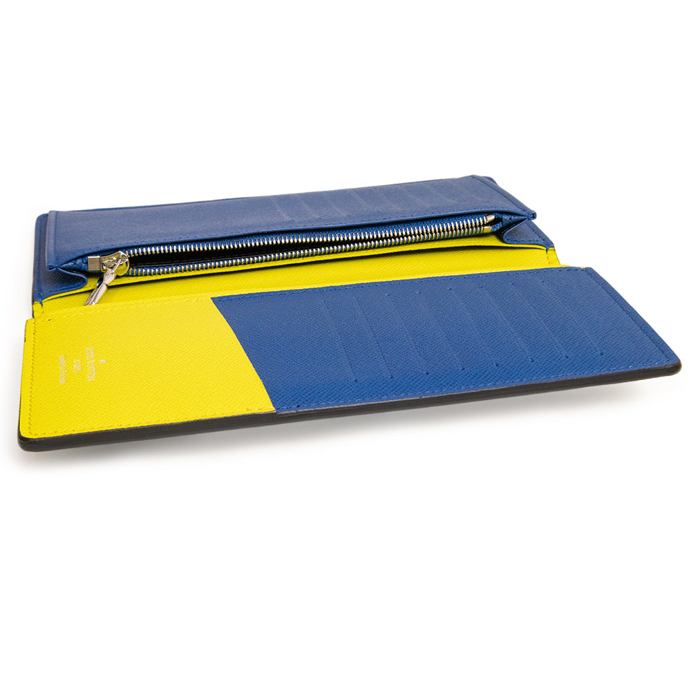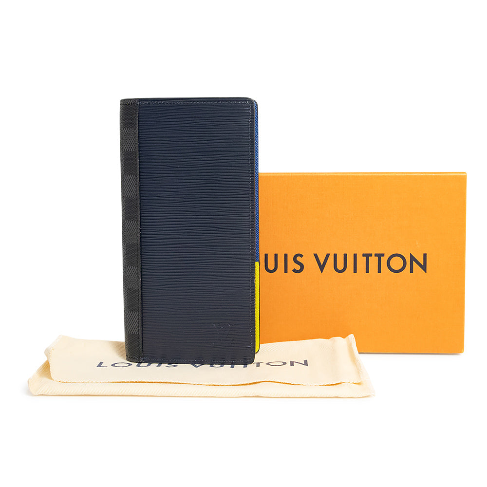 【未使用 展示品】ルイ ヴィトン LOUIS VUITTON ポルトフォイユ ブラザ 二つ折り長財布 エピレザー ダミエグラフィット ブルーマリーヌ ノワール マットブラック イエロー シルバー金具 M67903 箱付