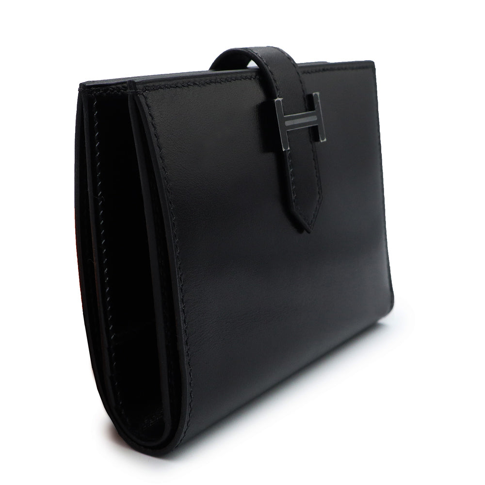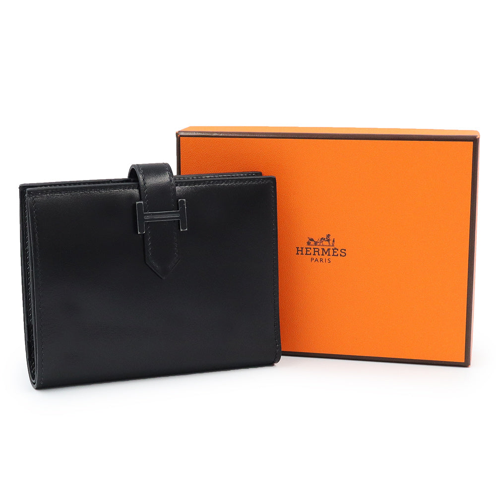 【新品・未使用品】エルメス HERMES ベアン コンパクト モノクローム 二つ折り財布 ボックスカーフ レザー So Black ソーブラック ブラック金具 B刻印 箱付