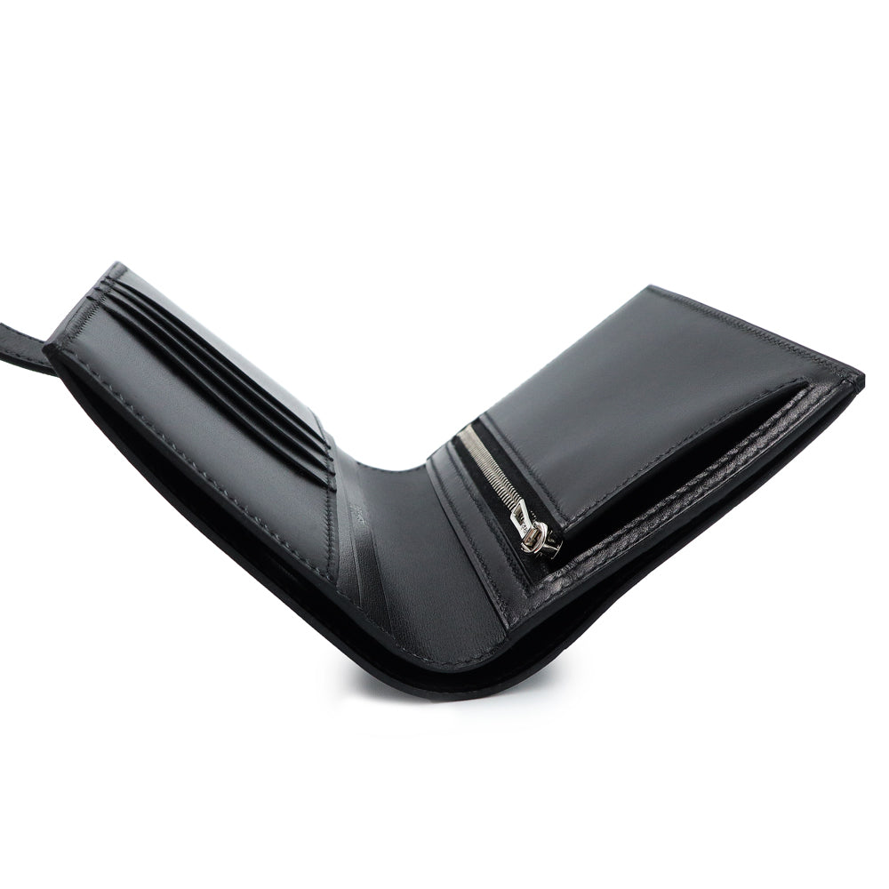 実用性と上品さのどちらも求める方にぴったりなベアンシリーズのコンパクトモデル。ブラックのH型金具がデザインのアクセントになっており、中のジッパーまでゴールドで統一されています。二つ折りで小銭入れつきなので、小さなバッグで出かけたいときに便利です。 |
