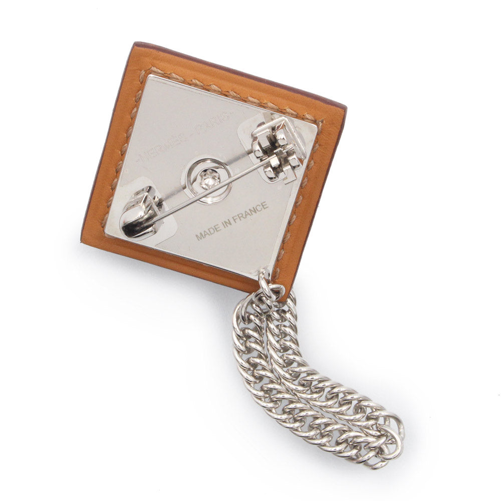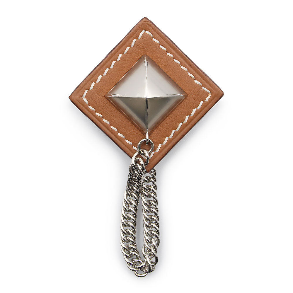 【新品・未使用品】エルメス HERMES グルメット エケストル ブローチ ヴォースイフト レザー ゴールド ブラウン シルバー金具 箱付
