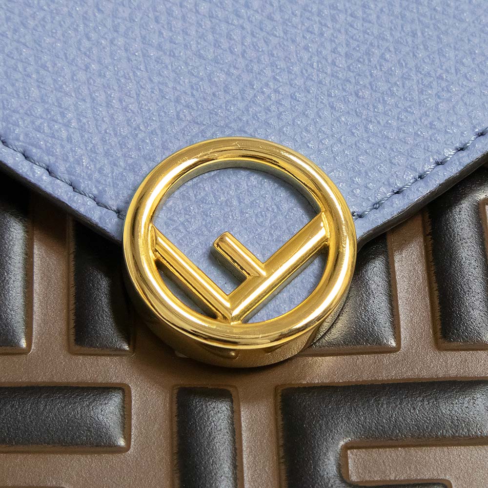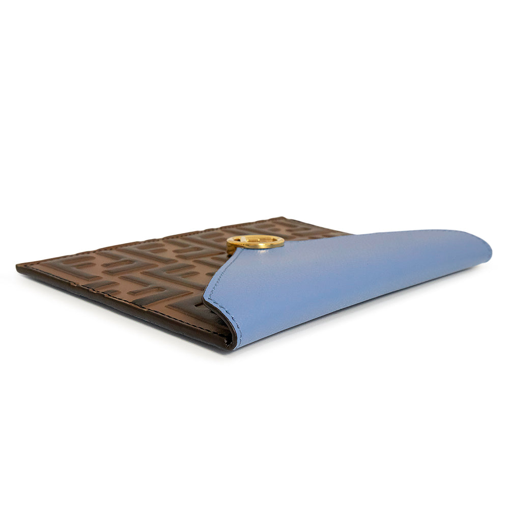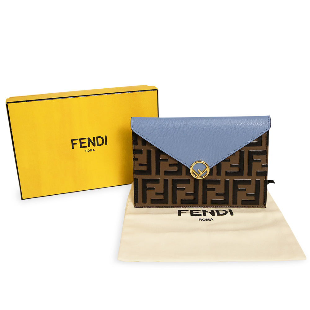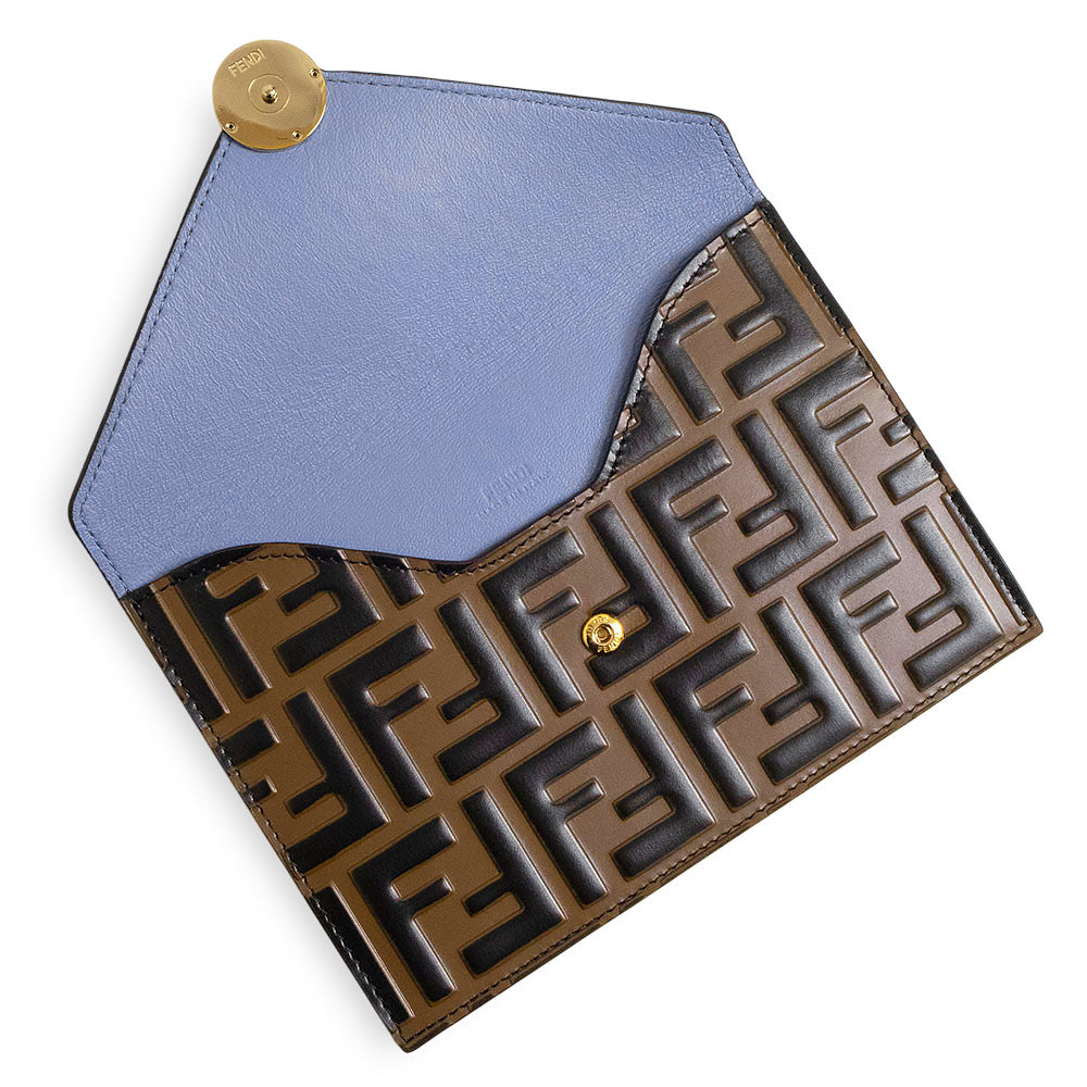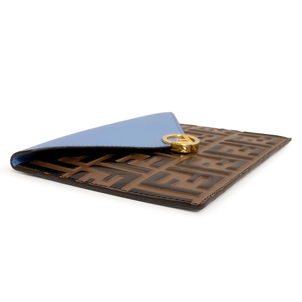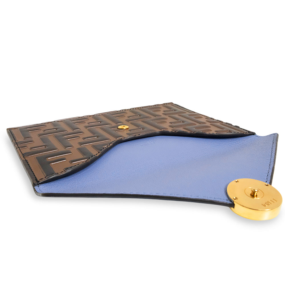 【未使用 展示品】フェンディ FENDI エフ イズ ズッカ柄 フラット ポーチ カーフスキン レザー ブルー ブラウン ゴールド金具 8N0151 箱付