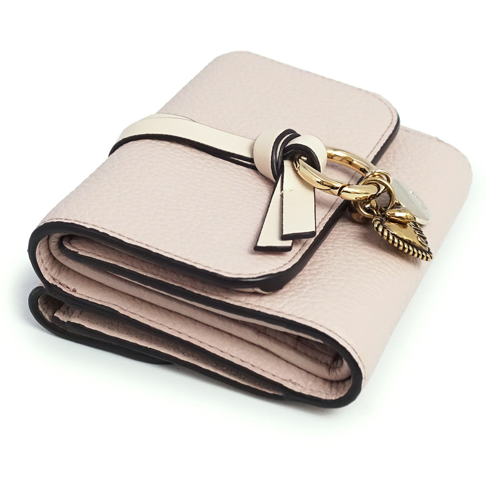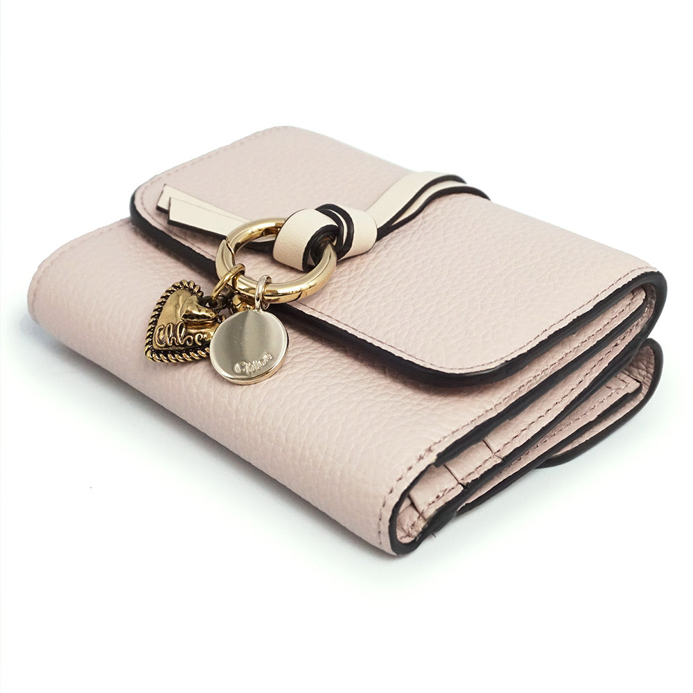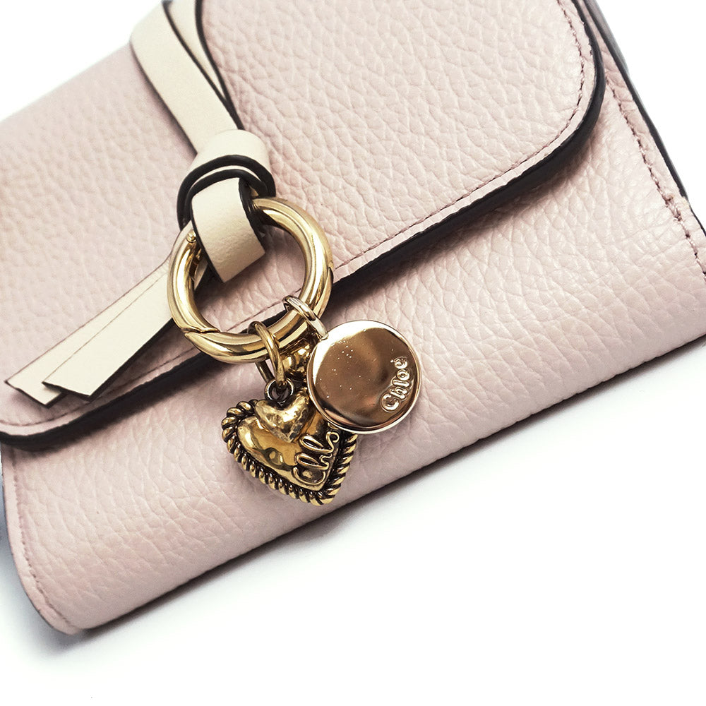 クロエ「アルファベット」シリーズの三つ折財布。可愛らしいゴールドのチャームが目を引きます。三つ折りなのでクラッチや小さめバッグにも収納しやすく、小荷物派の方にもオススメです。 |