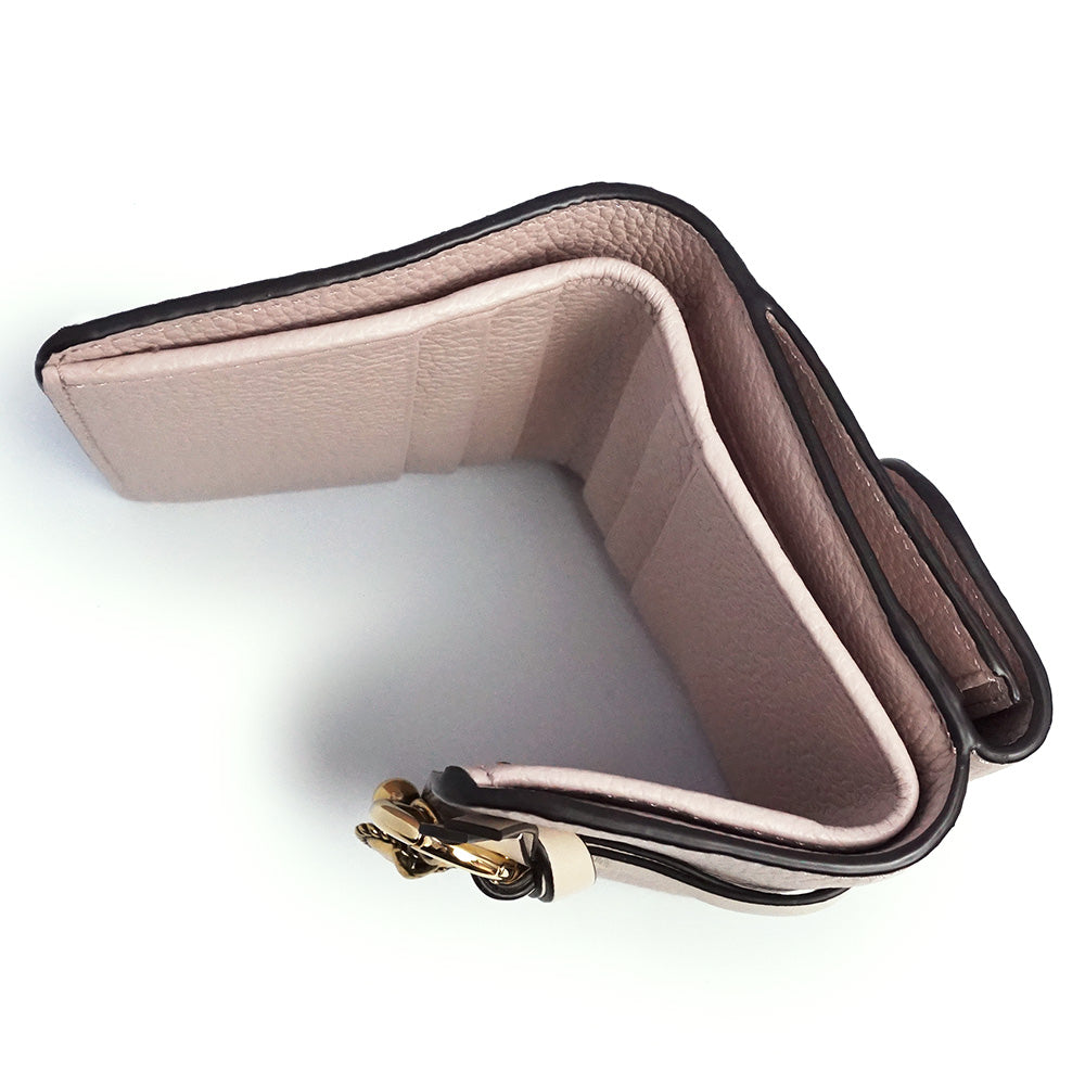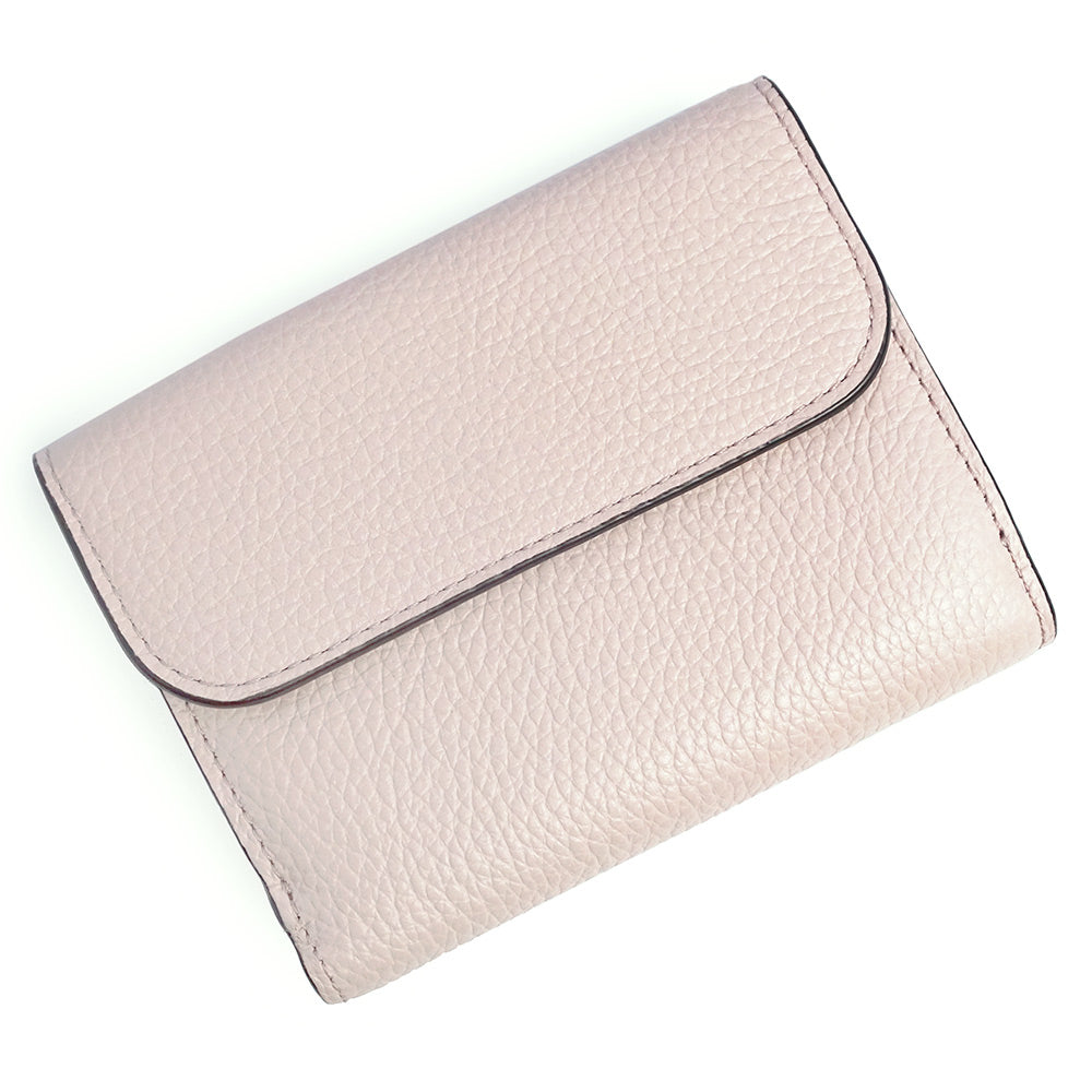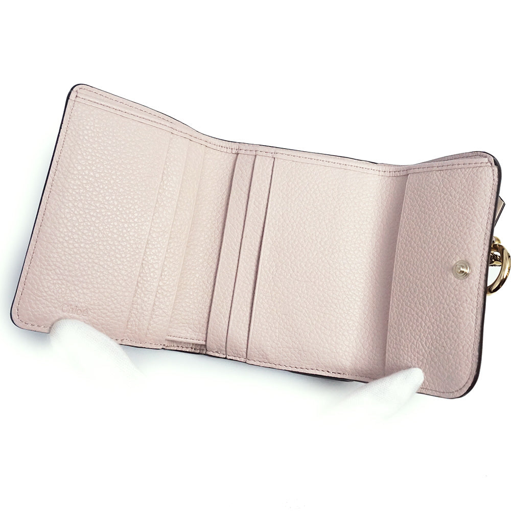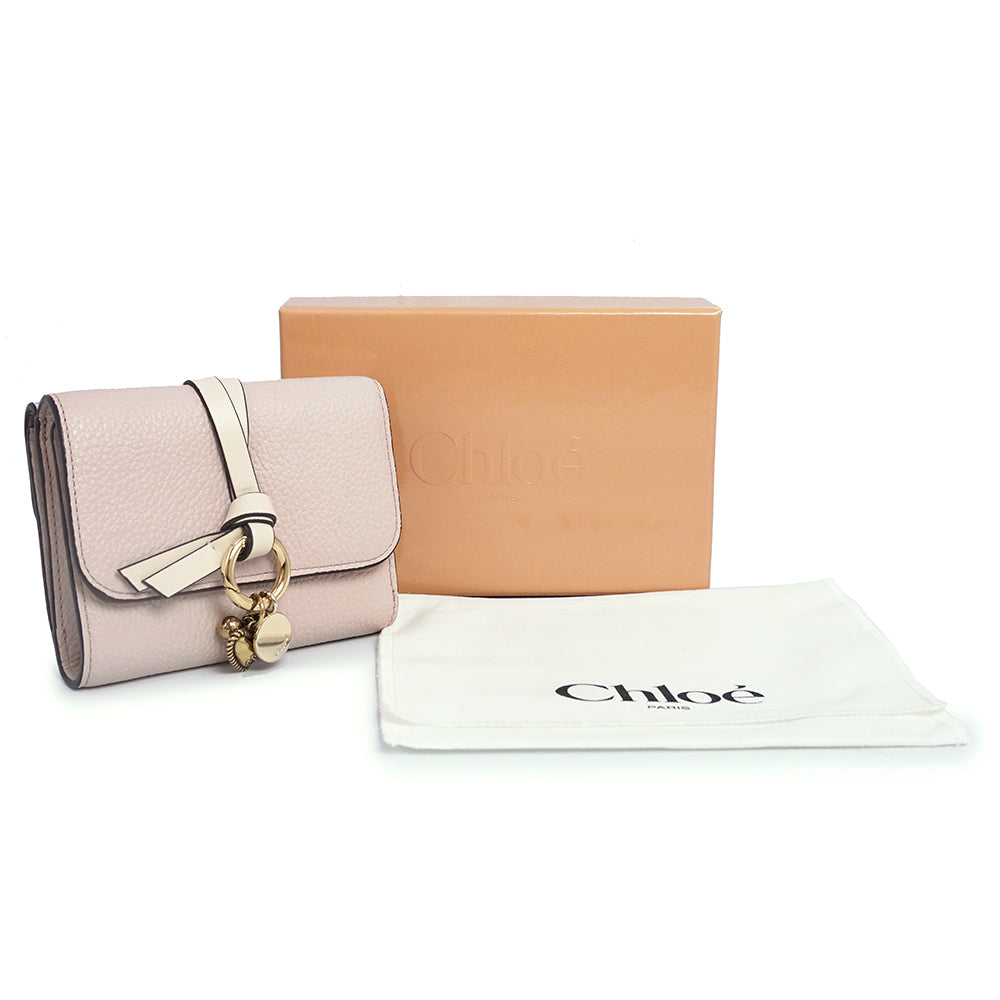 クロエ「アルファベット」シリーズの三つ折財布。可愛らしいゴールドのチャームが目を引きます。三つ折りなのでクラッチや小さめバッグにも収納しやすく、小荷物派の方にもオススメです。 |