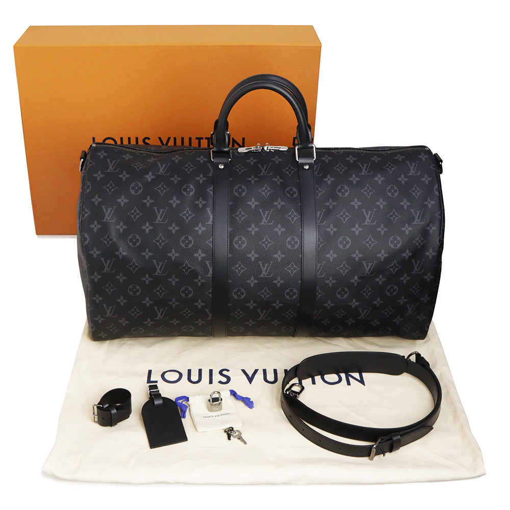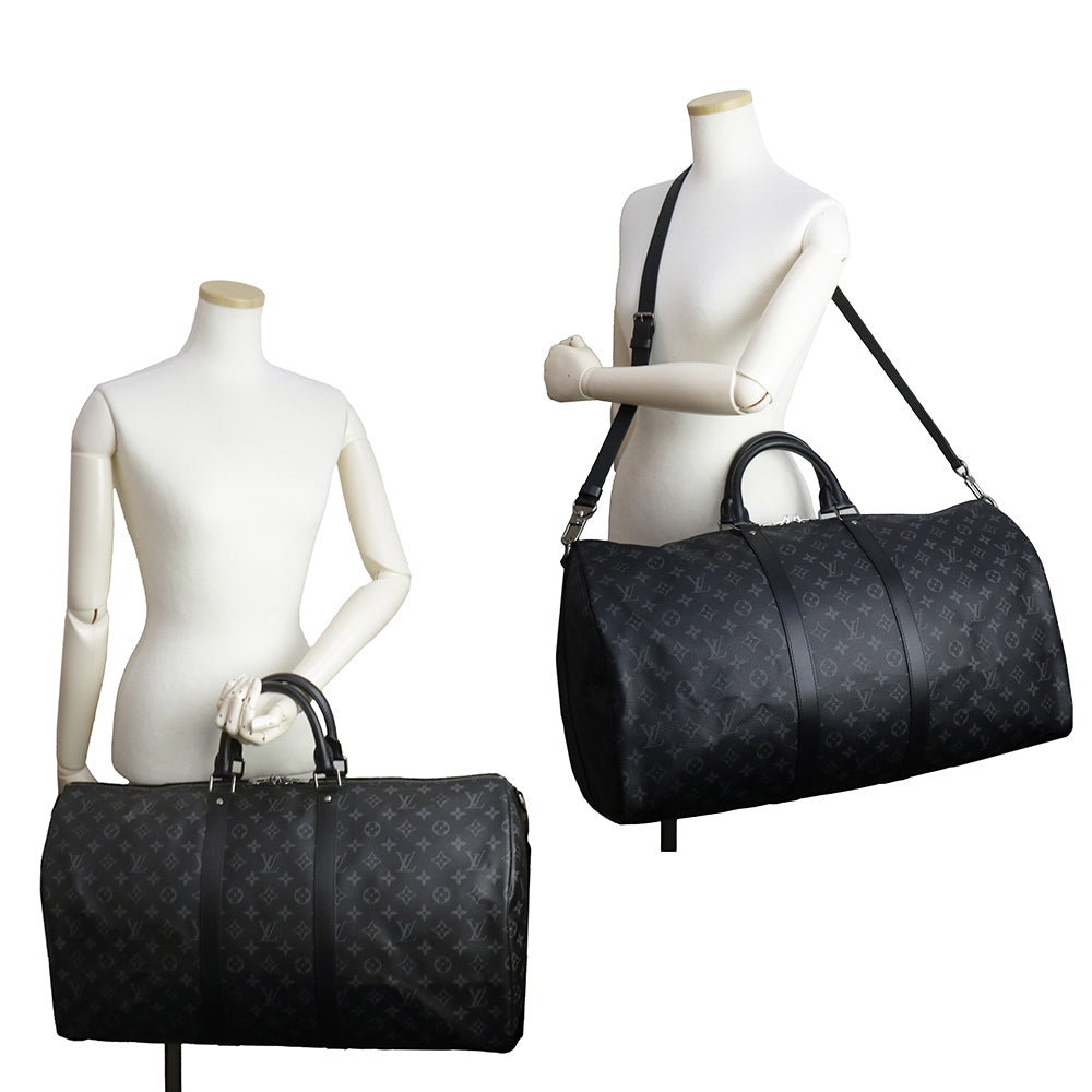【未使用 展示品】ルイ ヴィトン LOUIS VUITTON キーポル バンドリエール 55 2way ショルダー トラベル ボストンバッグ 斜め掛け モノグラムエクリプス ブラック シルバー金具 M40605
