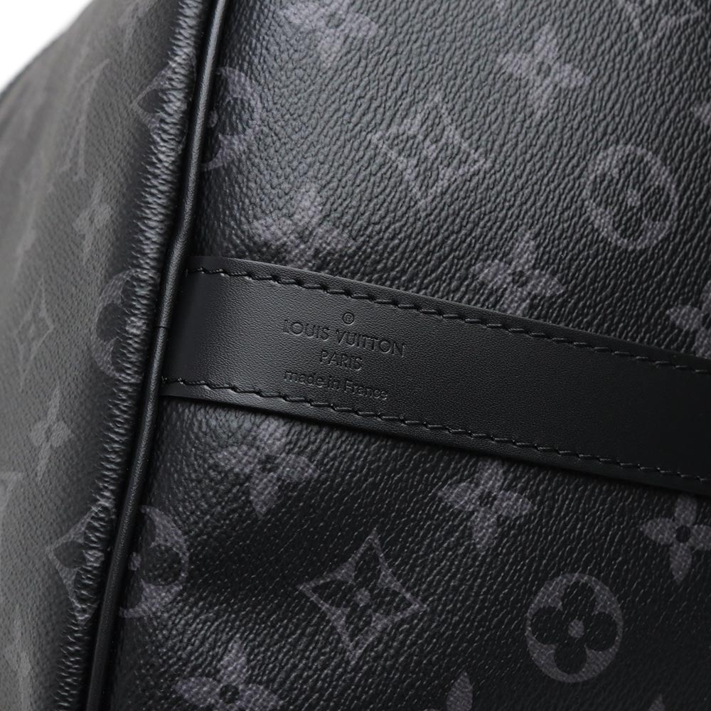 ブラックとグレーのアイコニックな新素材、モノグラム・エクリプス キャンバスで仕立てられた「キーポル・バンドリエール 55」。飽きのこないシンプルなデザインで、パッキングしやすい収納力が魅力。肩に掛けて快適に持ち運べるレザーストラップ付きです。