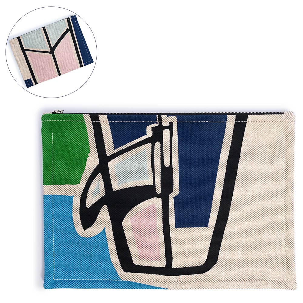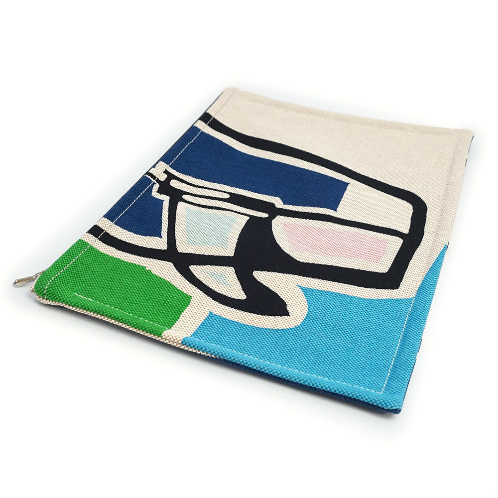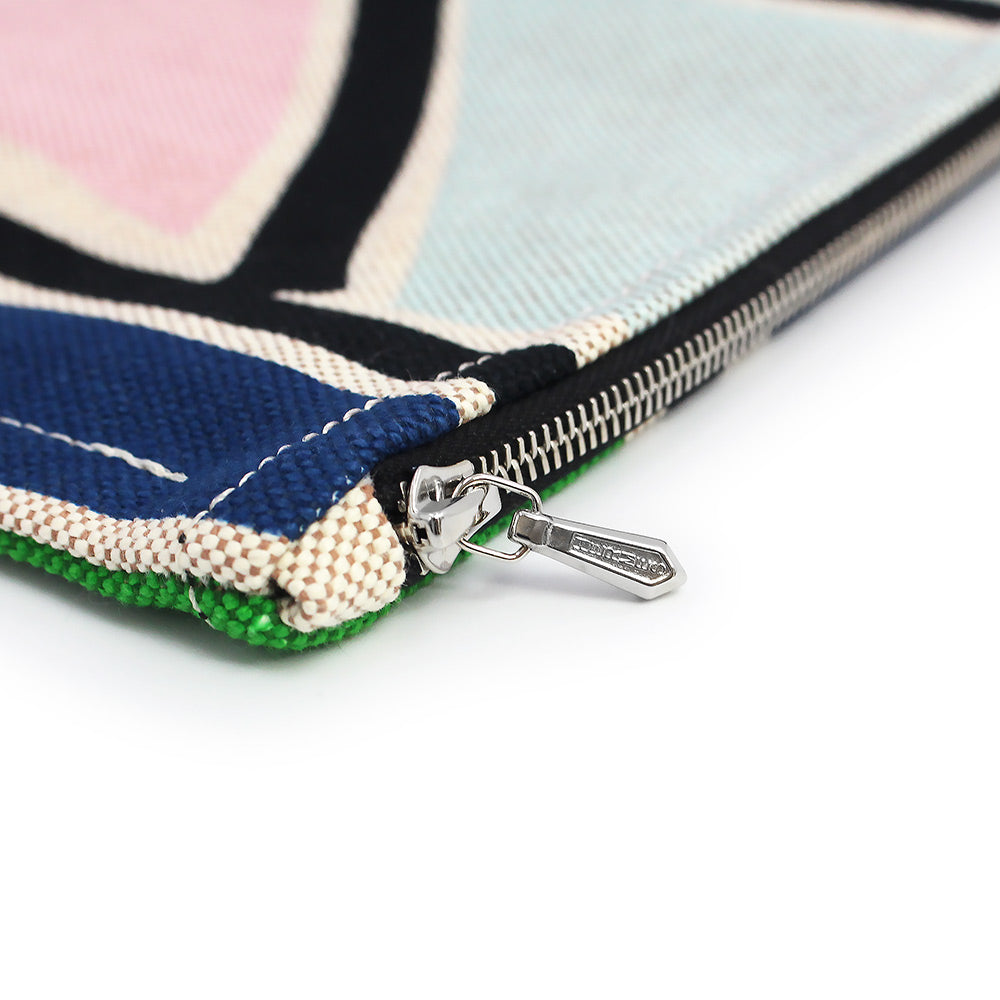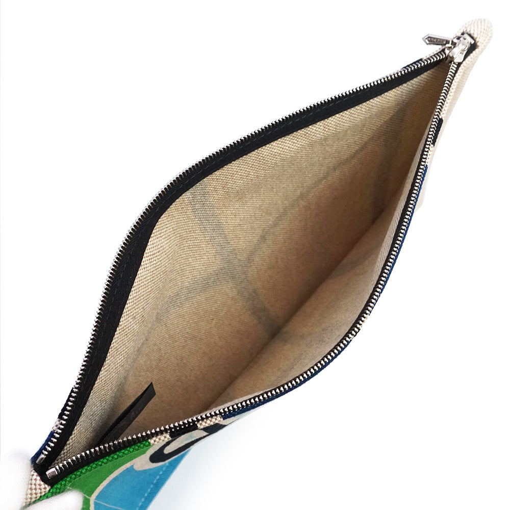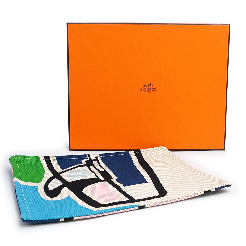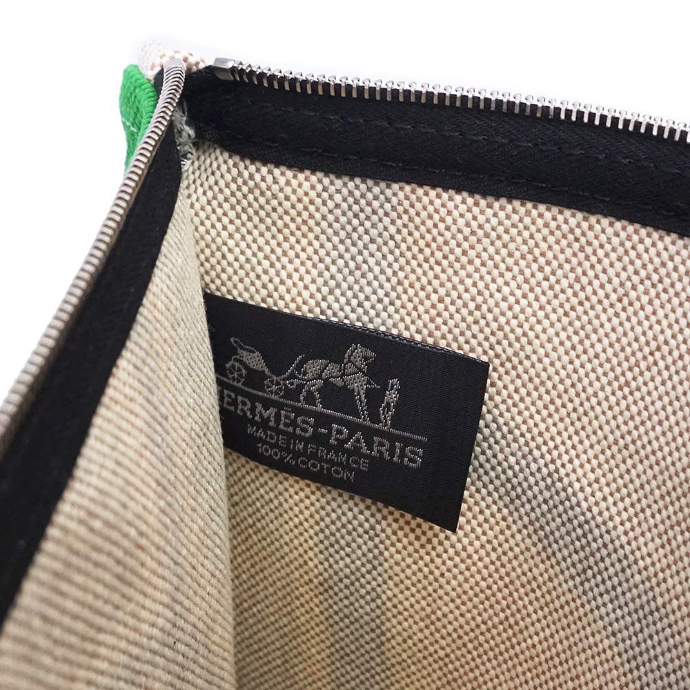 【新品・未使用品】HERMES エルメス ヨッティング 3サーフ GM コットン100% ベージュ マルチカラー フラットポーチ シルバー金具 箱付