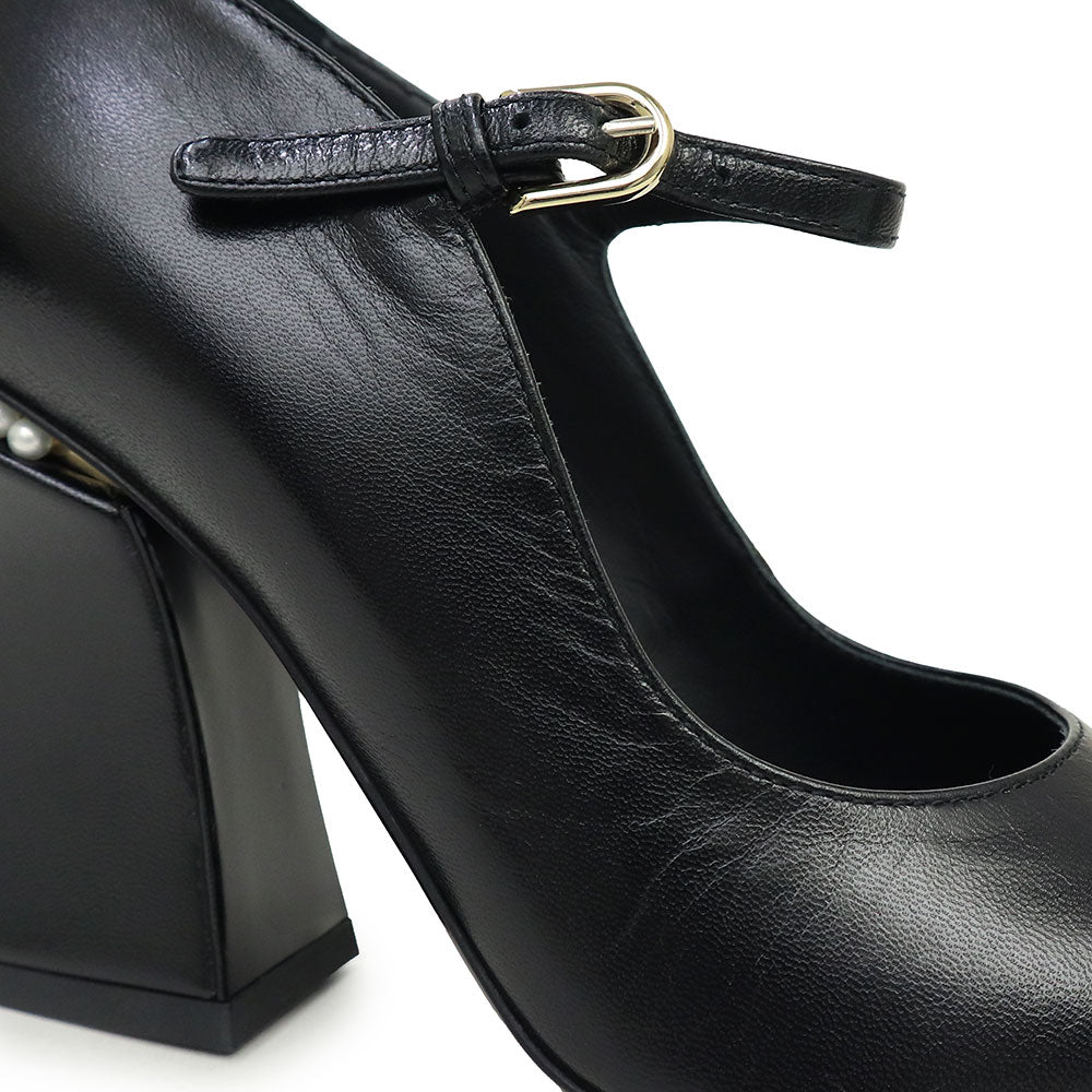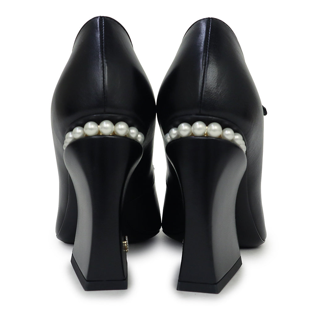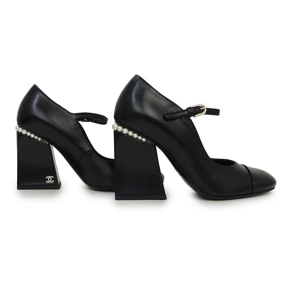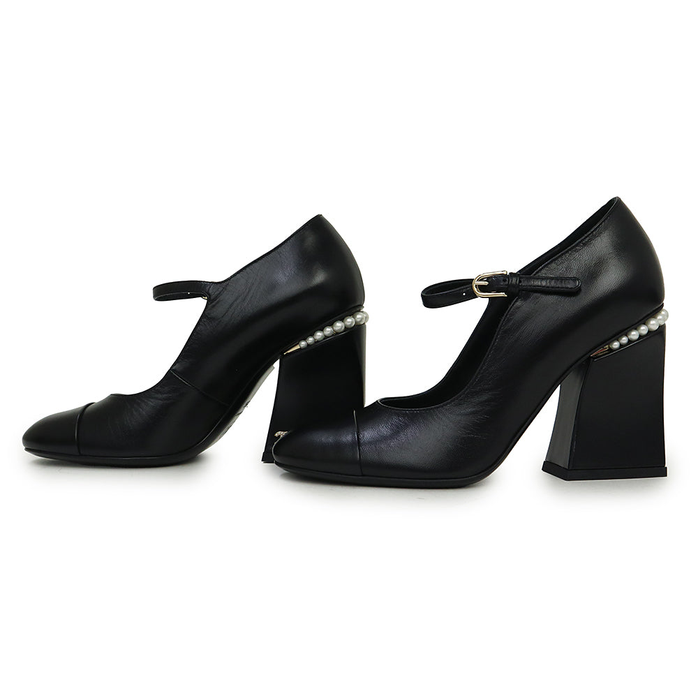 ヒールのパールとココマークが魅力のメリージェーン。チャンキーヒールなので、9cmの高さでも安定感があります。落ち着いたデザインで合わせやすく普段使いにはもちろん、パーティーシーンにも活躍するアイテムです。 |