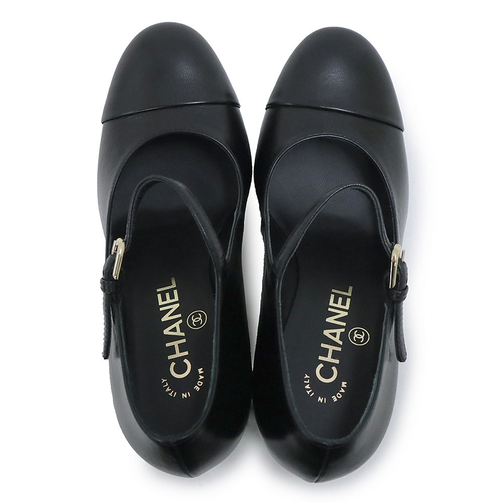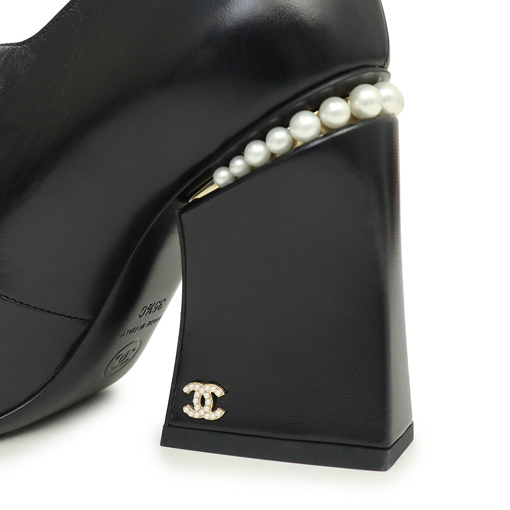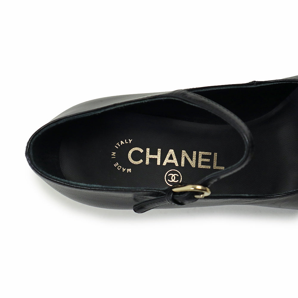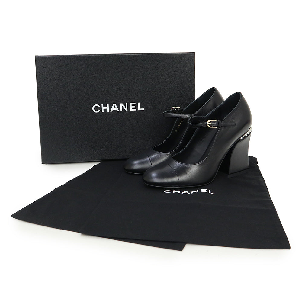 【未使用保管品】シャネル CHANEL メティエダール コレクション ココマーク メリージェーン パンプス 靴 #35.5 22.5cm シャイニーゴートスキン レザー パール ゴールド金具 G39245 箱付