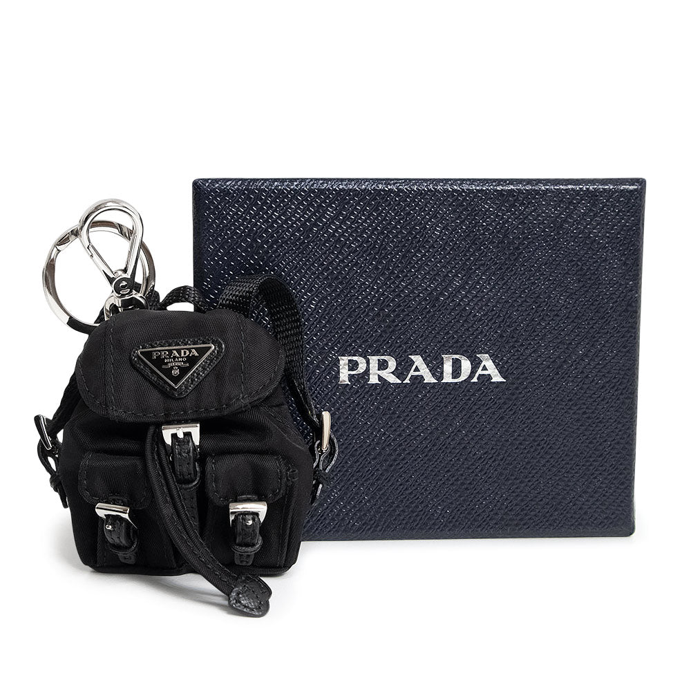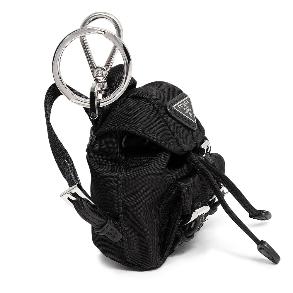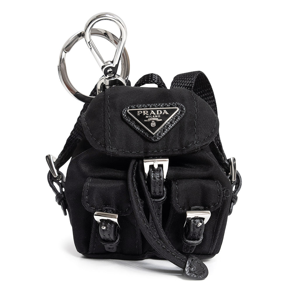 【未使用 展示品】PRADA プラダ 1ARD55 バックパック キーホルダー チャーム ナイロン ブラック シルバー金具 箱付