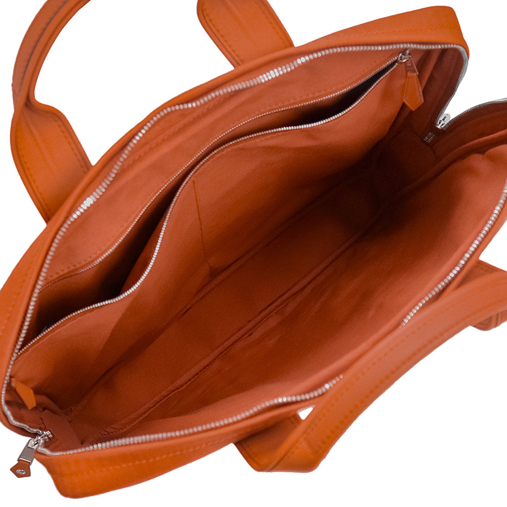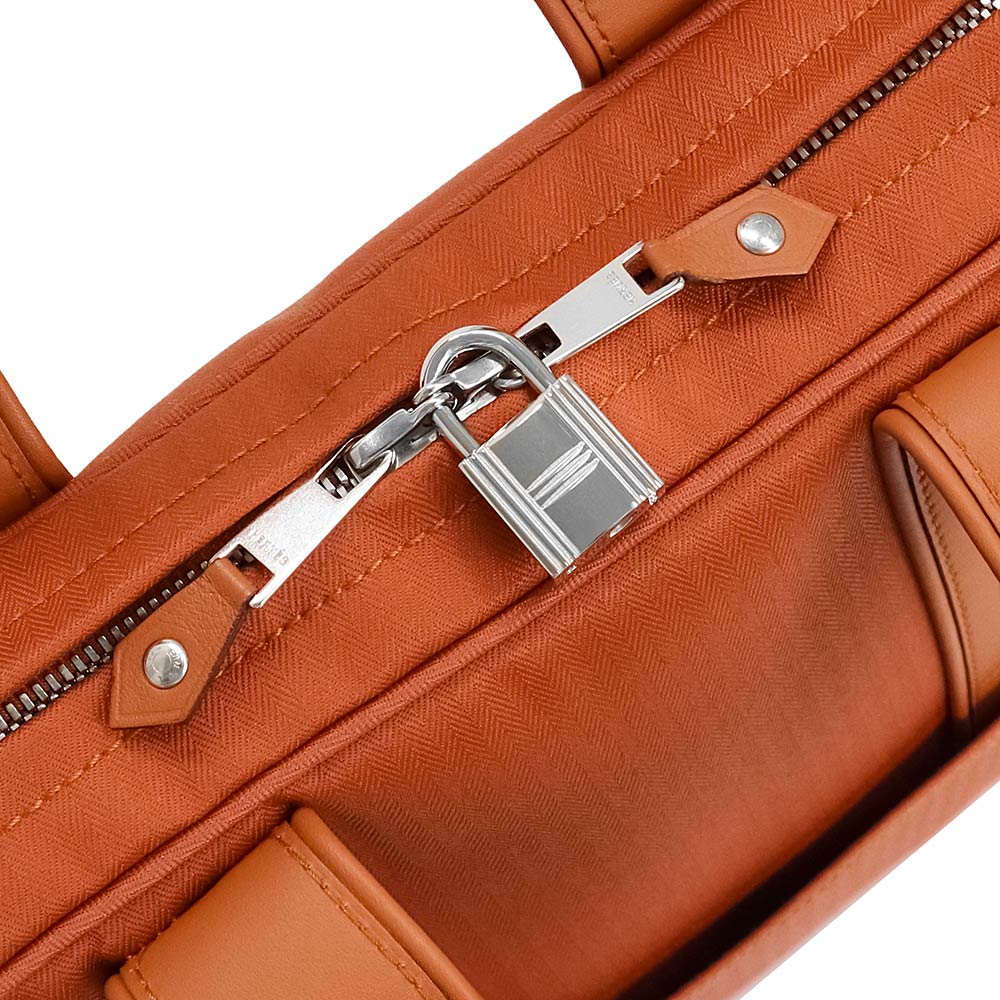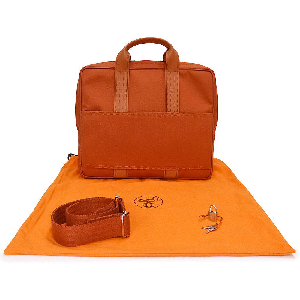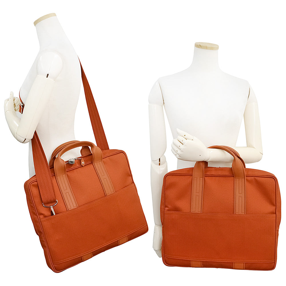 【未使用 展示品】エルメス HERMES アカプルコ オディナトゥール 2way ショルダー ビジネス ハンドバッグ 斜め掛け トワルシェブロン キャンバス カーフスキン レザー ブリック オレンジ シルバー金具