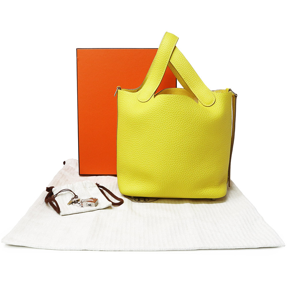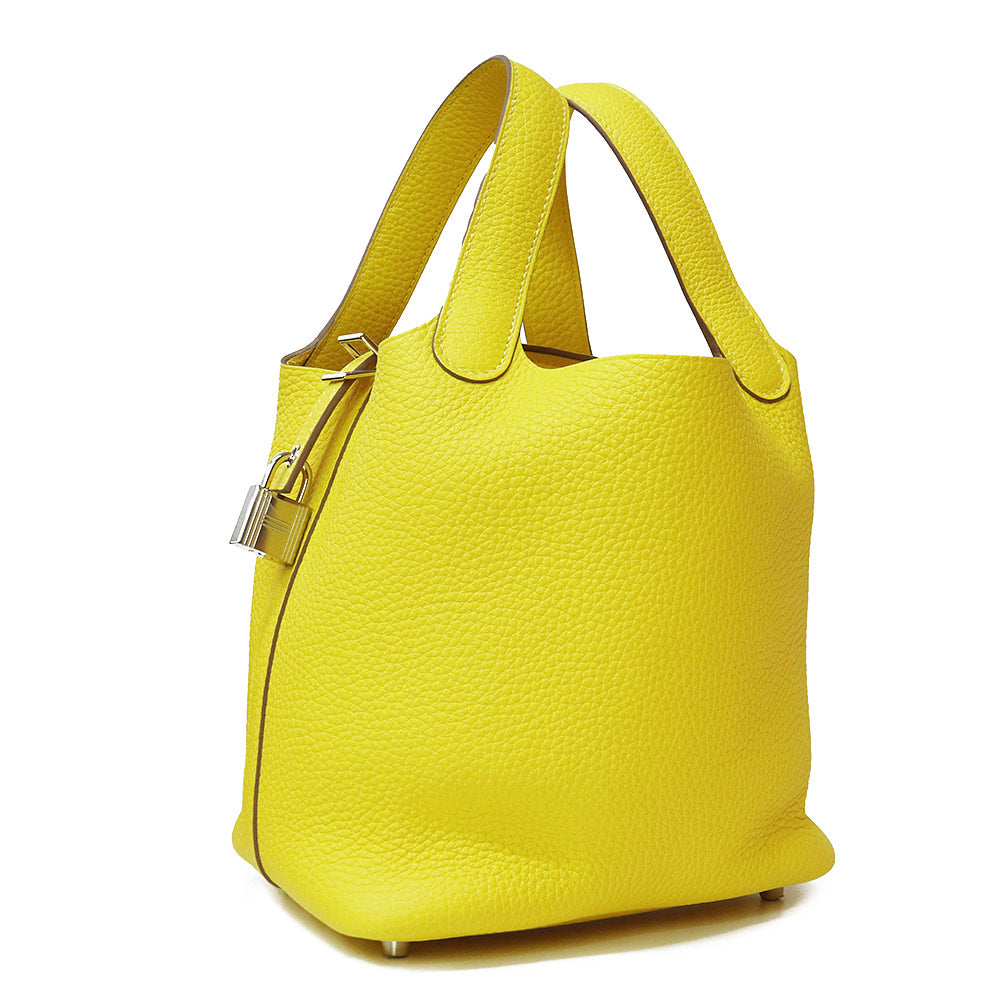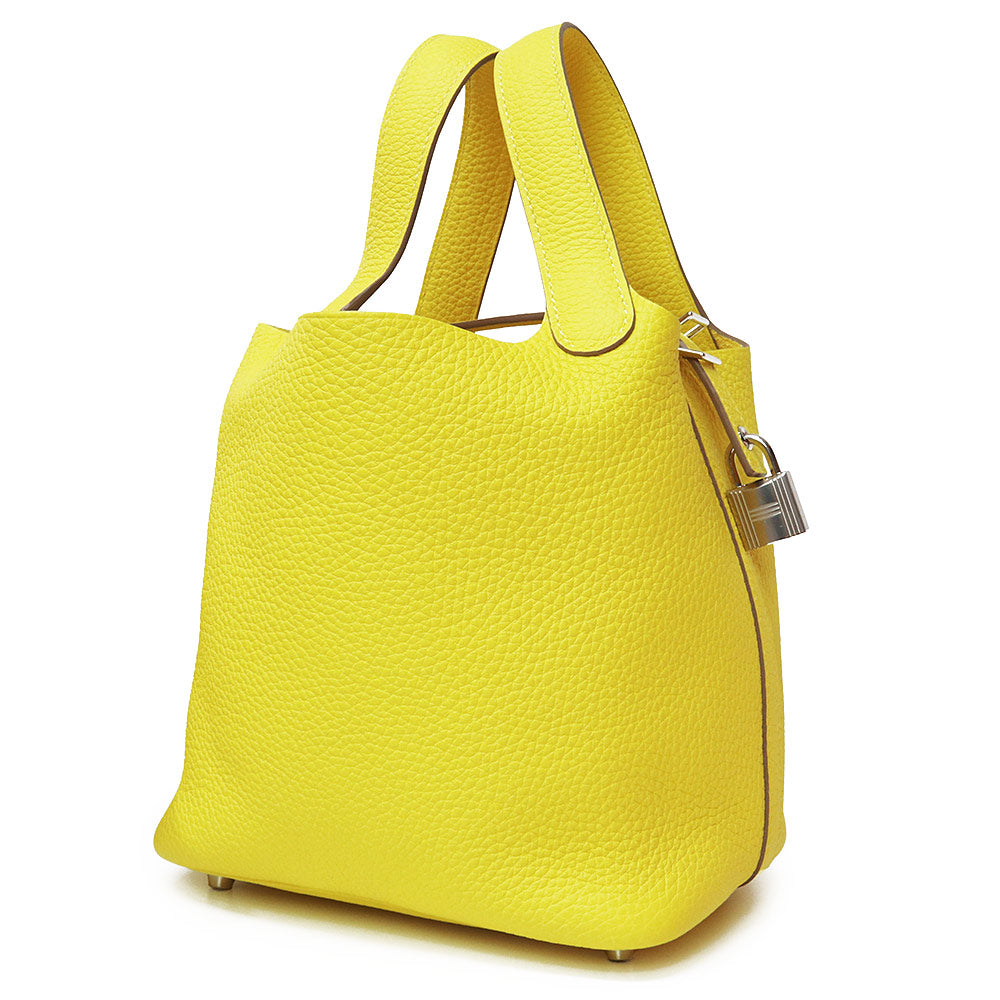 【未使用 展示品】エルメス HERMES ピコタンロック 18 PM ハンドバッグ トリヨンクレマンス レザー ライム イエロー シルバー金具 U刻印