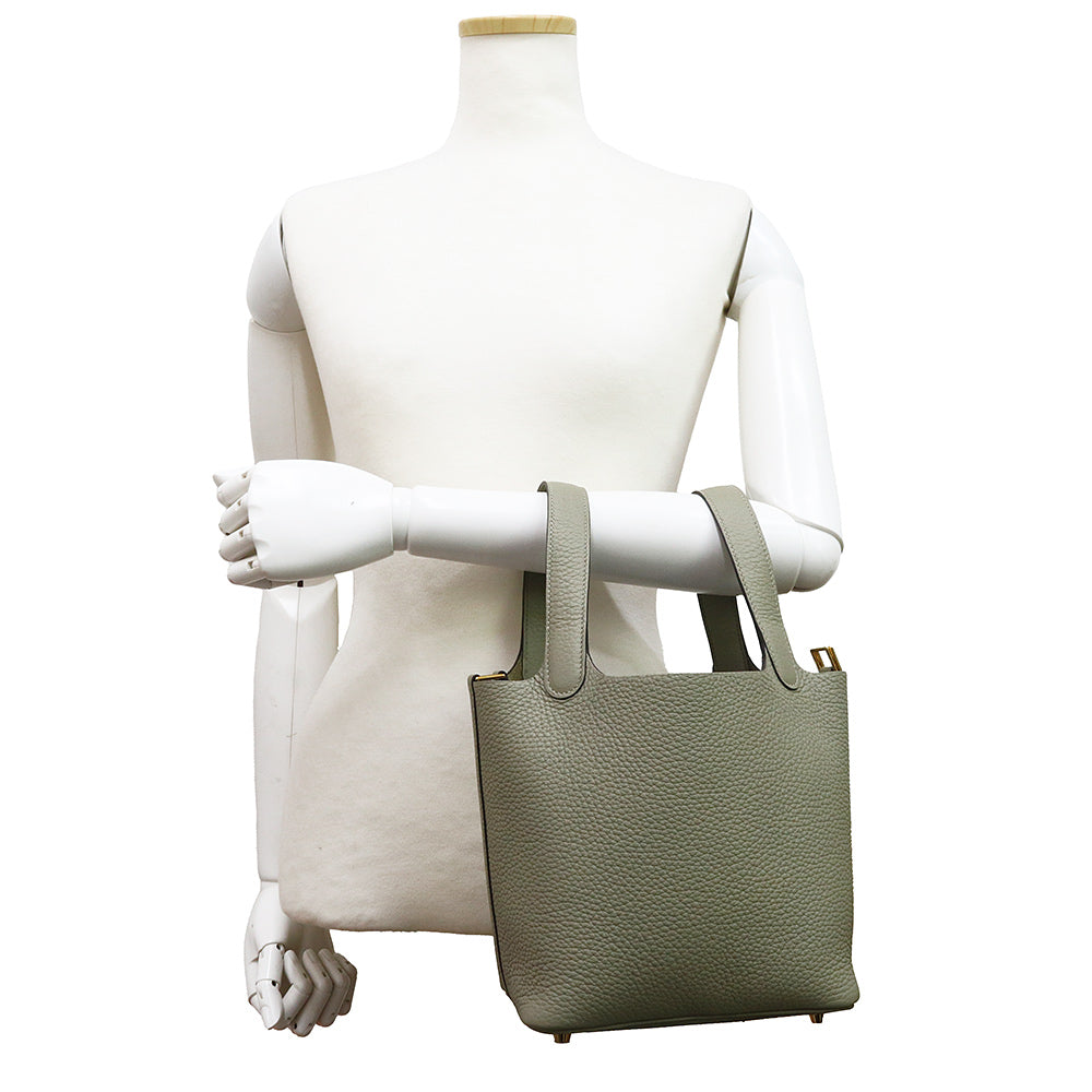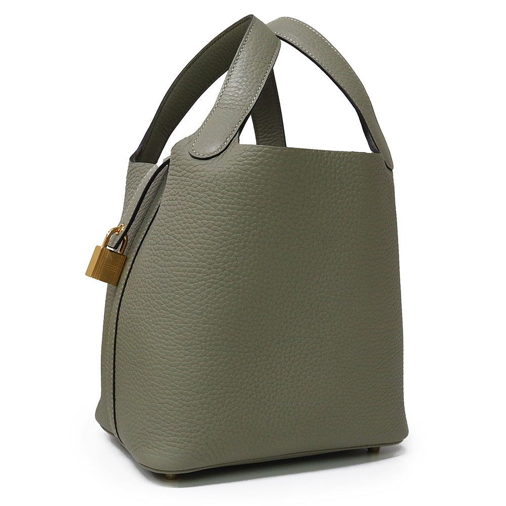 【新品・未使用品】エルメス HERMES ピコタンロック 18 PM ハンドバッグ トリヨンクレマンス レザー セージ ソーゼ グリーン ゴールド金具 B刻印 箱付
