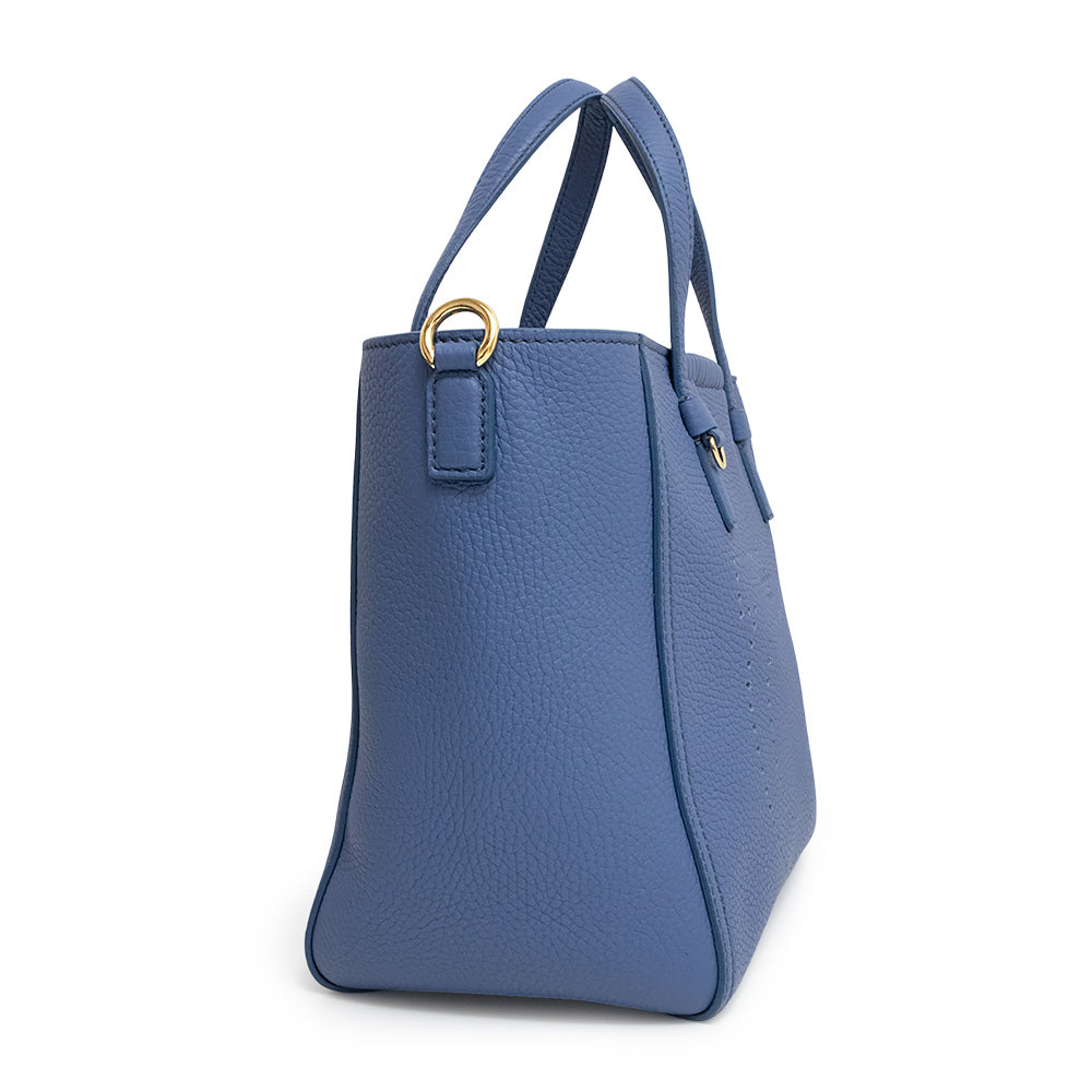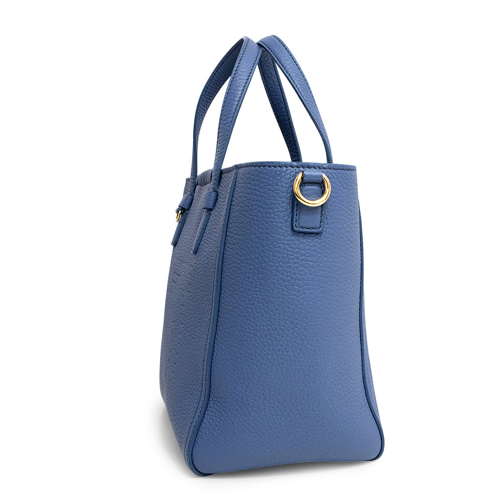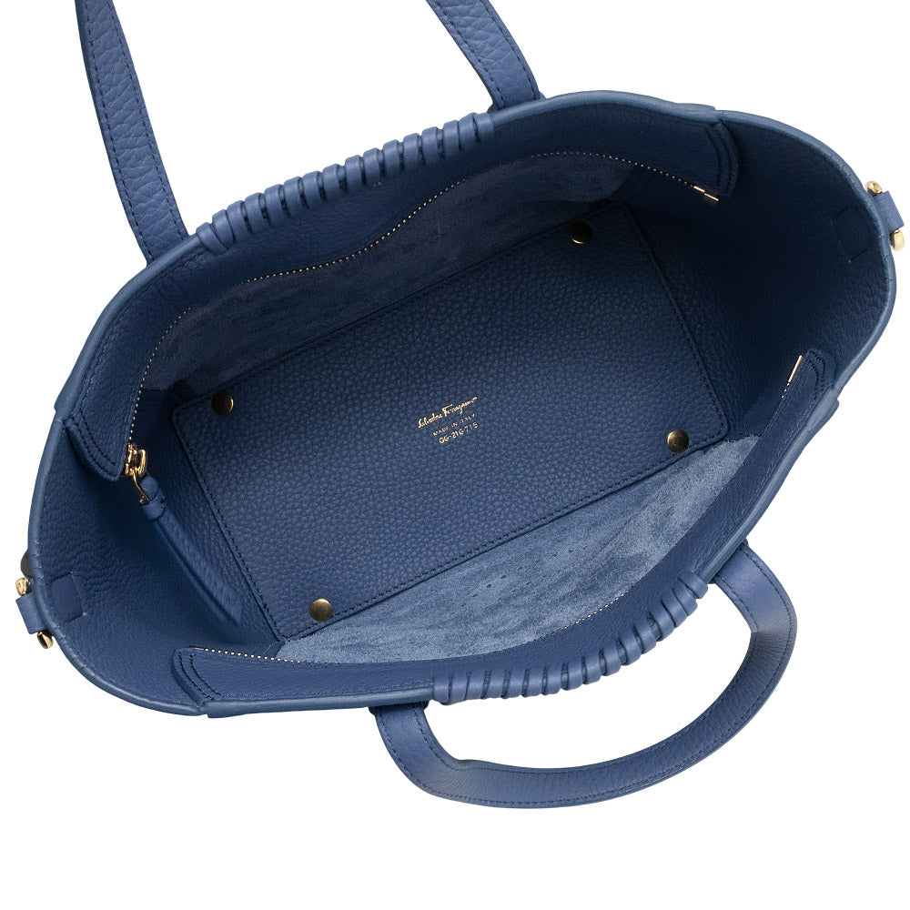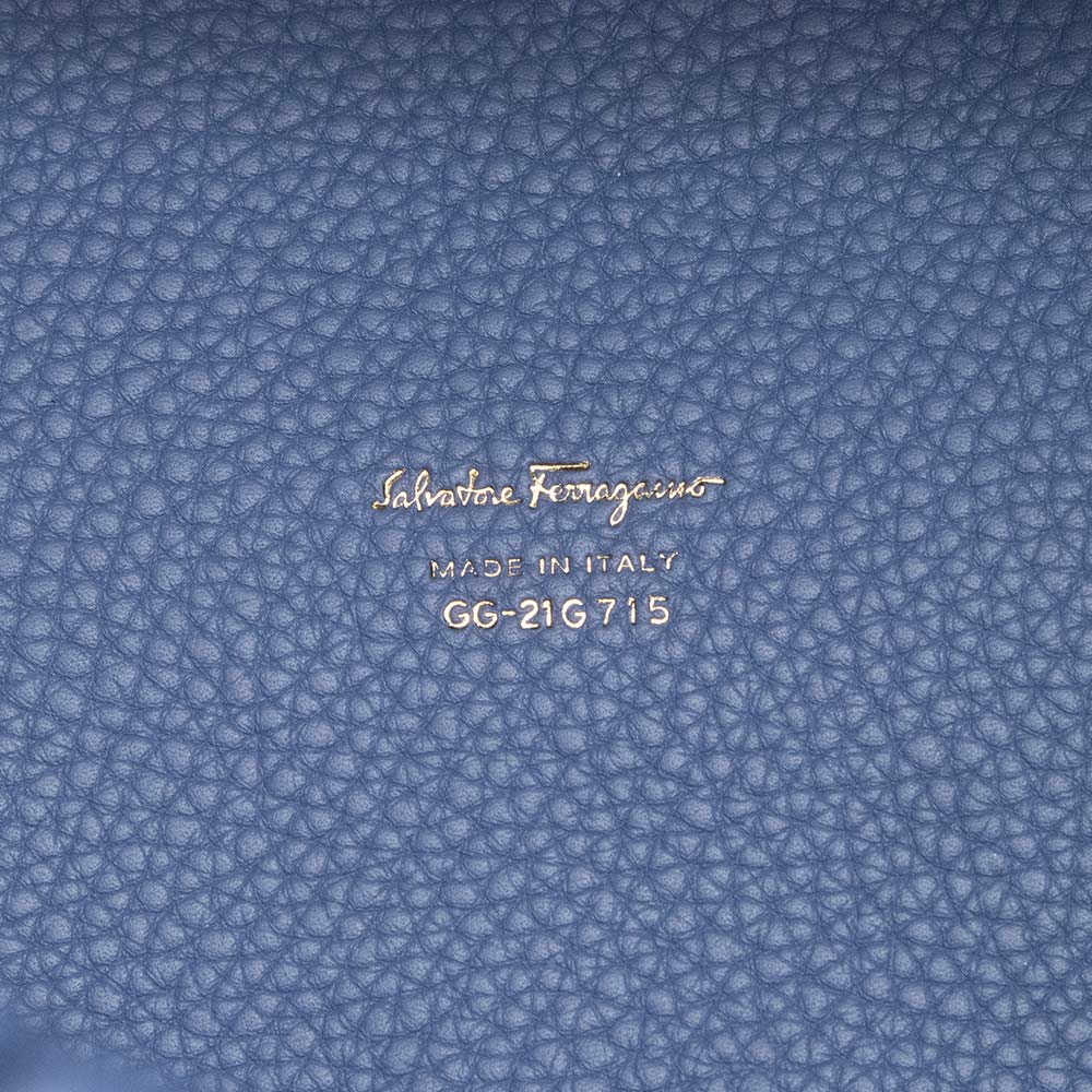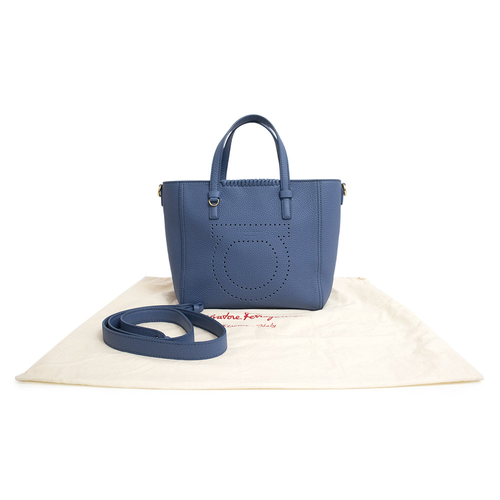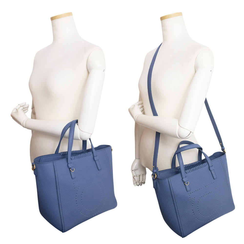 【未使用 展示品】サルヴァトーレフェラガモ Salvatore Ferragamo マルタ ガンチーニ パーフォレーション トート 2Way 斜め掛け ショルダー ハンドバッグ グレインカーフレザー BLUE STONE ブルーストーン ゴールド金具 GG-21G715