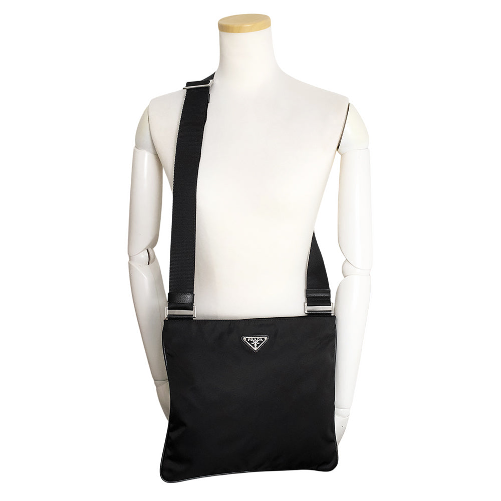 【未使用 展示品】プラダ PRADA トライアングル 三角ロゴ プレート ショルダーバッグ 斜め掛け ナイロン レザー ネロ ブラック シルバー金具 VA0053