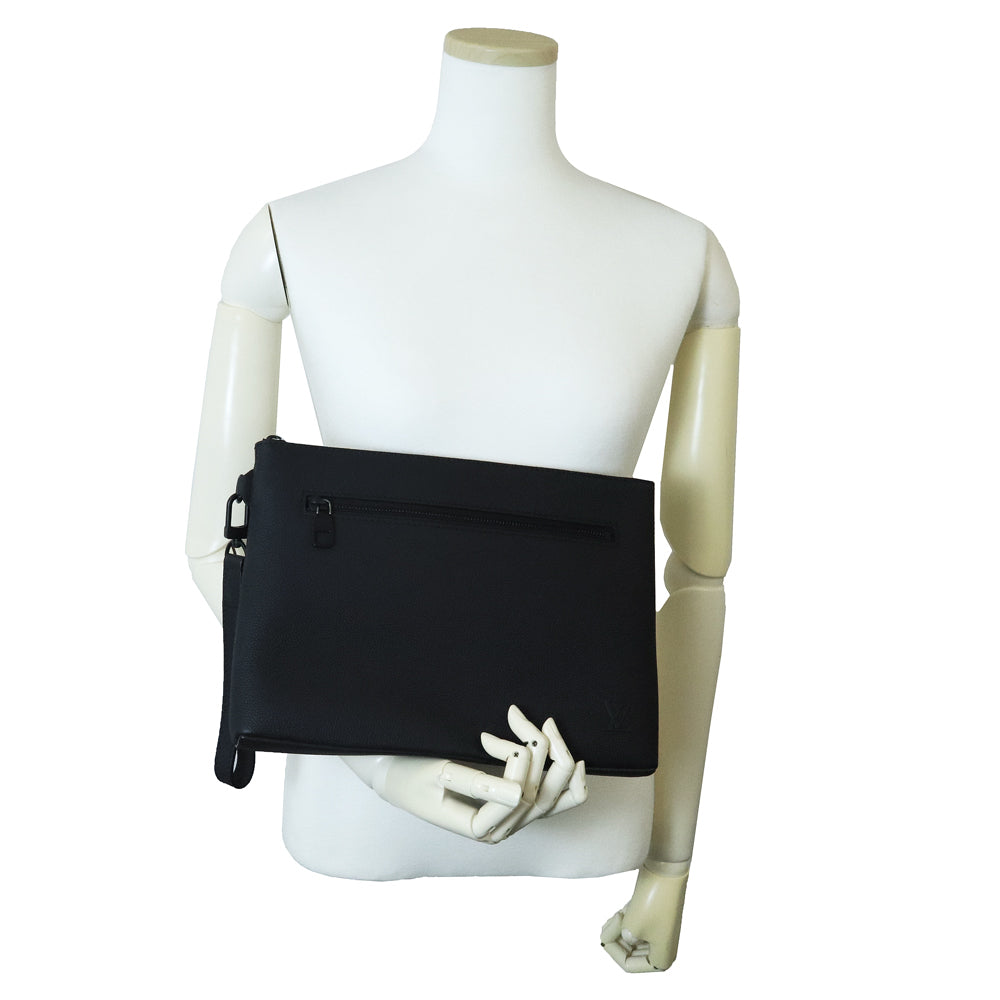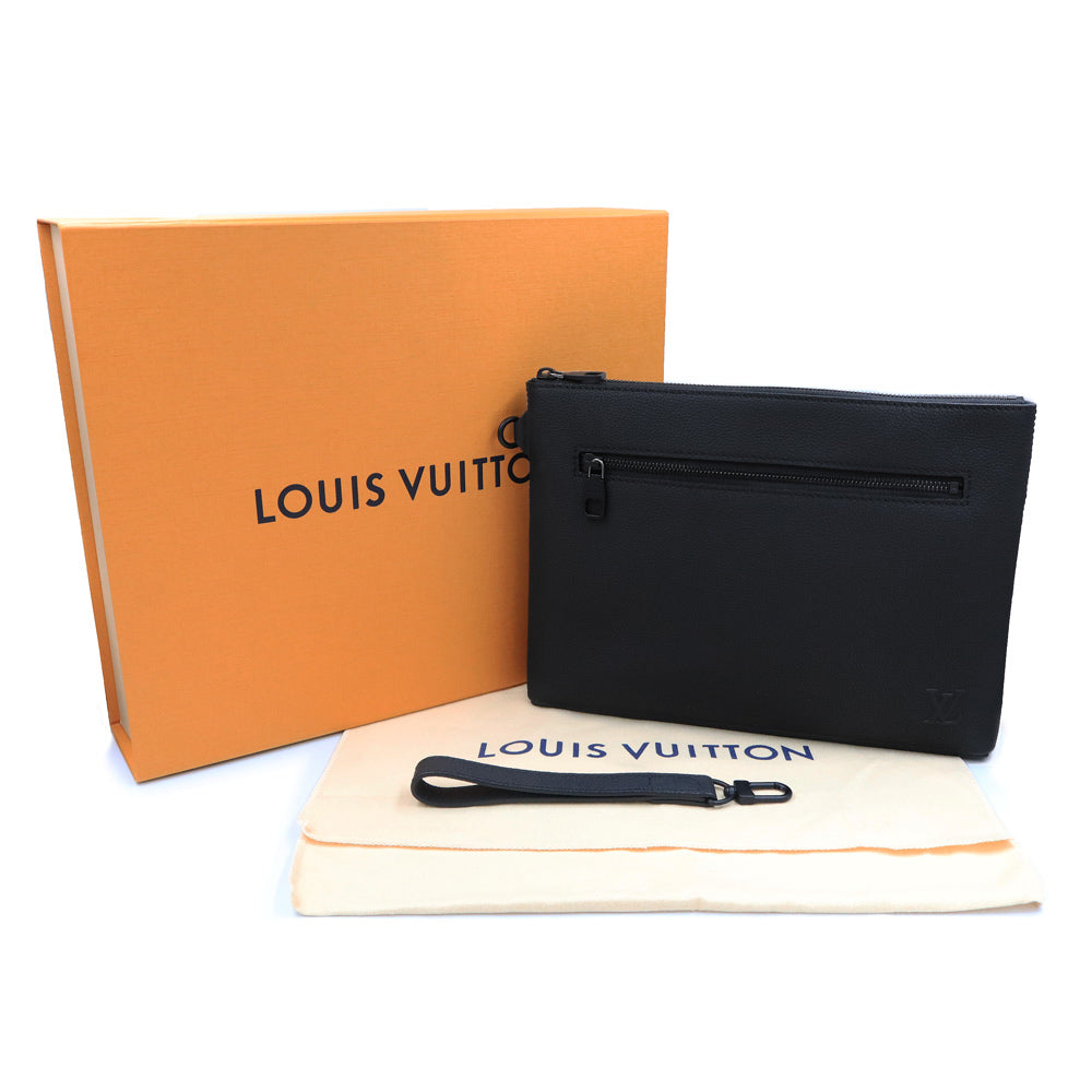 【未使用 展示品】ルイ ヴィトン LOUIS VUITTON テイクオフ ポーチ アエログラム セカンド クラッチバッグ ワクシーカーフレザー ブラック ブラック金具 M25955 箱付