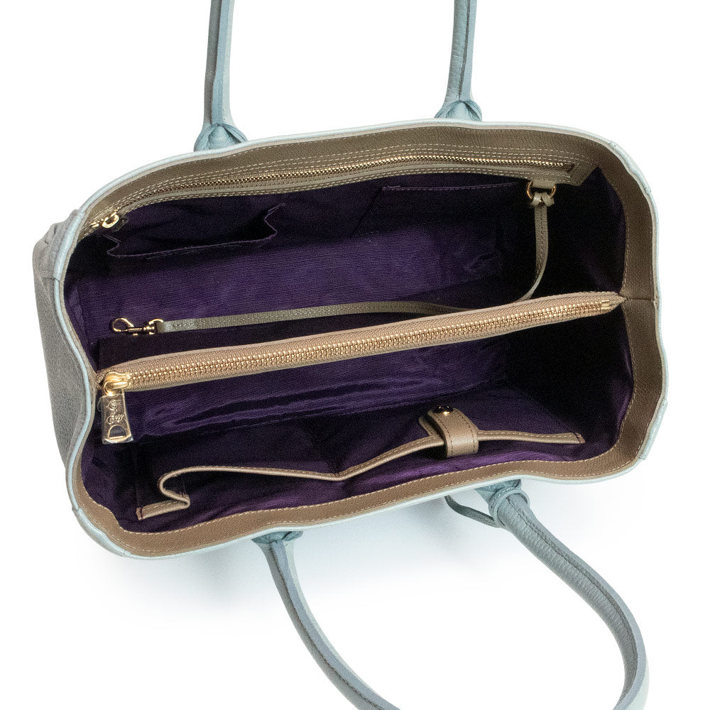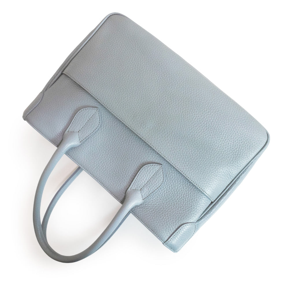 【未使用 展示品】エーディーエムジェーアクセソワドゥマドモワゼル A.D.M.J. -Accesoires De Mademoiselle- トート ハンドバッグ シュリンクレザー ブルーグレー ゴールド金具