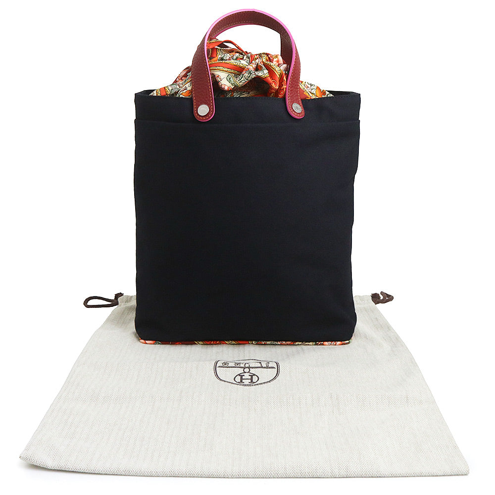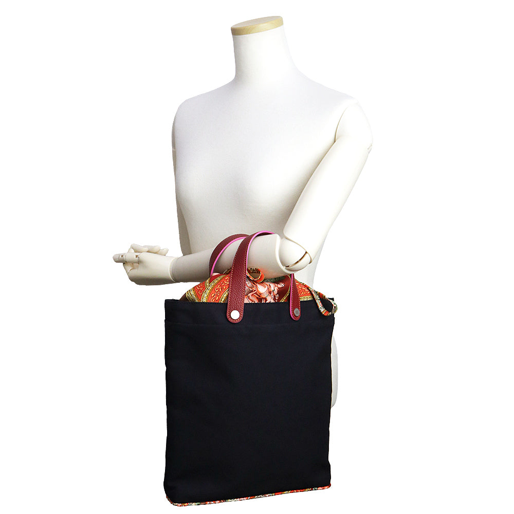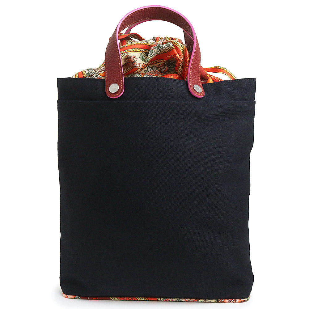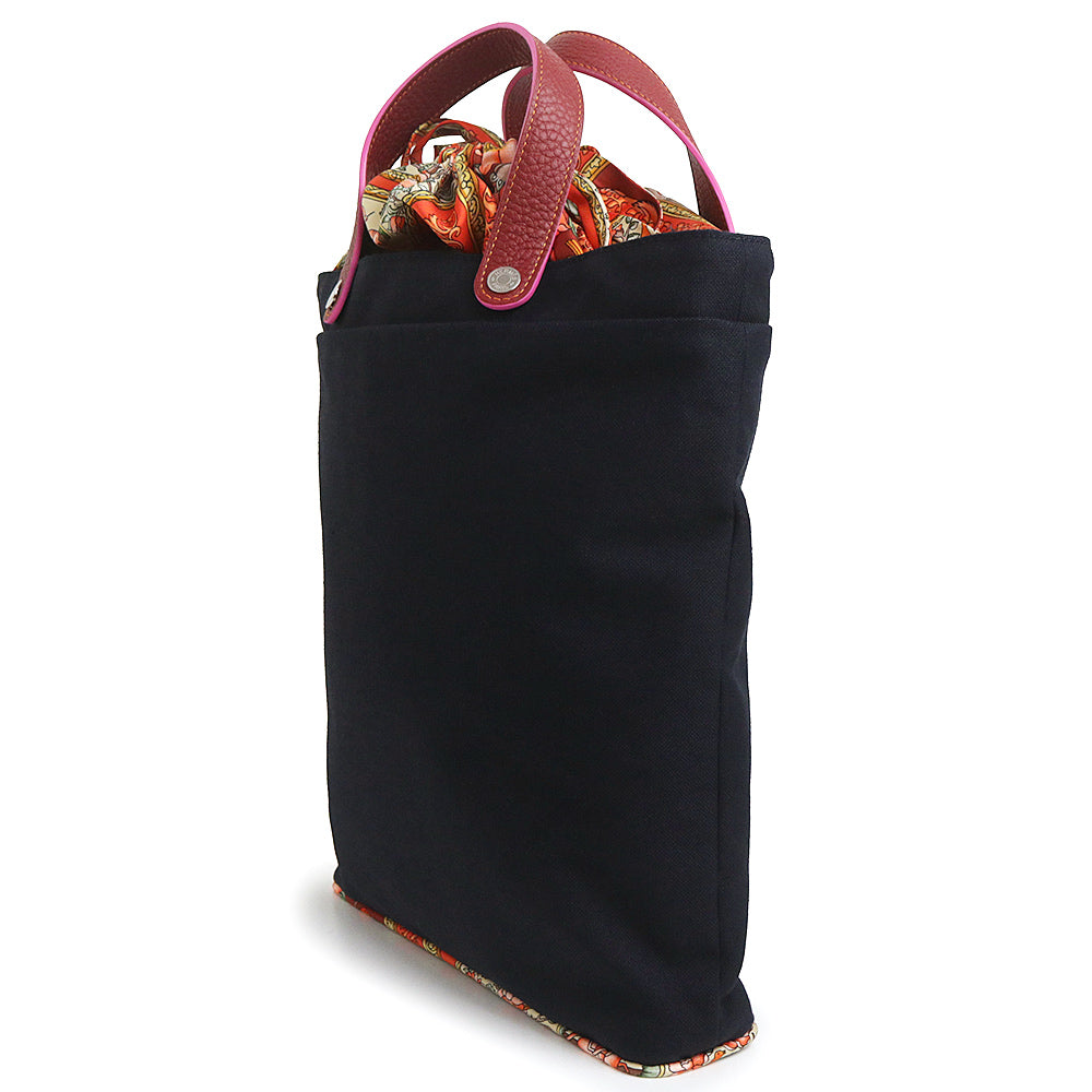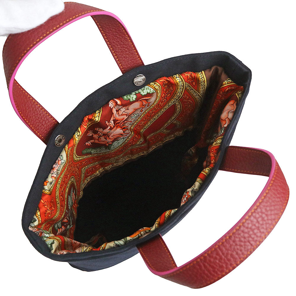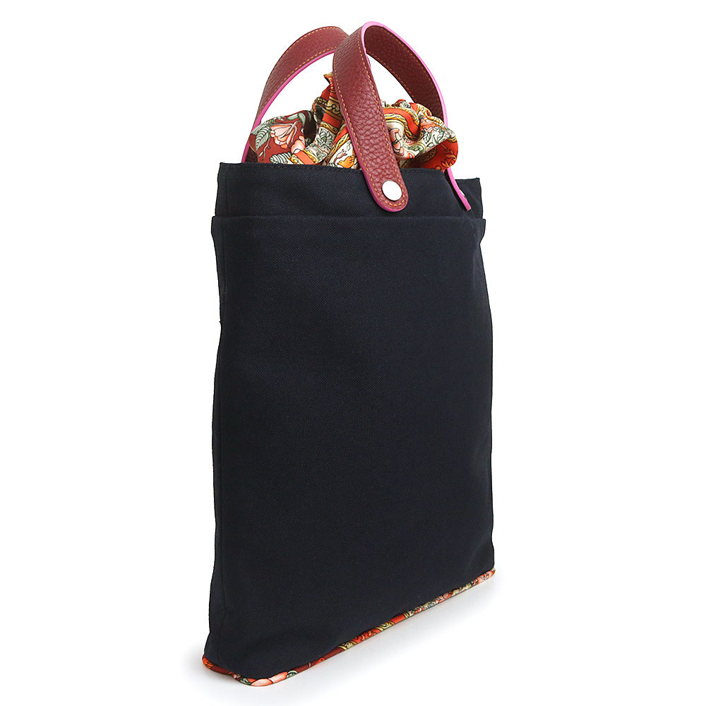 【未使用 展示品】エルメス HERMES プティアッシュ サックドトワル トート ハンドバッグ トワルアッシュ キャンバス トリヨンクレマンス レザー シルク100% ネイビー ボルドー シルバー金具