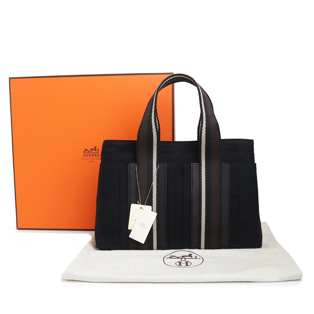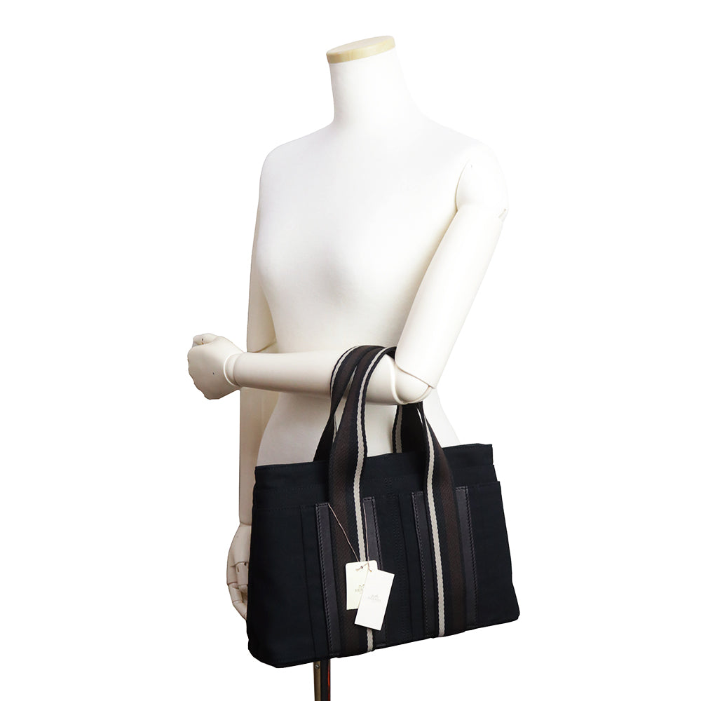 【未使用保管品】エルメス HERMES トロカ ホリゾンタル PM トート ハンドバッグ キャンバス カーフスキン レザー ノワール ブラック ブラウン シルバー金具