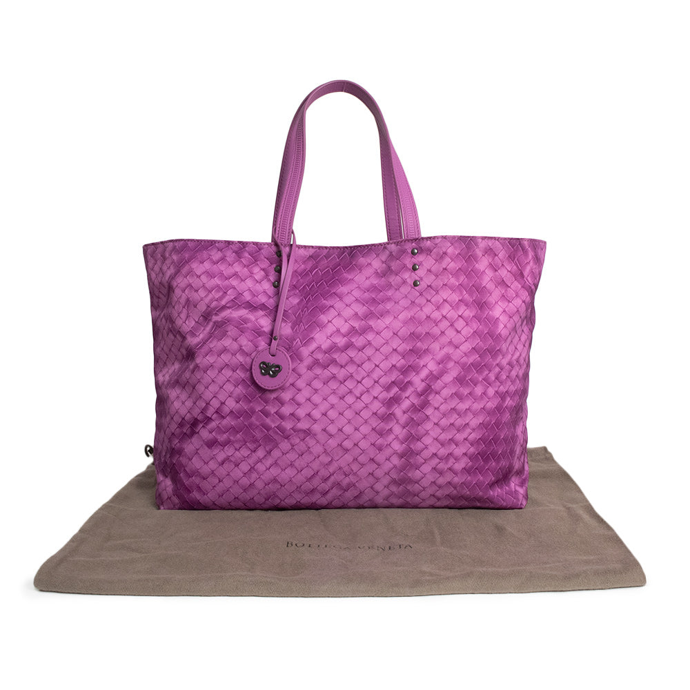 【未使用保管品】ボッテガヴェネタ BOTTEGA VENETA イントレッチオリュージョン トートバッグ ナイロン レザー パープル ガンメタル金具 299875