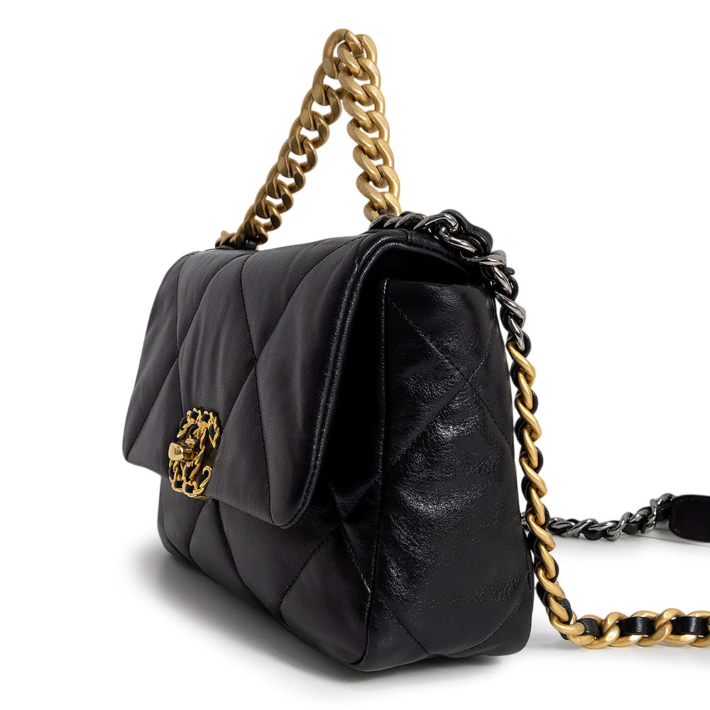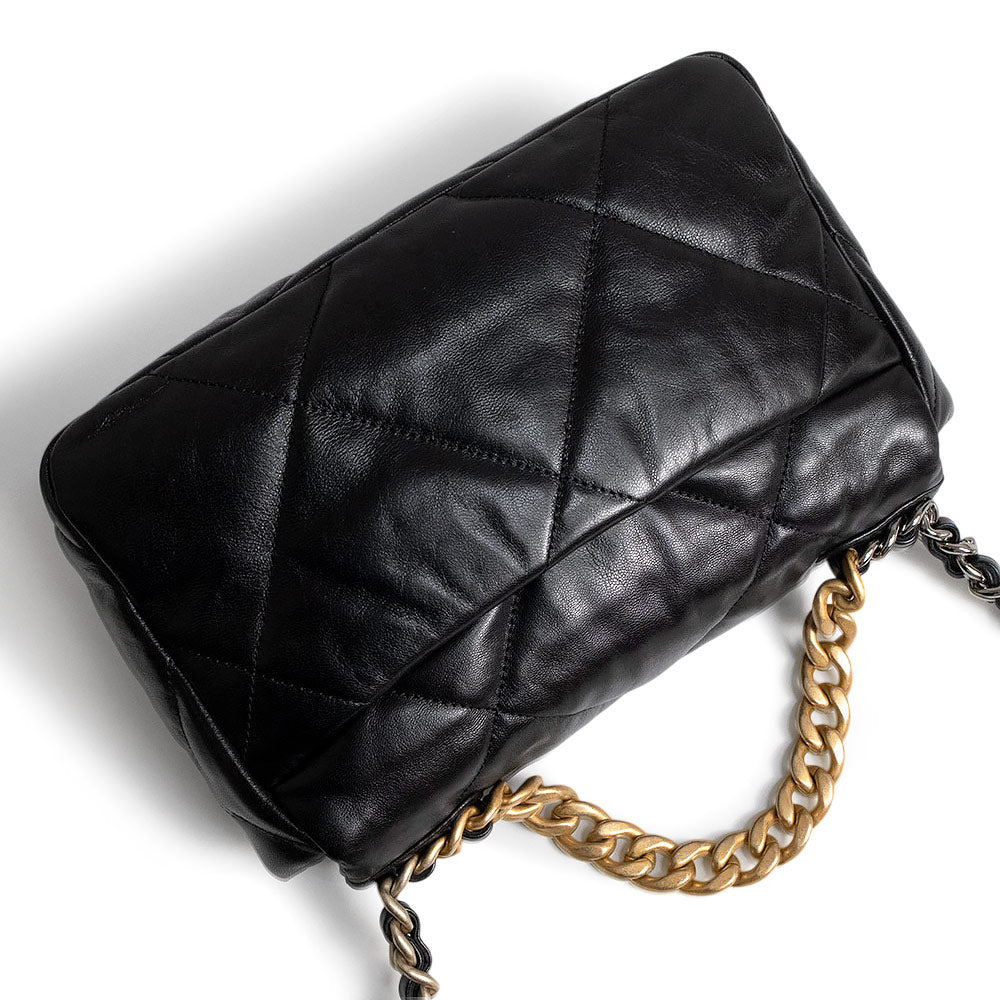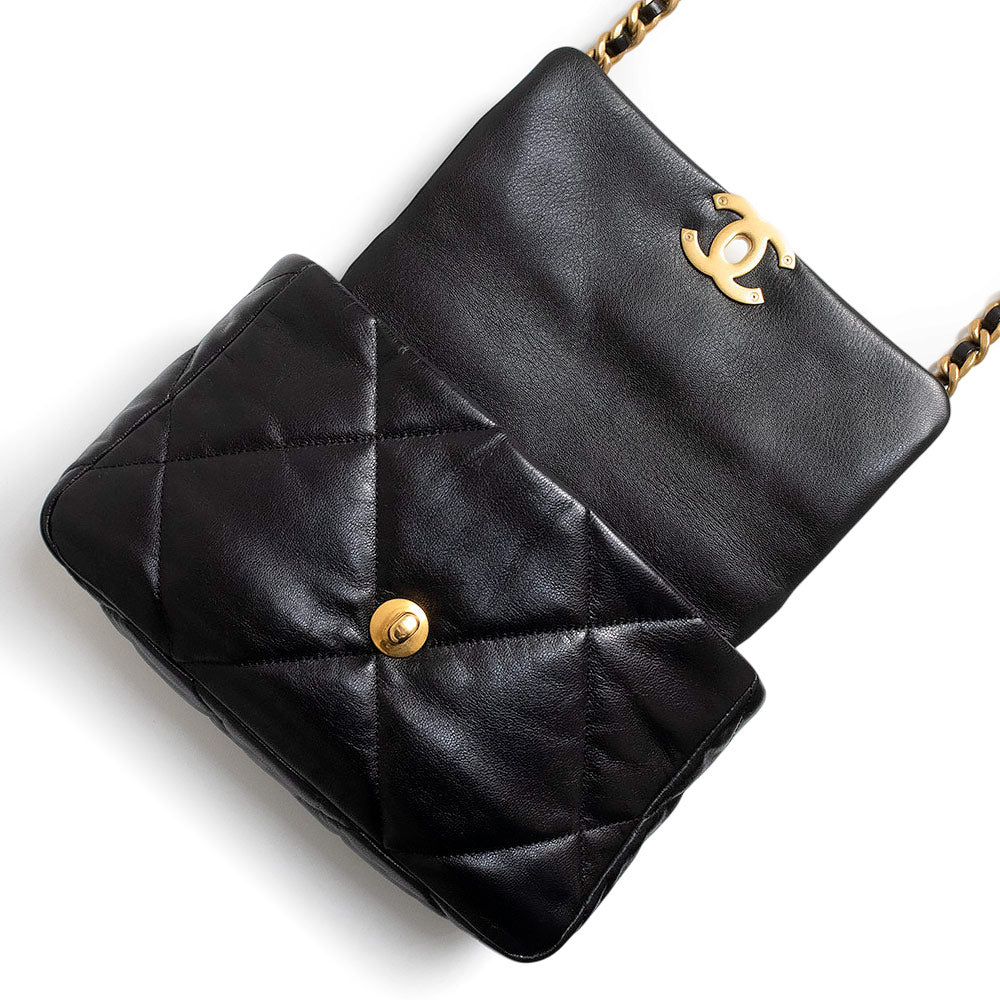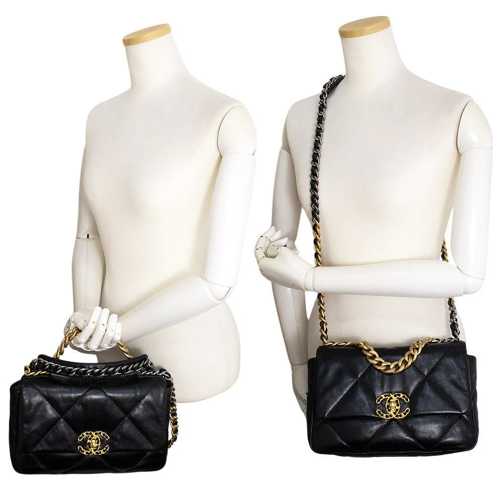 【未使用 展示品】シャネル CHANEL 19 ナインティーン ココマーク マトラッセ チェーン 2Way ショルダー ハンドバッグ 斜め掛け シャイニーラムスキン レザー ブラック アンティークゴールド アンティークシルバー金具 AS1160