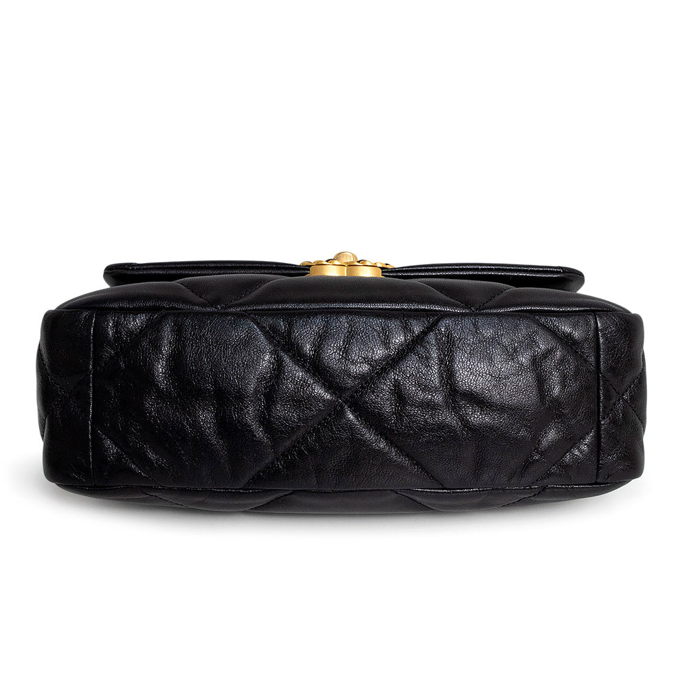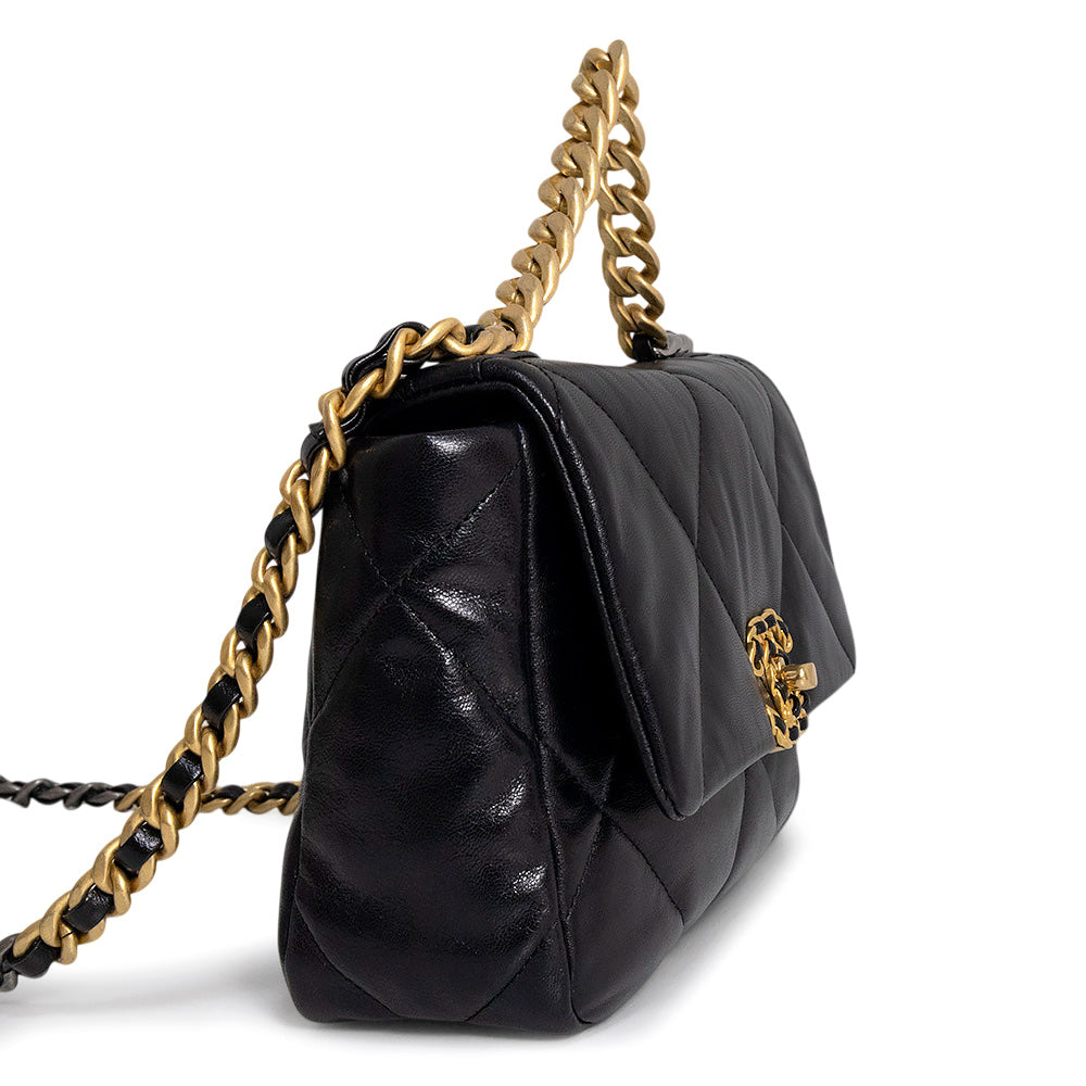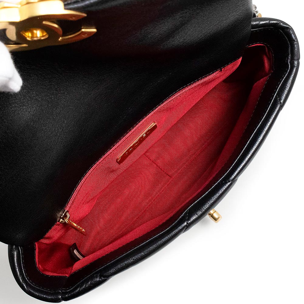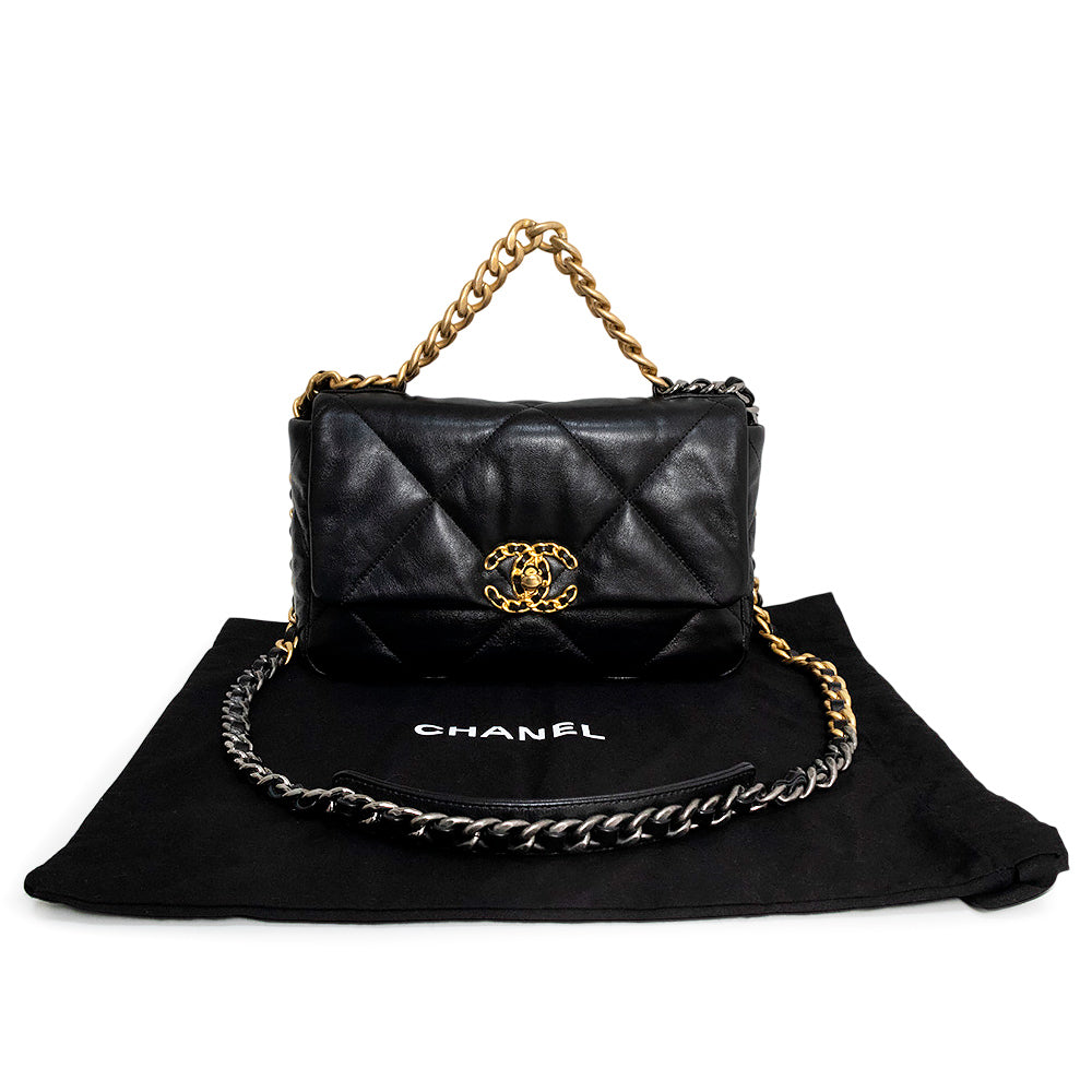 【未使用 展示品】シャネル CHANEL 19 ナインティーン ココマーク マトラッセ チェーン 2Way ショルダー ハンドバッグ 斜め掛け シャイニーラムスキン レザー ブラック アンティークゴールド アンティークシルバー金具 AS1160