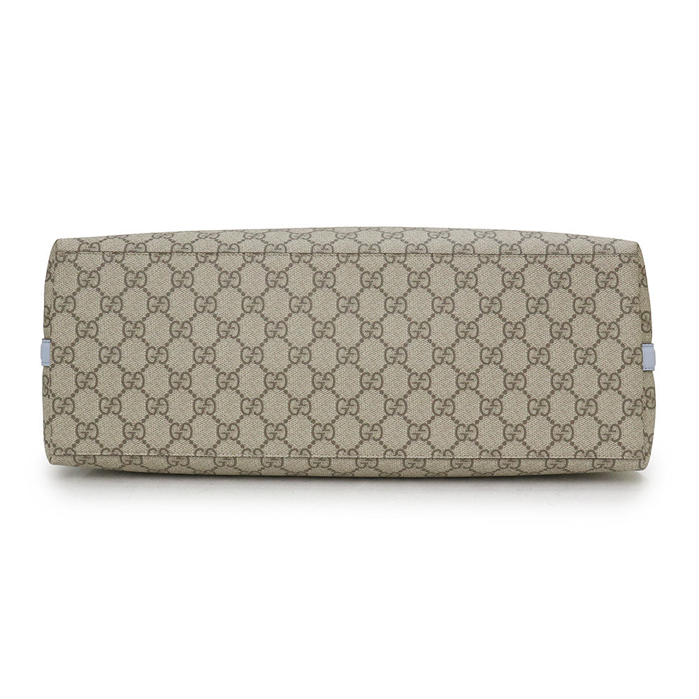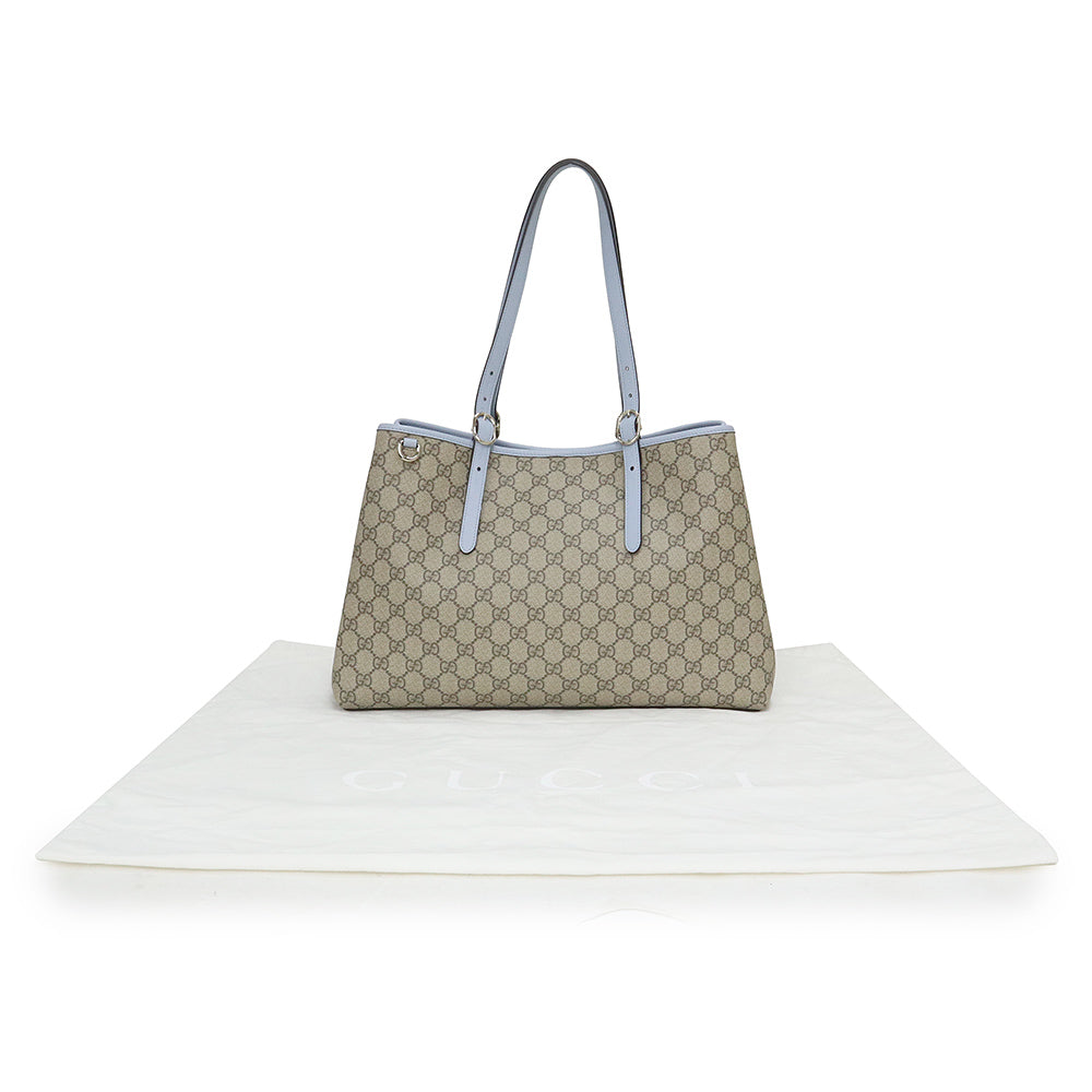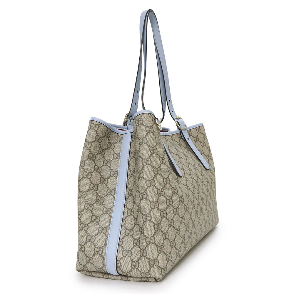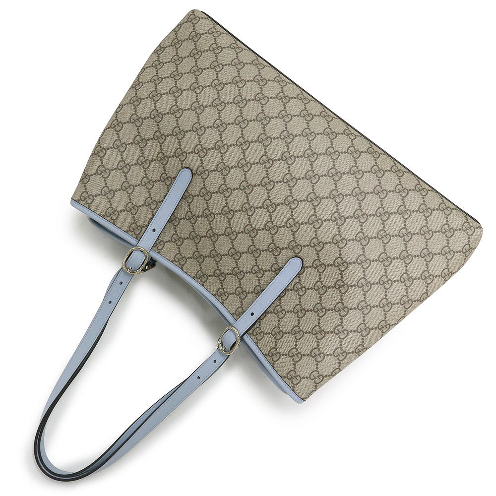【未使用 展示品】グッチ GUCCI GGエンブレム ラージ トートバッグ GGスプリームキャンバス レザー ベージュ ライトブルー ライトゴールド金具 815213