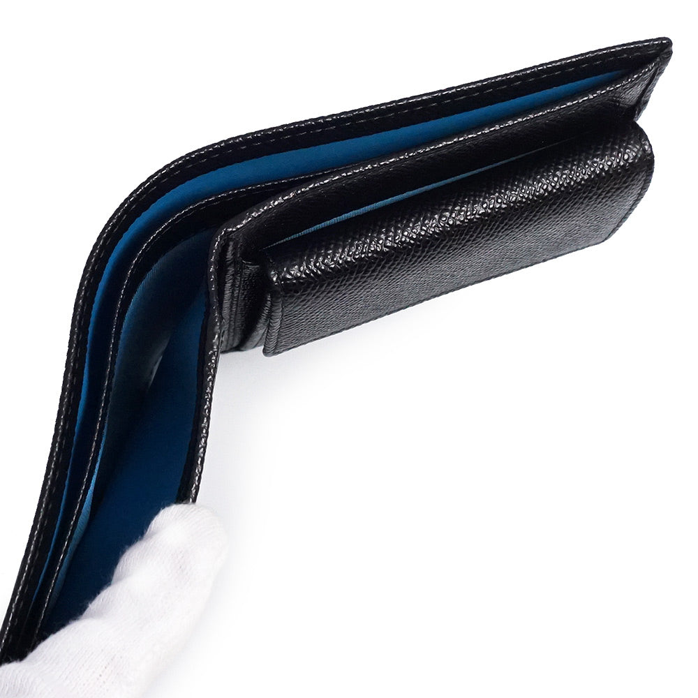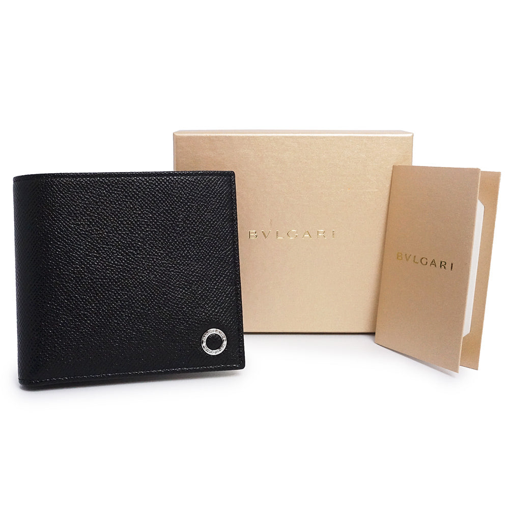 【新品・未使用品】BVLGARI ブルガリ 30396 ブルガリ ブルガリ マン 二つ折り財布 グレインカーフレザー ブラック ブルー シルバー金具