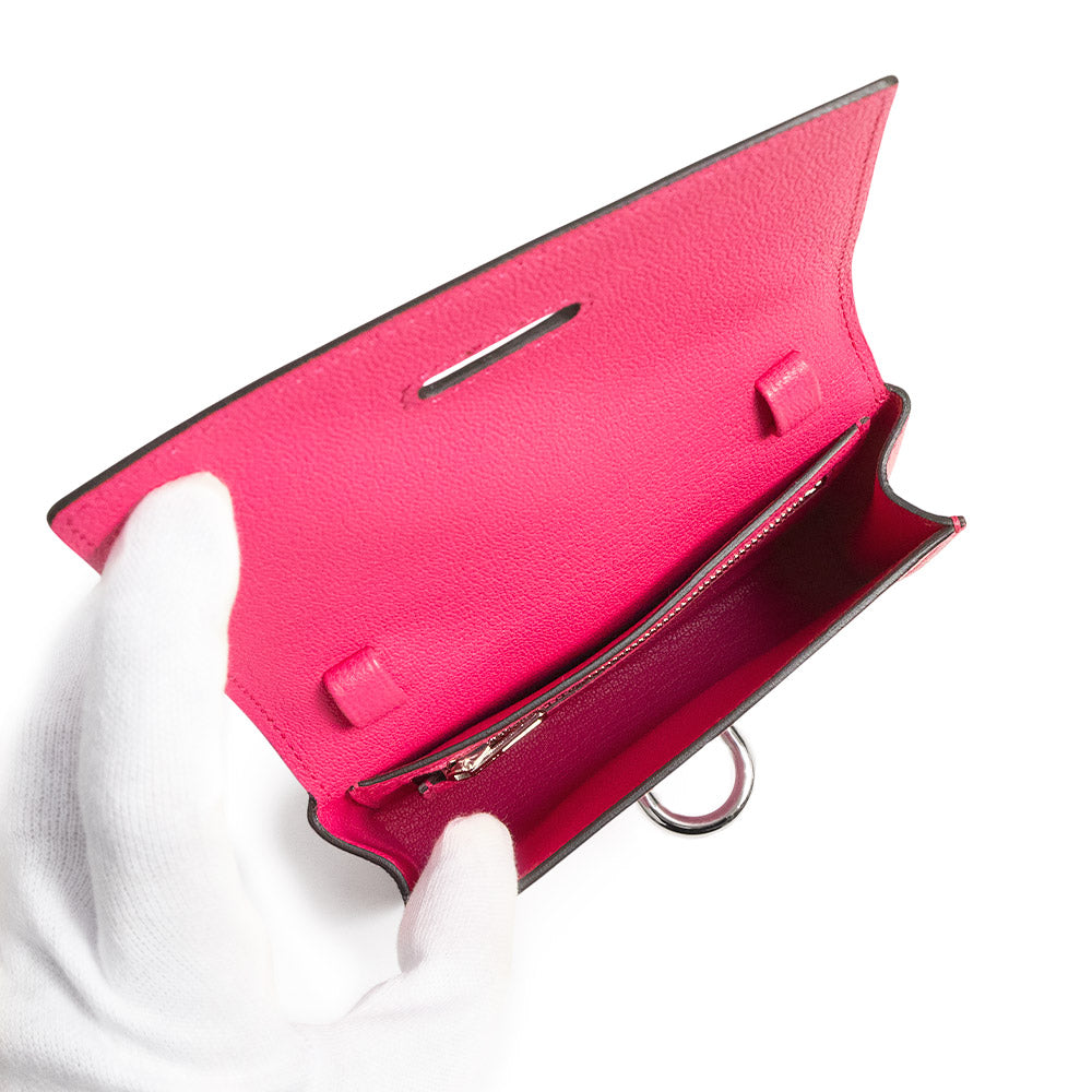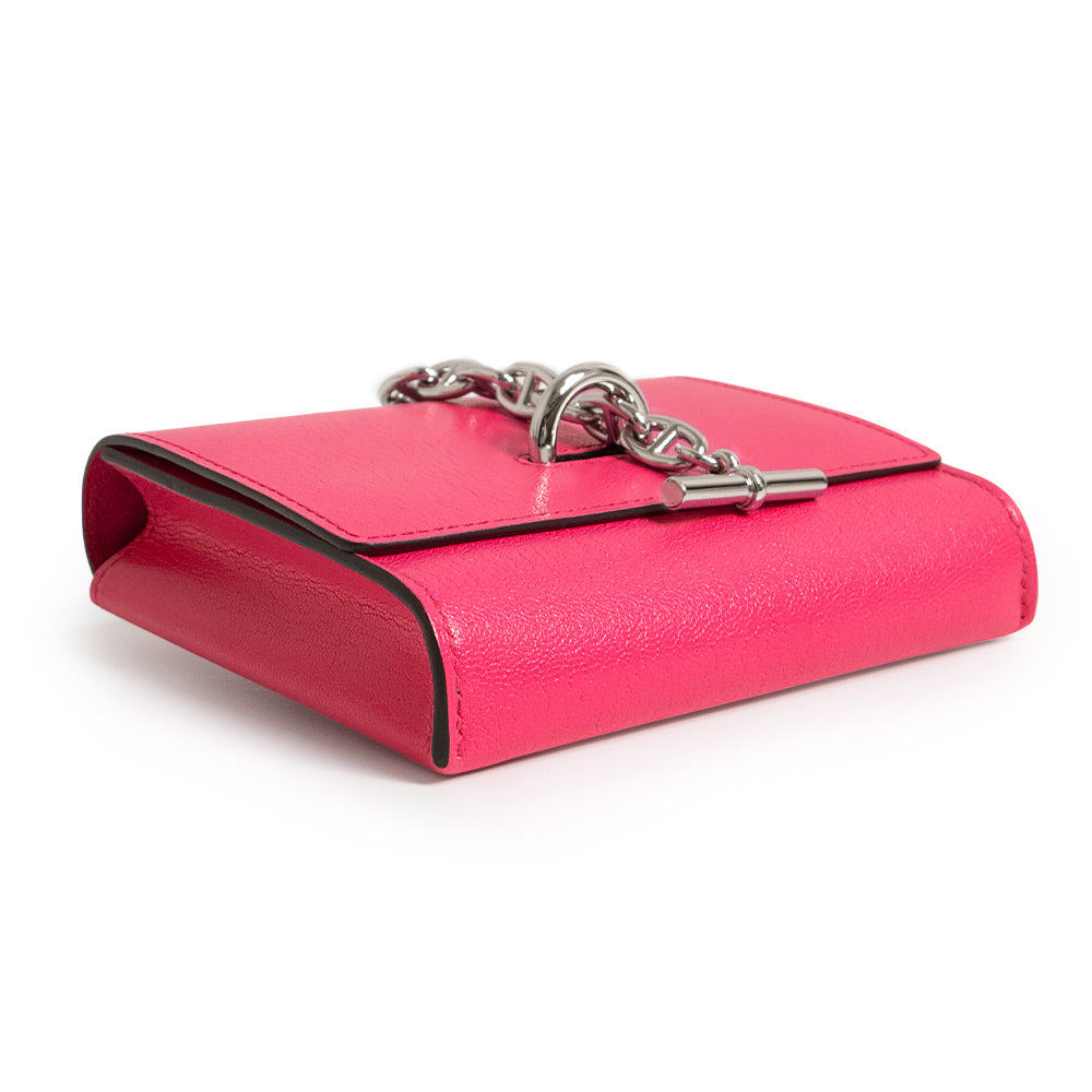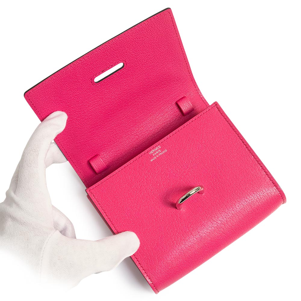 【新品・未使用品】HERMES エルメス シェーヌダンクル シェーブルミゾール ローズショッキング K刻印 コンパクト ウォレット 二つ折り財布 シェブル レザー シルバー金具 箱付