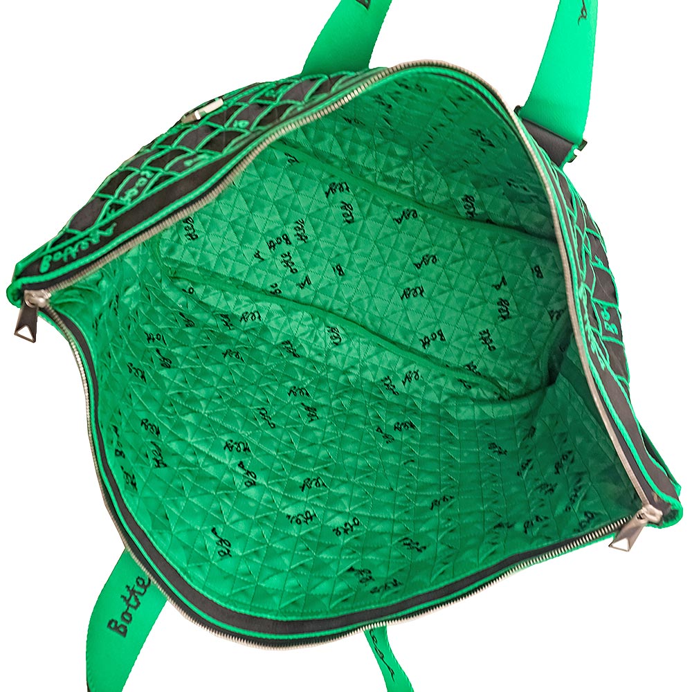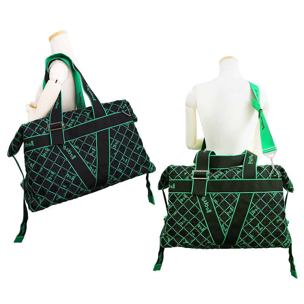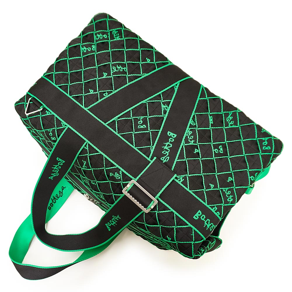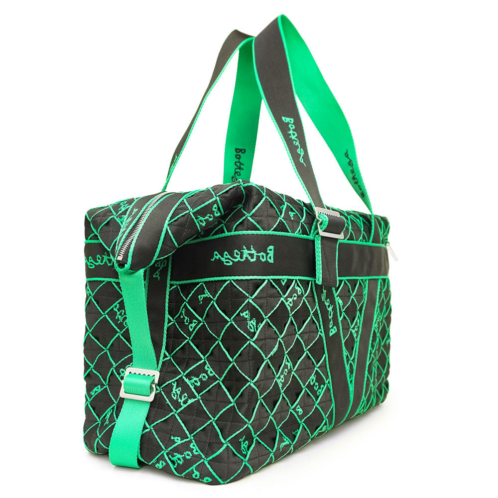 【新品・未使用品】ボッテガヴェネタ BOTTEGA VENETA ライトウェビング イントレチャート 2way ショルダー 斜め掛け トラベル ボストンバッグ ポリアミド ブラック パラキート グリーン 黒 緑 シルバー金具 679970