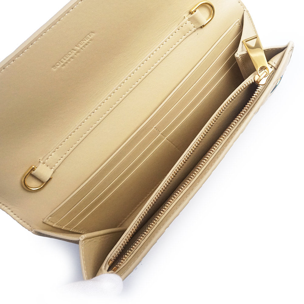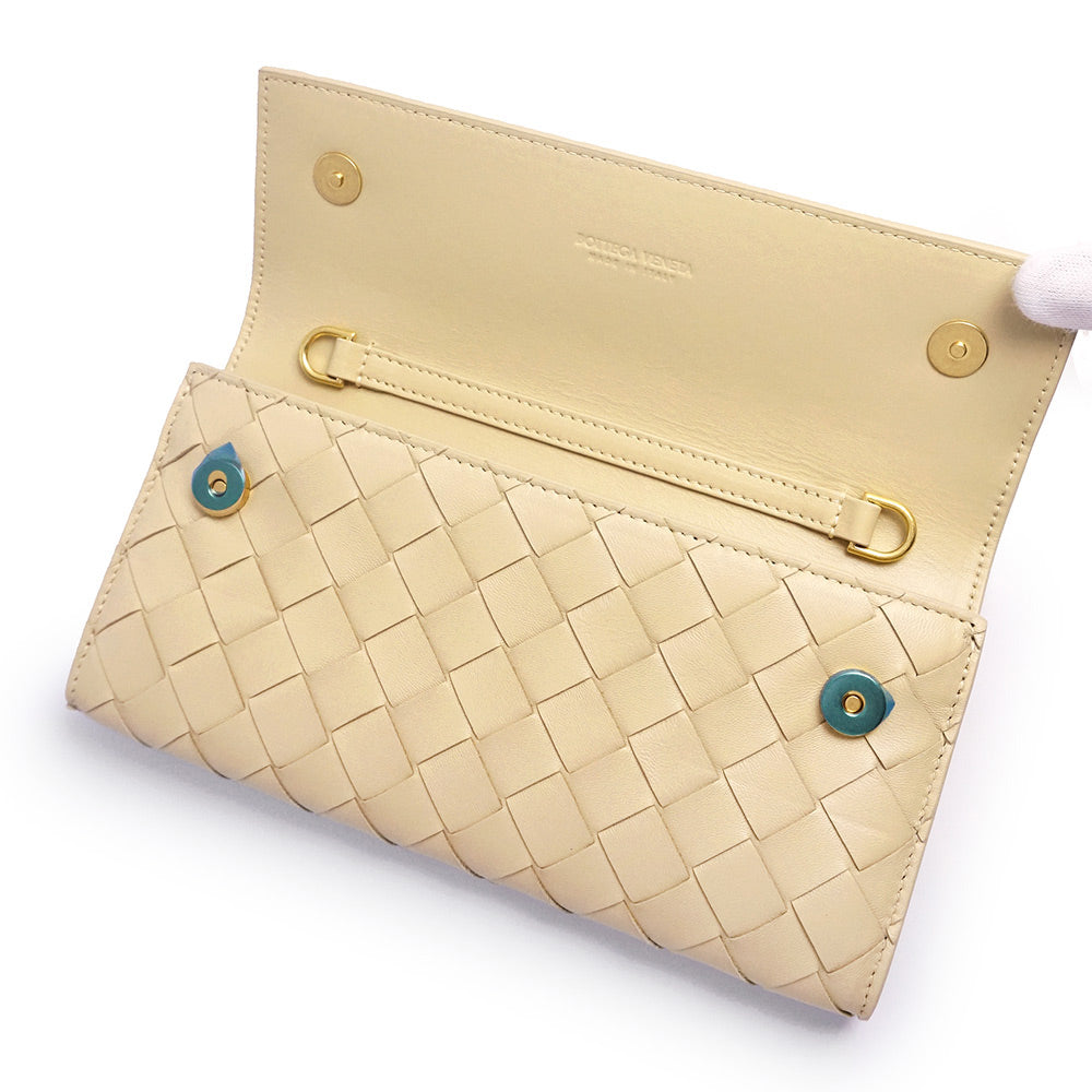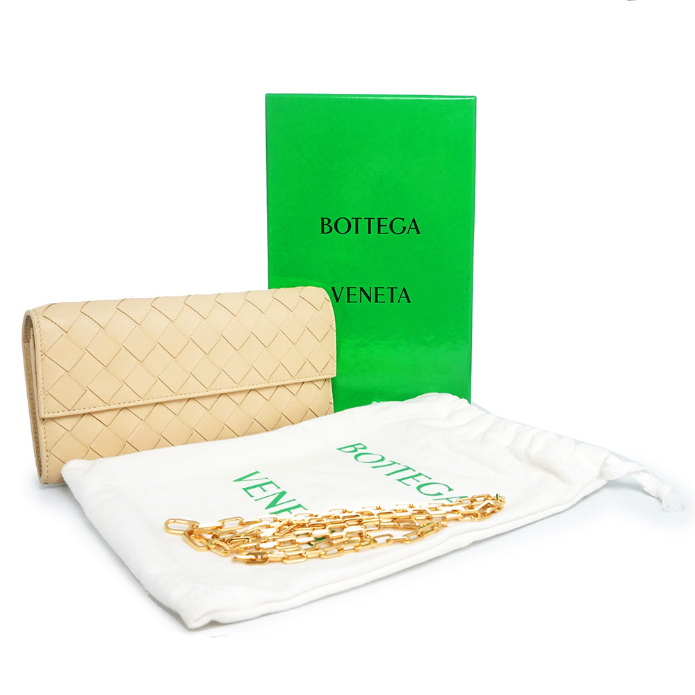 【新品・未使用品】ボッテガヴェネタ BOTTEGA VENETA イントレチャート 二つ折り長財布 チェーンウォレット 斜め掛け 財布 カーフスキン レザー ポリッジ ベージュ ゴールド金具 730568 箱付