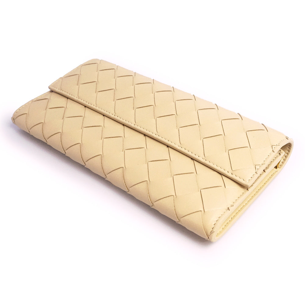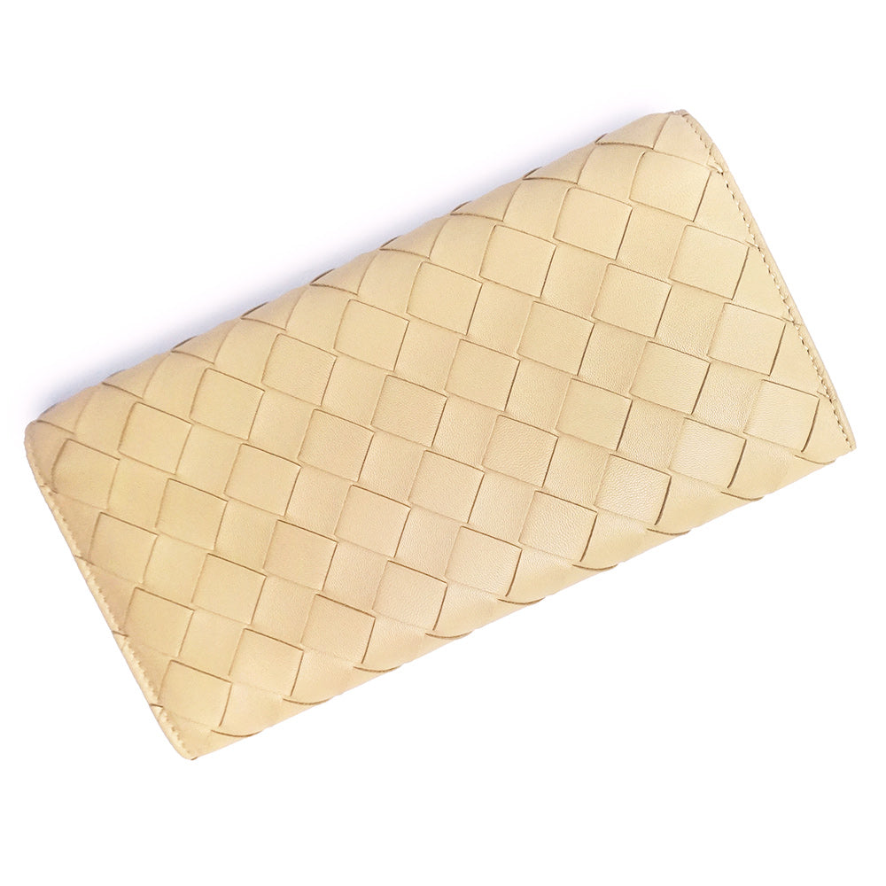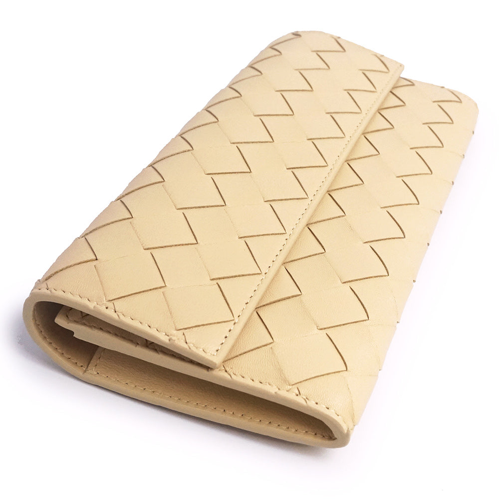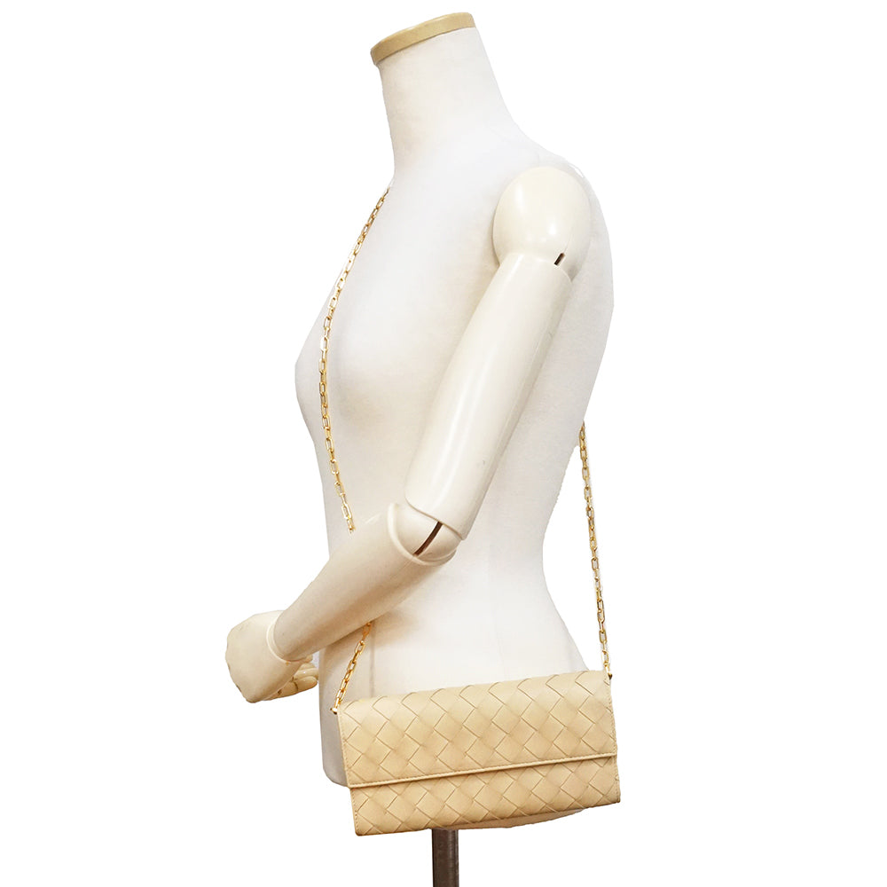 【新品・未使用品】ボッテガヴェネタ BOTTEGA VENETA イントレチャート 二つ折り長財布 チェーンウォレット 斜め掛け 財布 カーフスキン レザー ポリッジ ベージュ ゴールド金具 730568 箱付