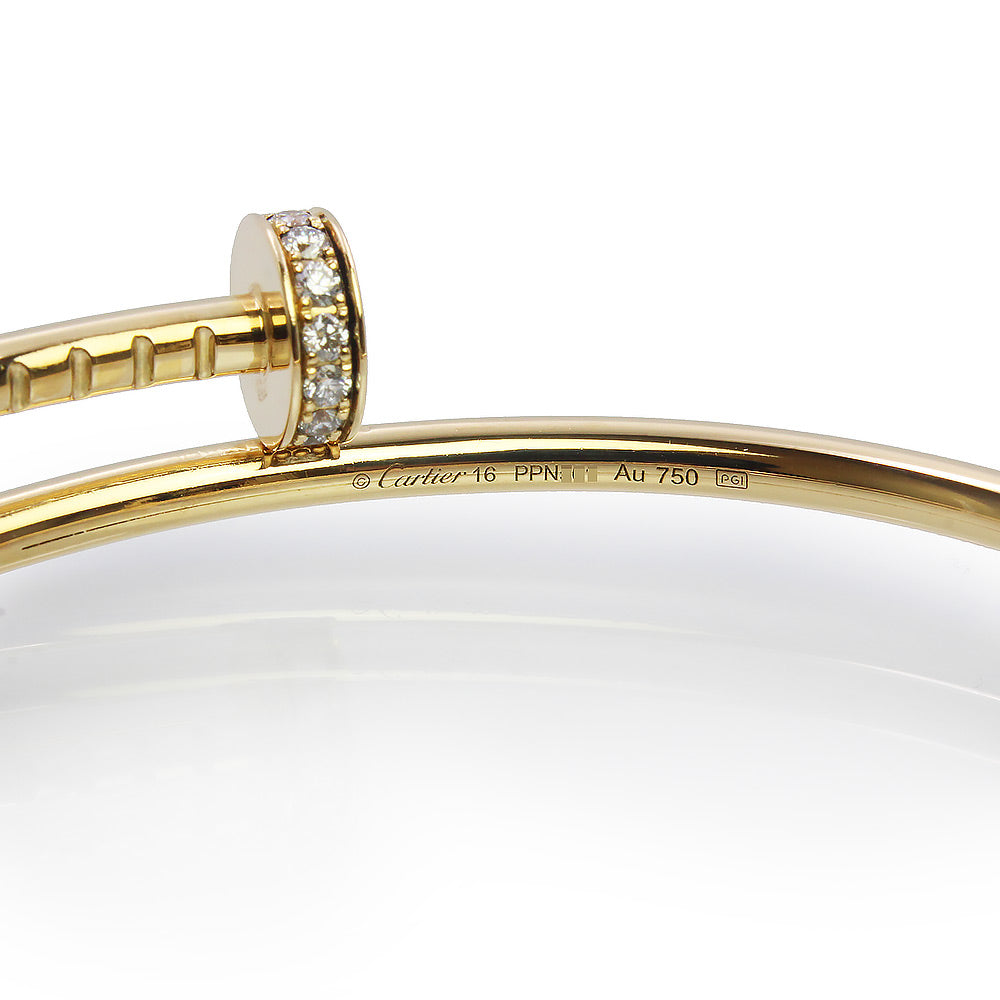 【美品】カルティエ Cartier ジュスト アン クル SM スモールモデル ブレスレット バングル 16CM K18YG 750 20Pダイヤモンド 0.18ct イエローゴールド B6066116 箱付