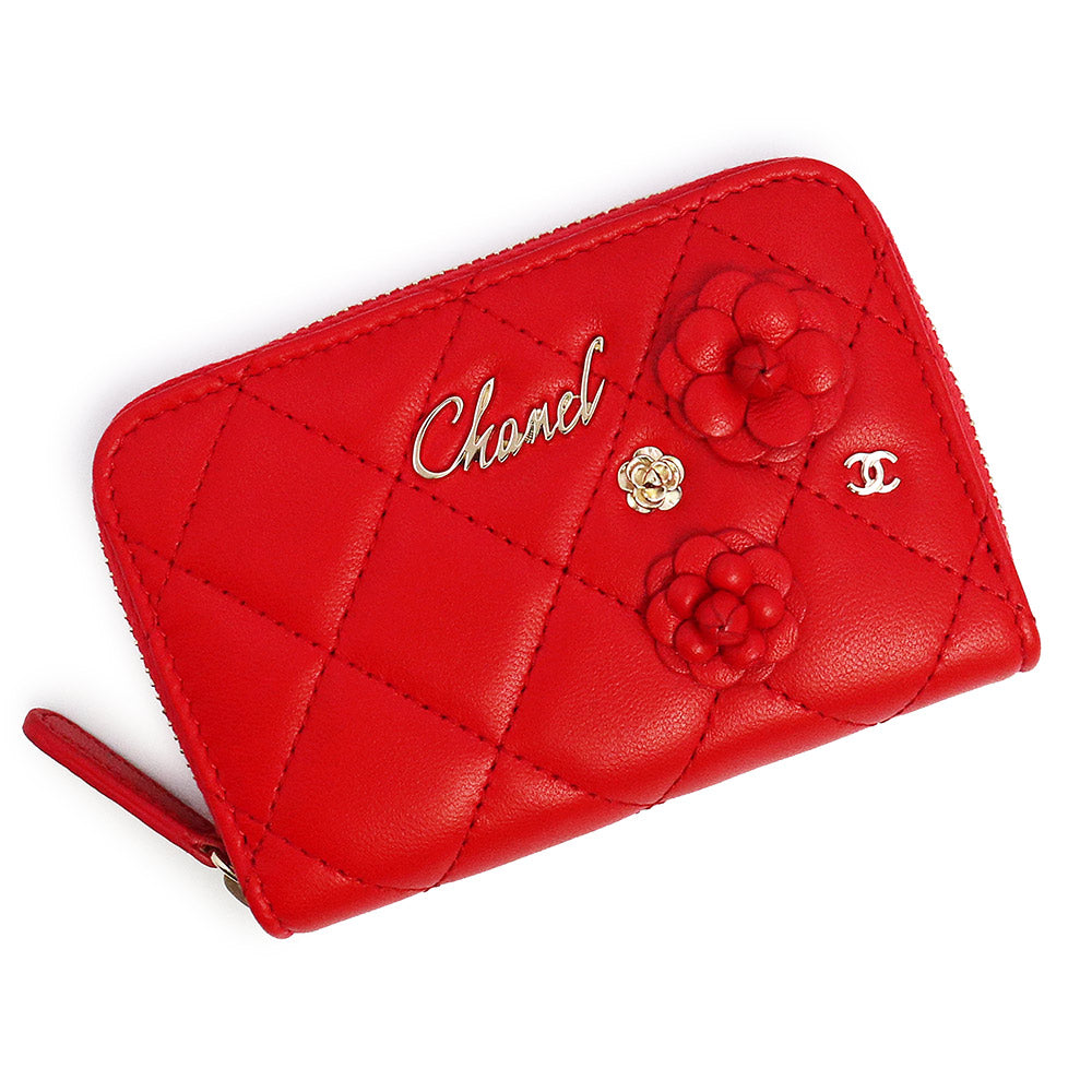 【新品・未使用品】シャネル CHANEL カメリア ロゴ ココマーク ジップ カード コイン パスケース 名刺入れ 定期入れ 小銭入れ 財布 ラムスキン レザー レッド シャンパンゴールド金具 AP0053 箱付